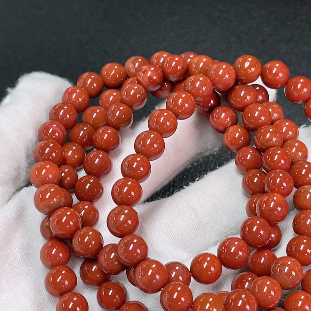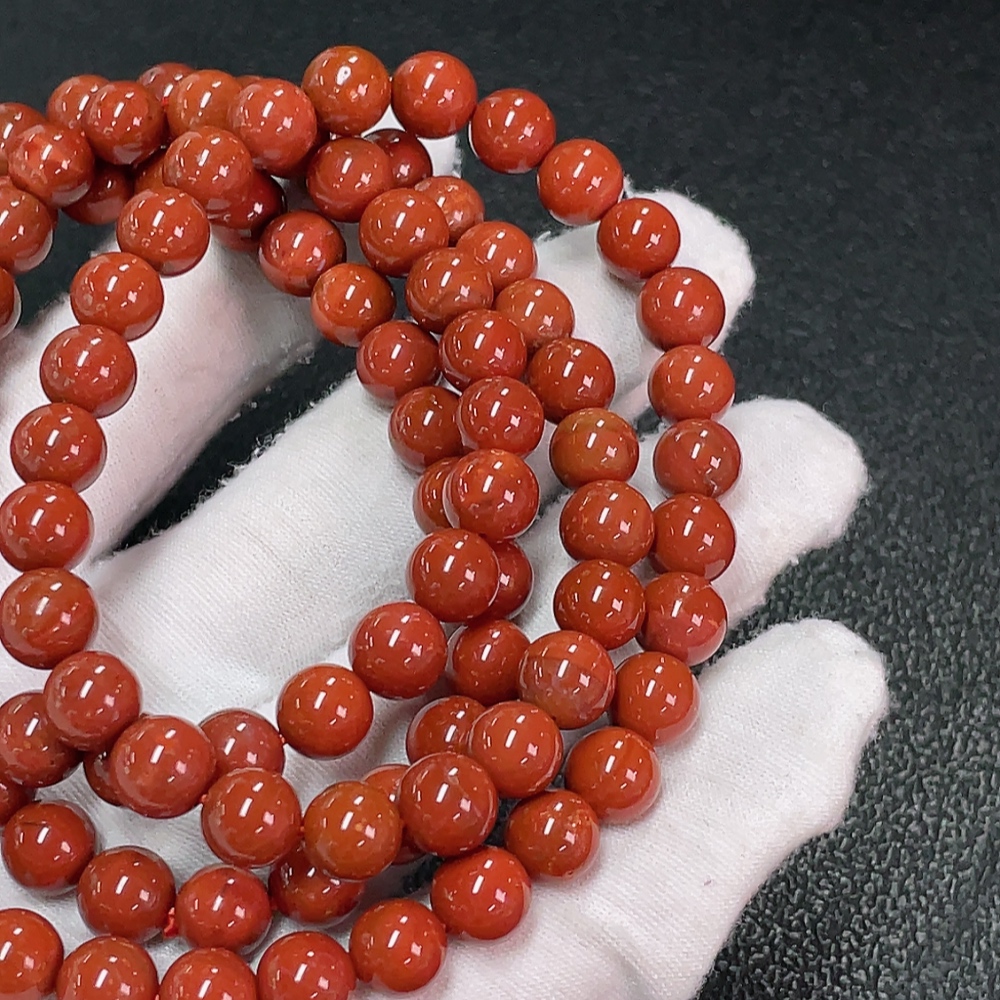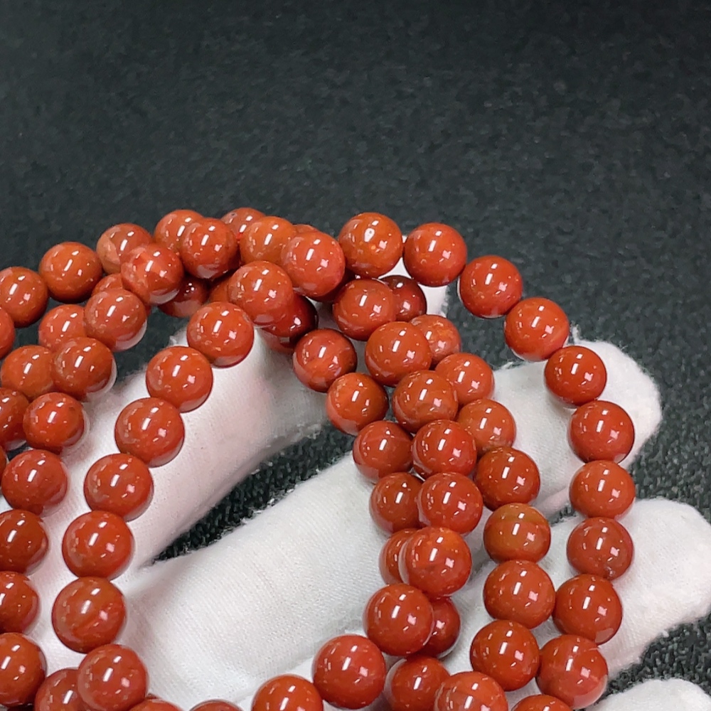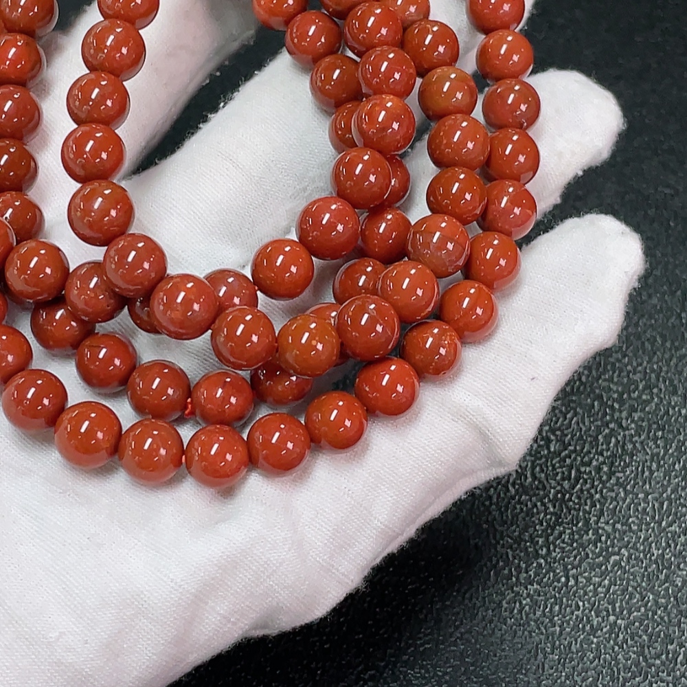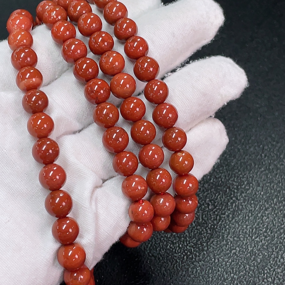 South Red Agate Bead Strand with Visible Organic Matter, Total Weight Approx. 79.06g, Size About 8.2mm