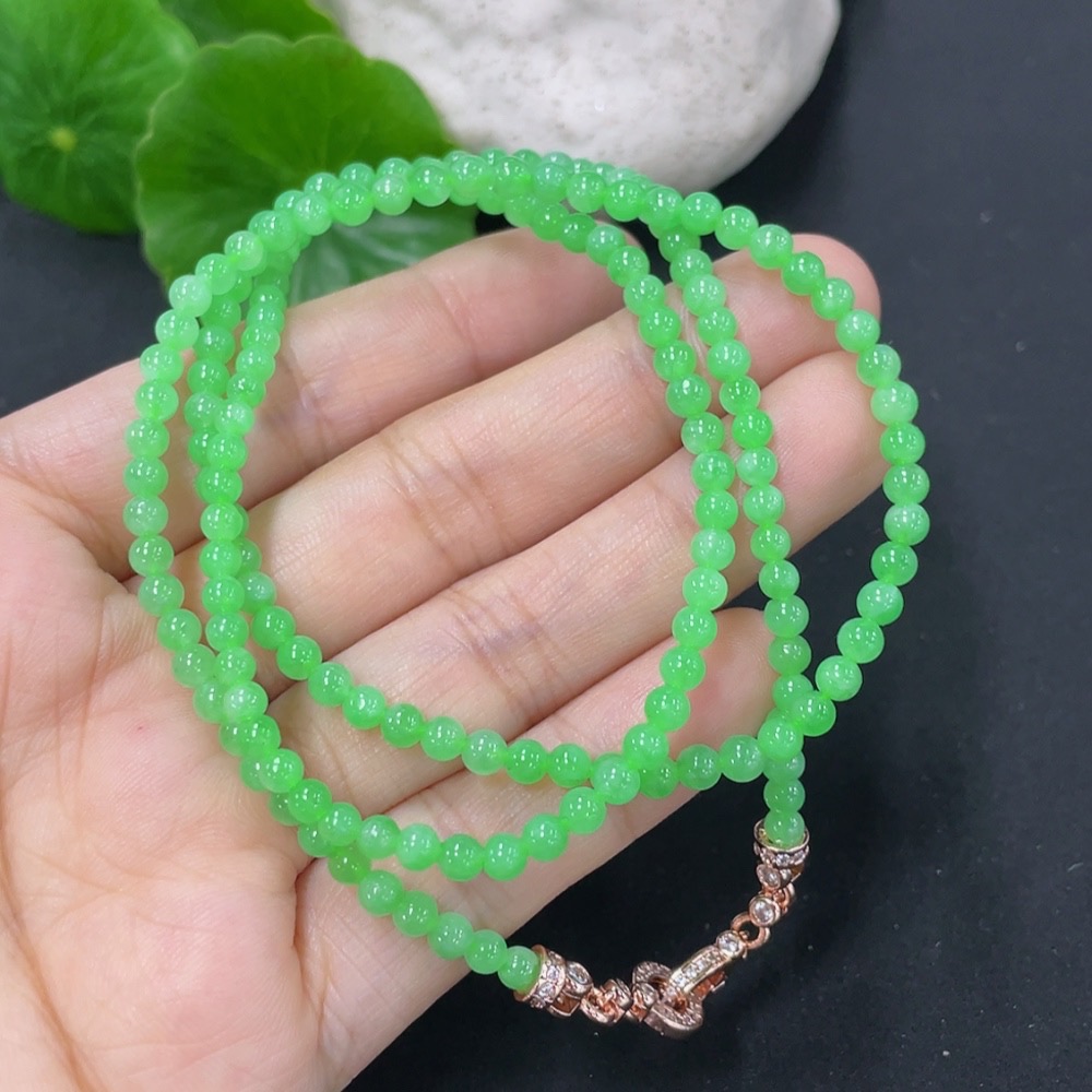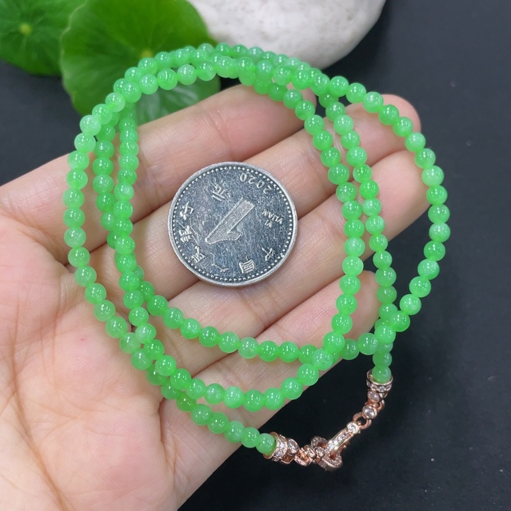 Trezaar - Jadeite Bead Necklace Approx. 3.5mm Non-Gold Total Weight Approx. 13.1g