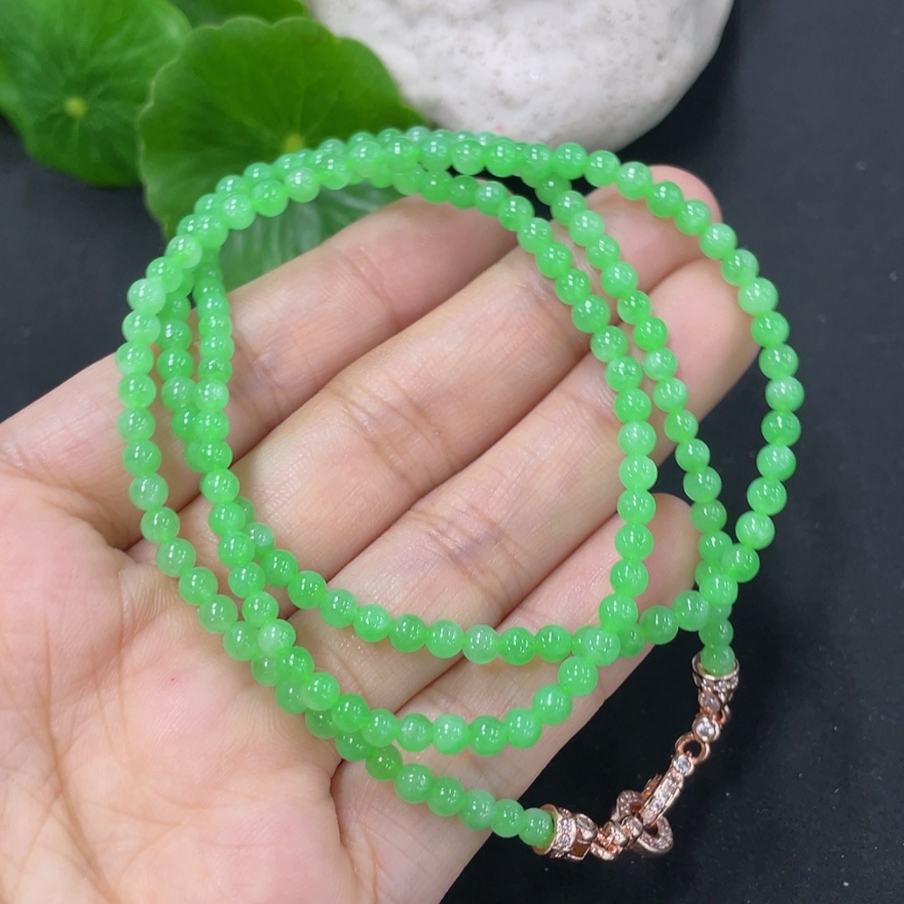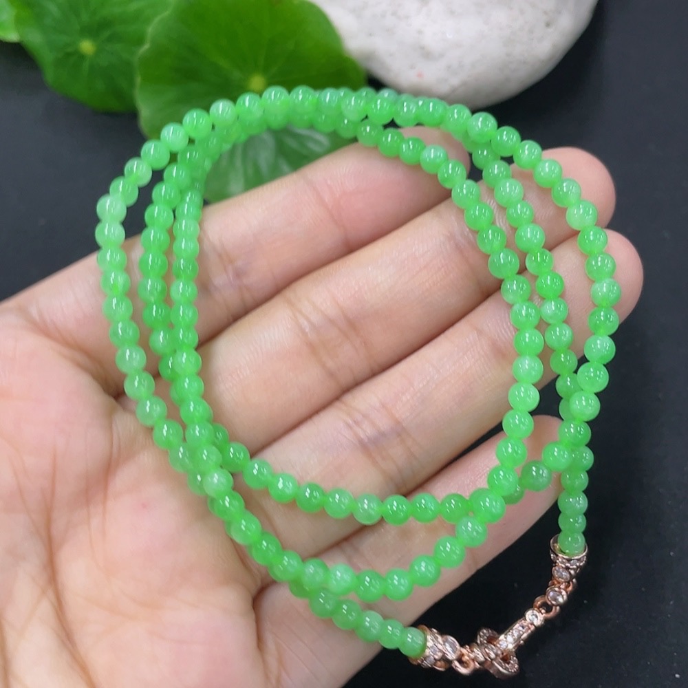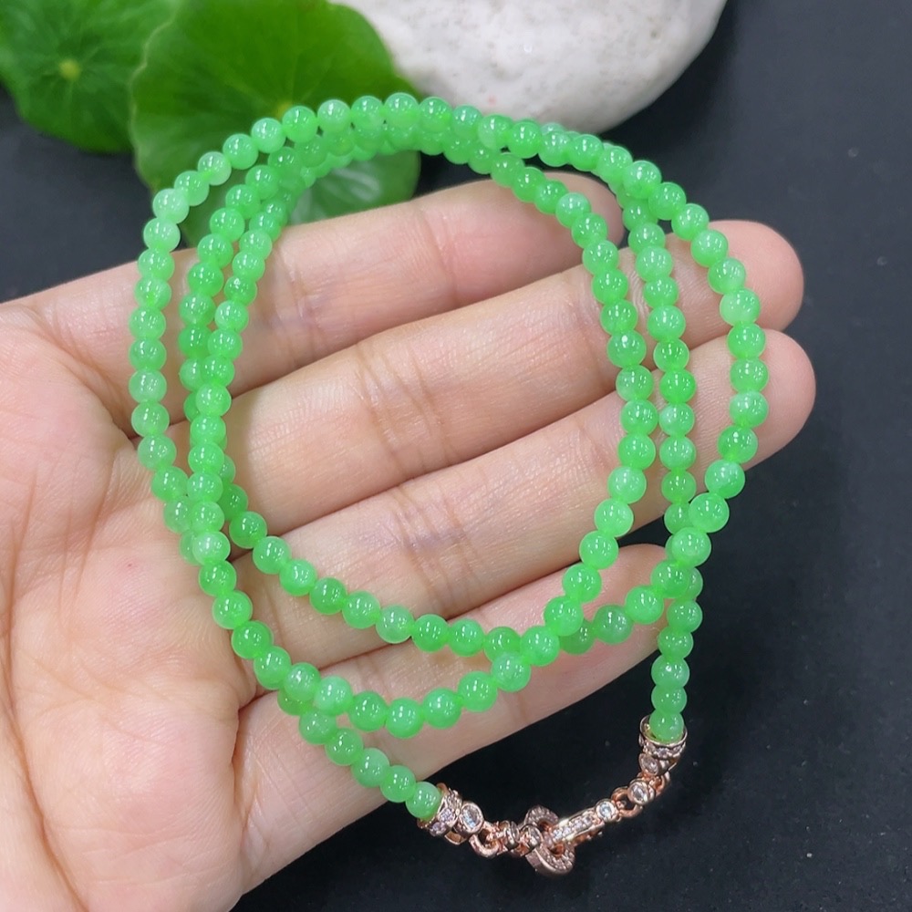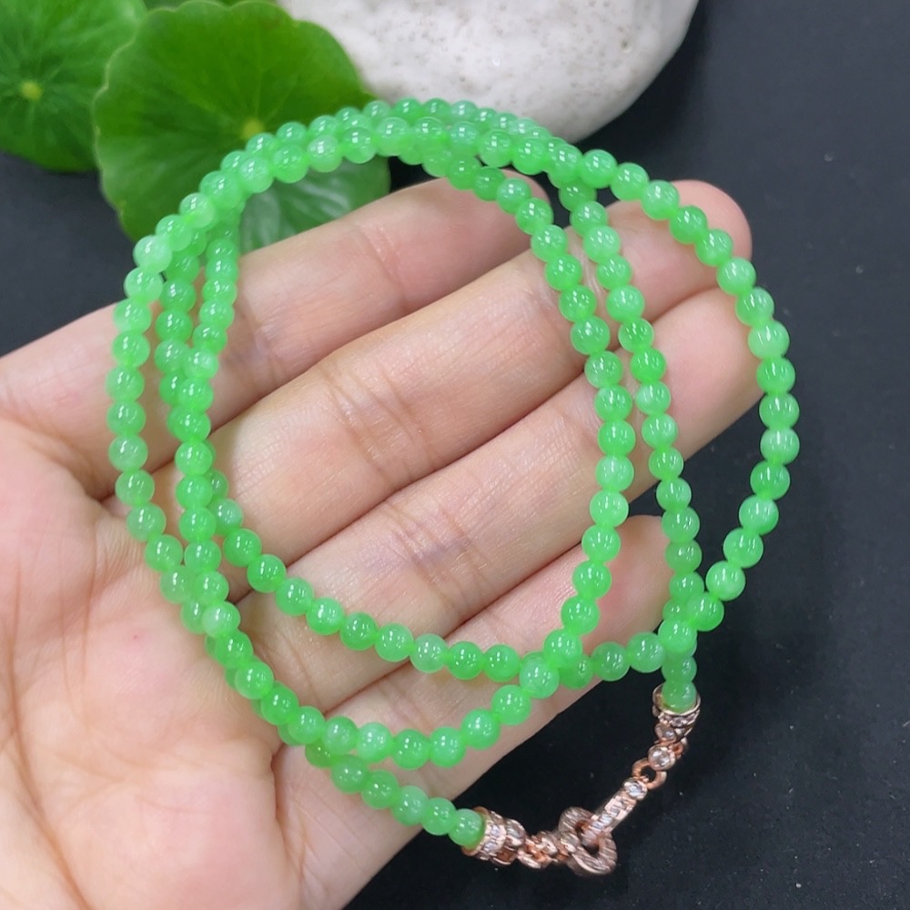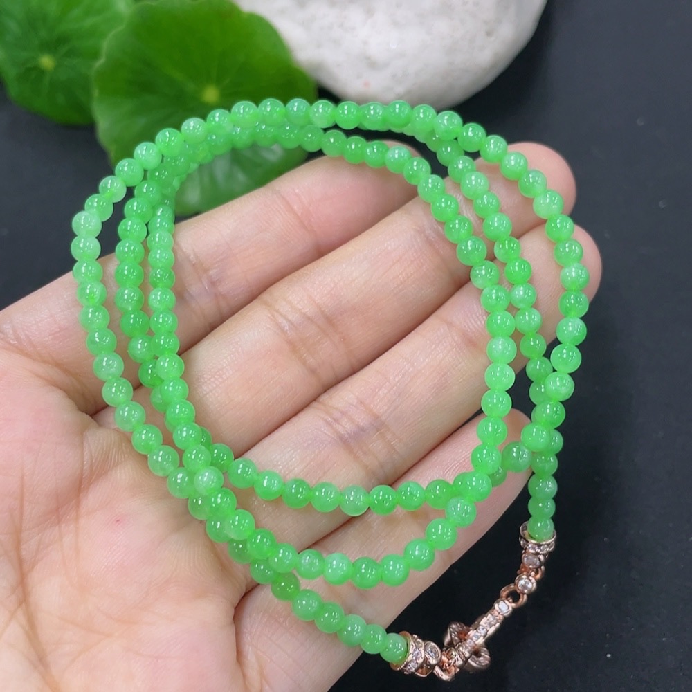 Jadeite Bead Necklace Approx. 3.5mm Non-Gold Total Weight Approx. 13.1g