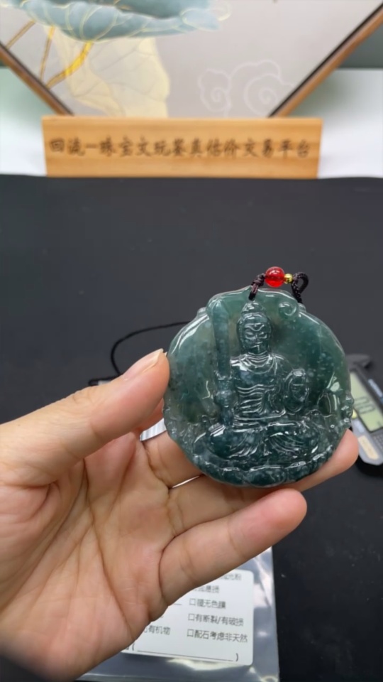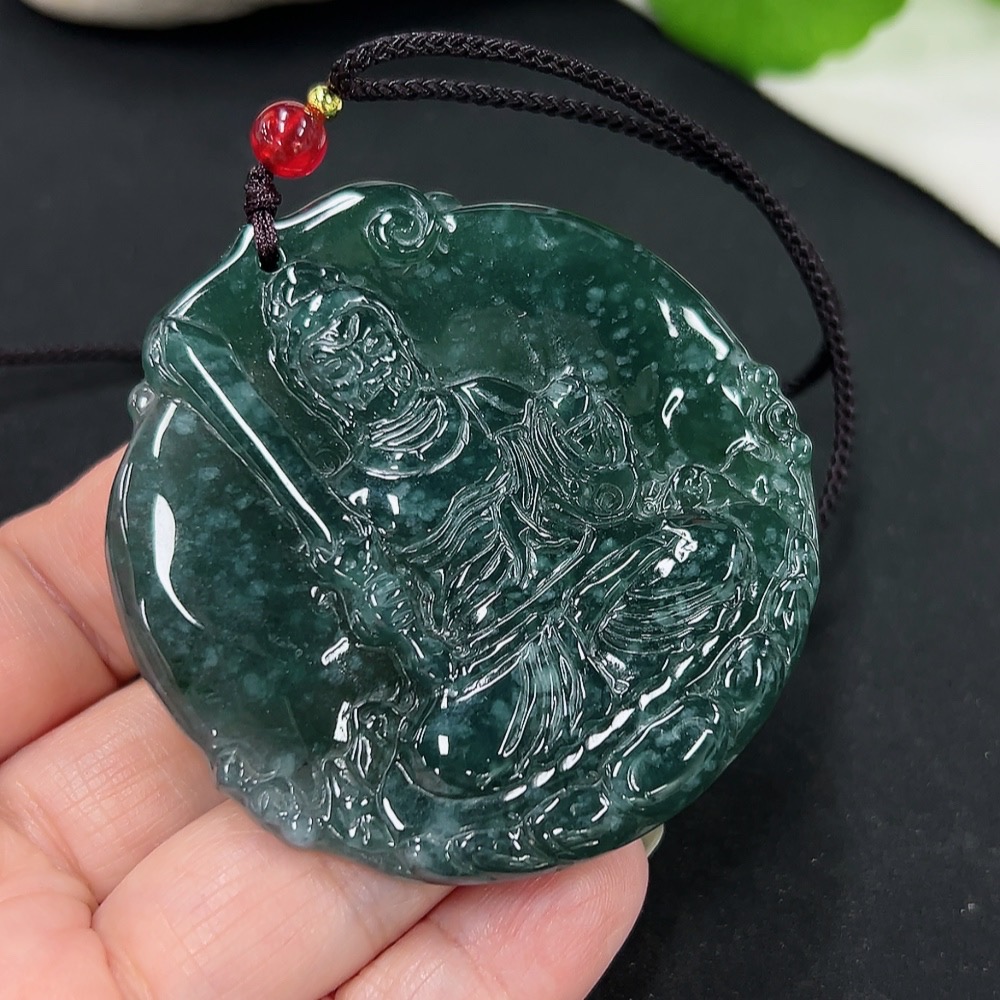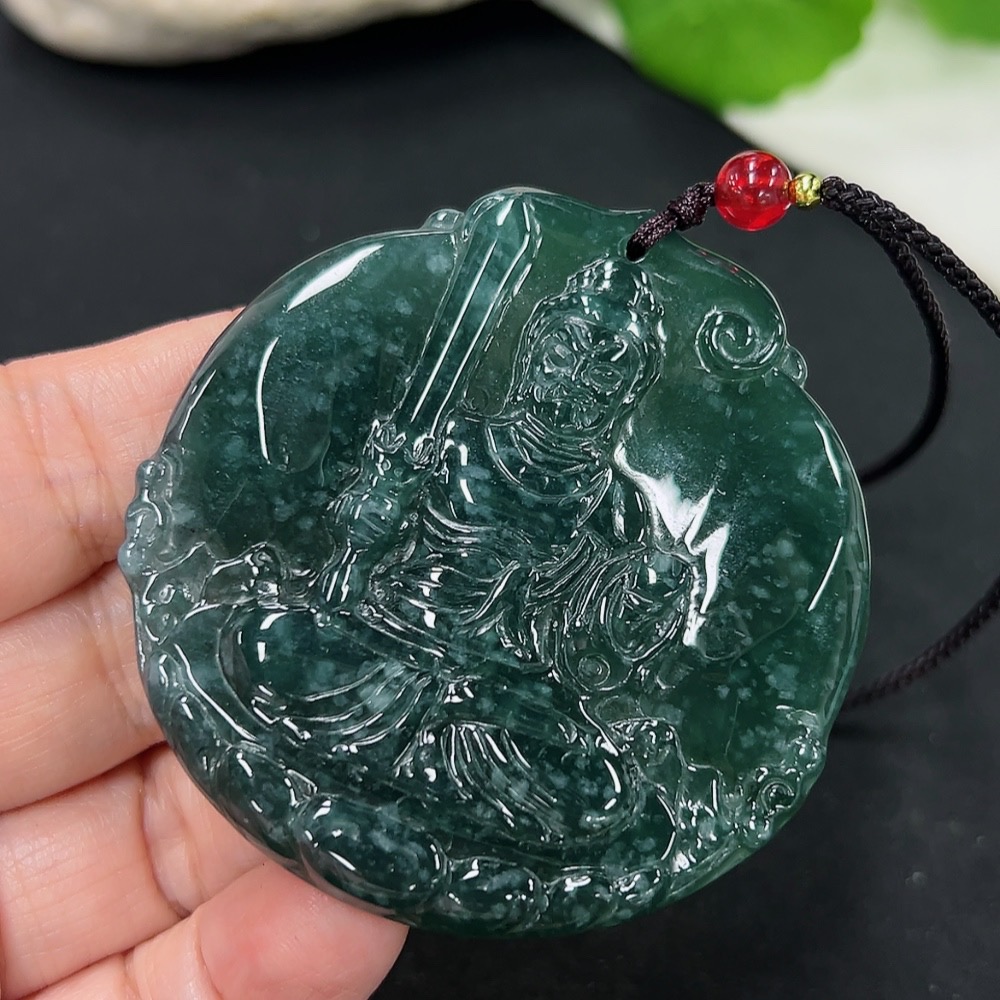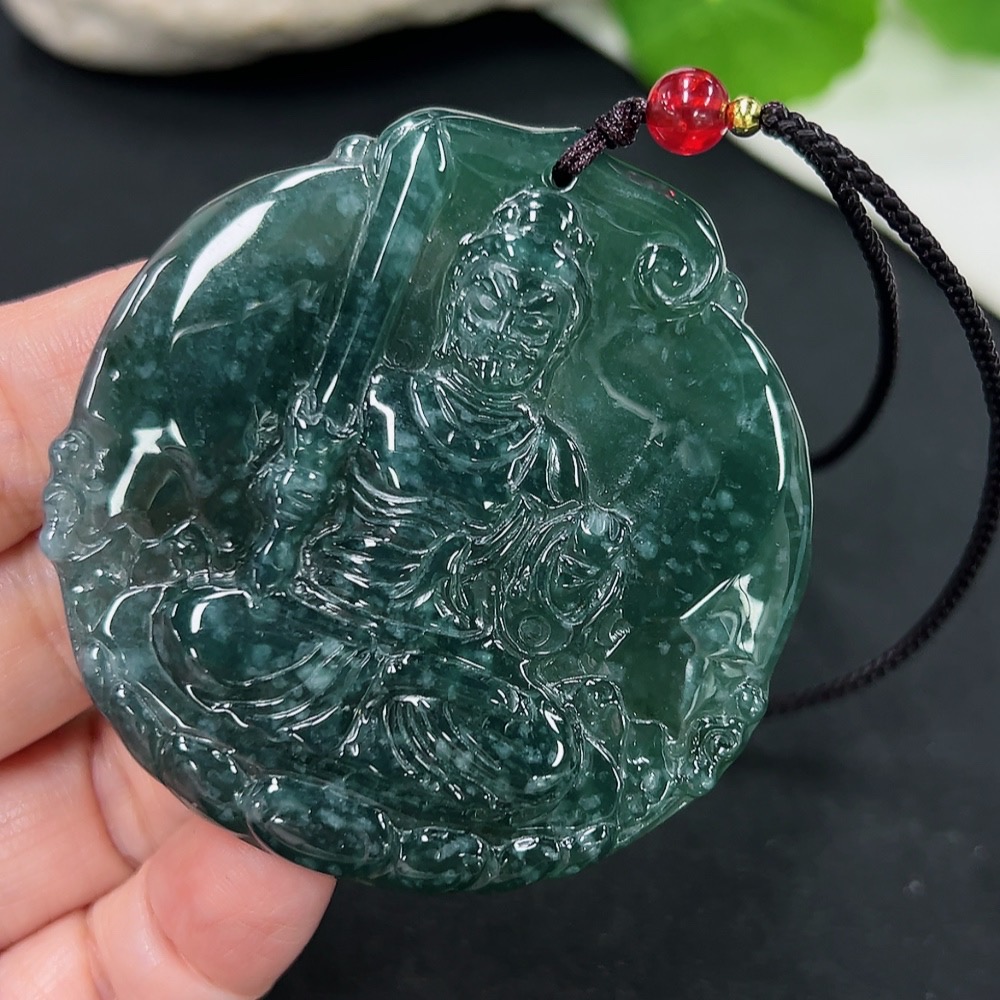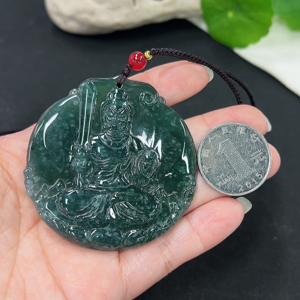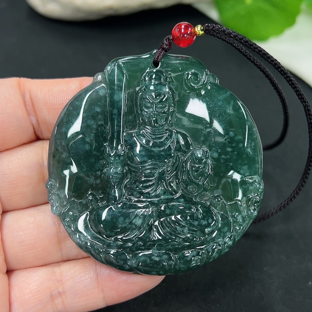 Jadeite Fudo Myoo Pendant with Non-A Grade Beads, Total Weight Approximately 37.1g
