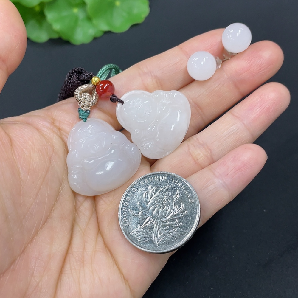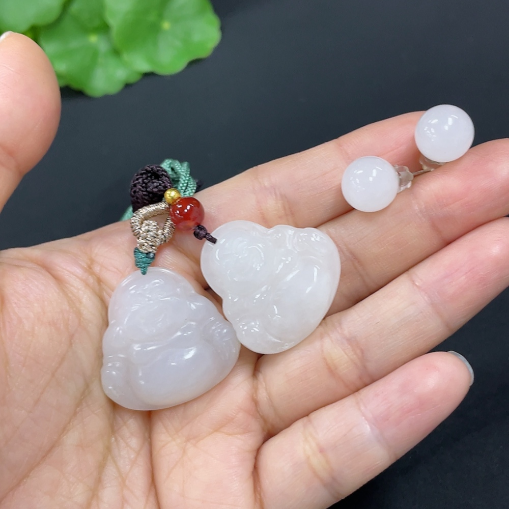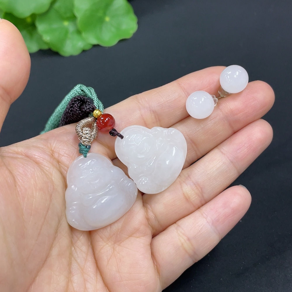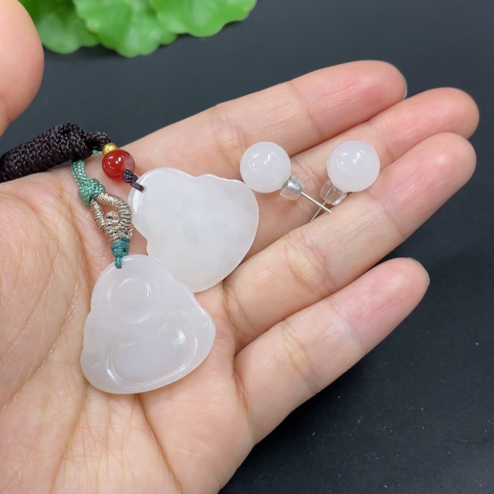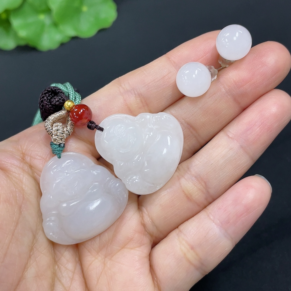 Hetian Jade Pendant Buddha Bead Earrings Non-Gold Inlaid
