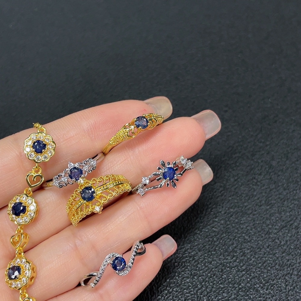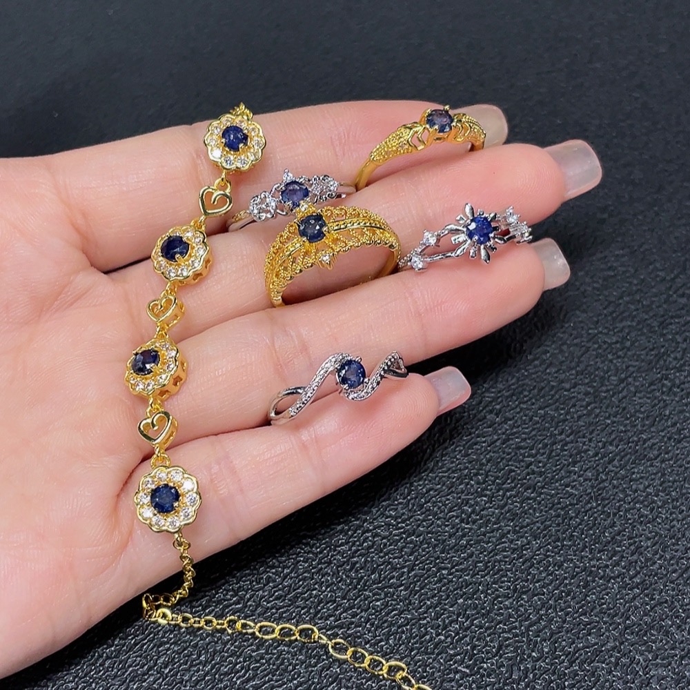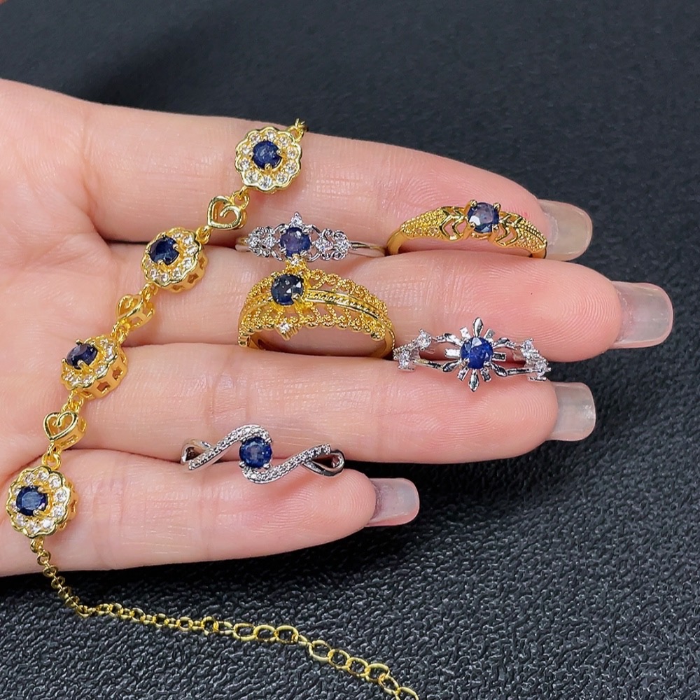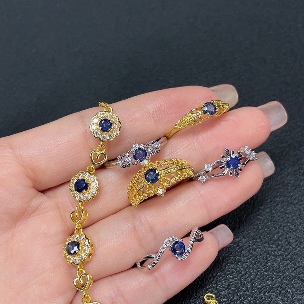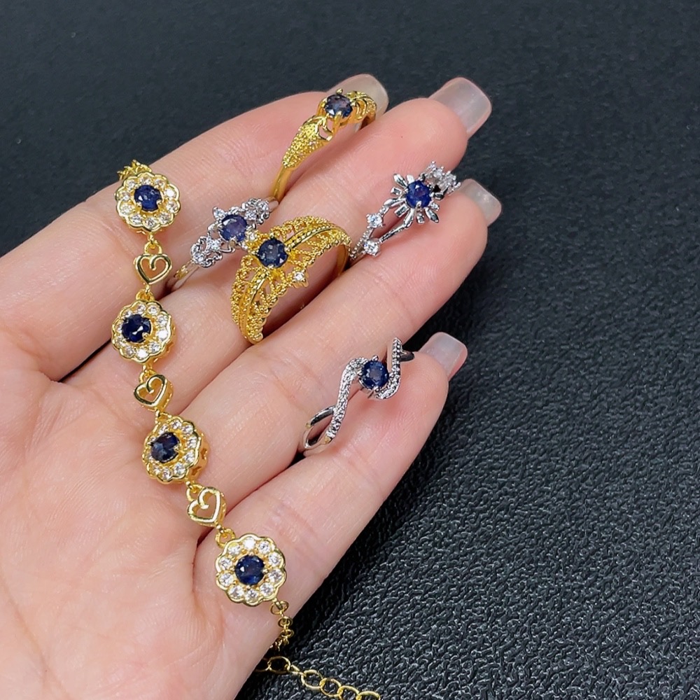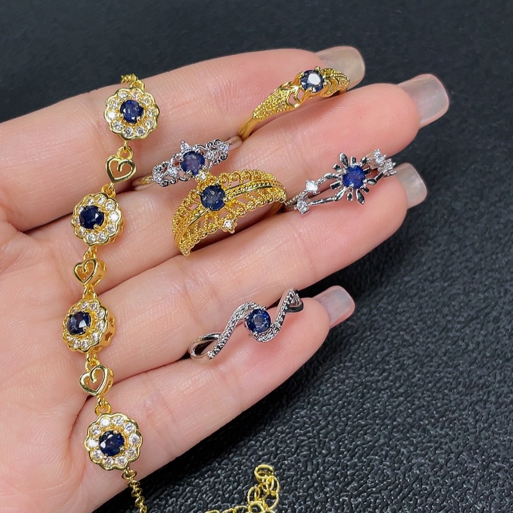 Sapphire Inlaid Ring + Bracelet Non-Gold Inlaid Total Weight Approx. 12.80g