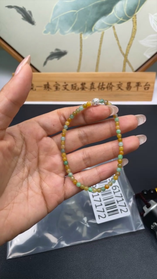 Jadeite Bracelet Card 3.5mm Non-Gold Total Weight Approx. 4.53g