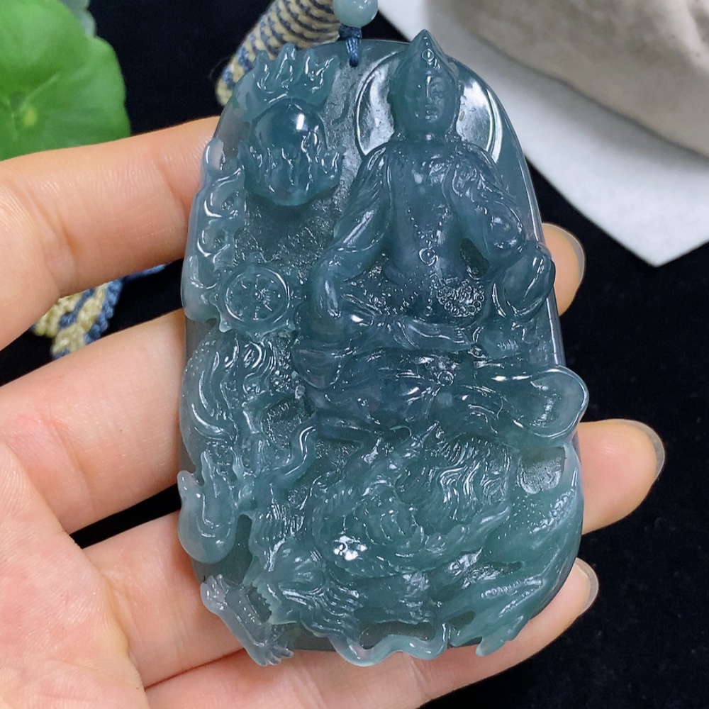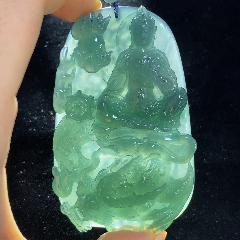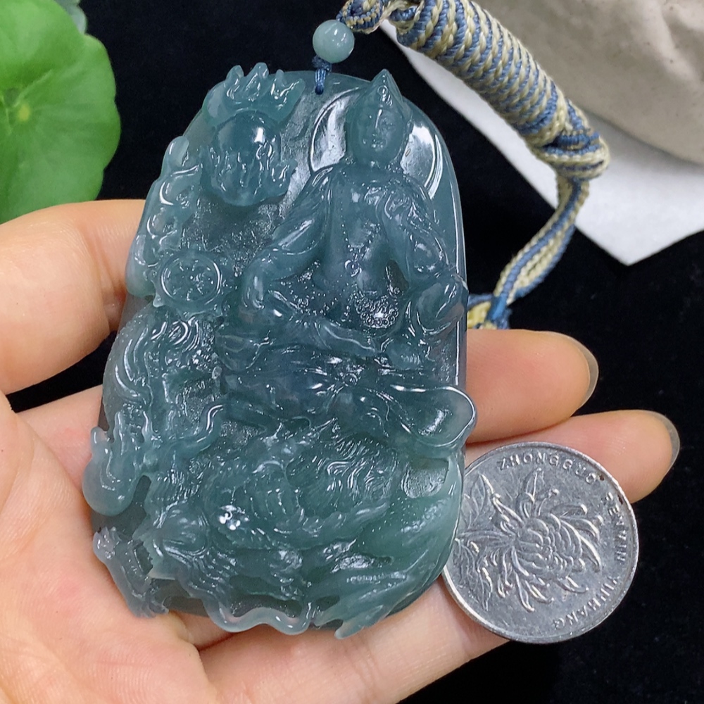 Jadeite Dragon-Guarding Guanyin Pendant, Total Weight with Rope Approx. 81.4g