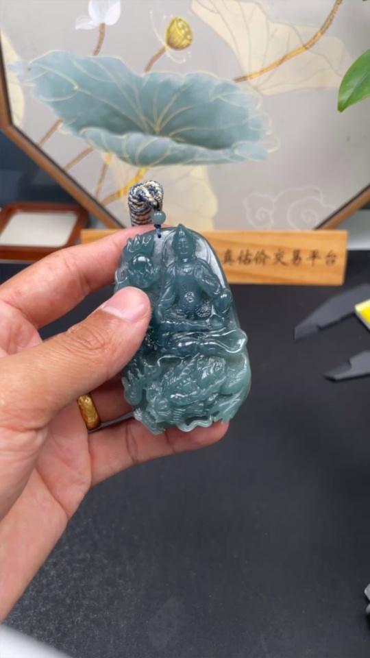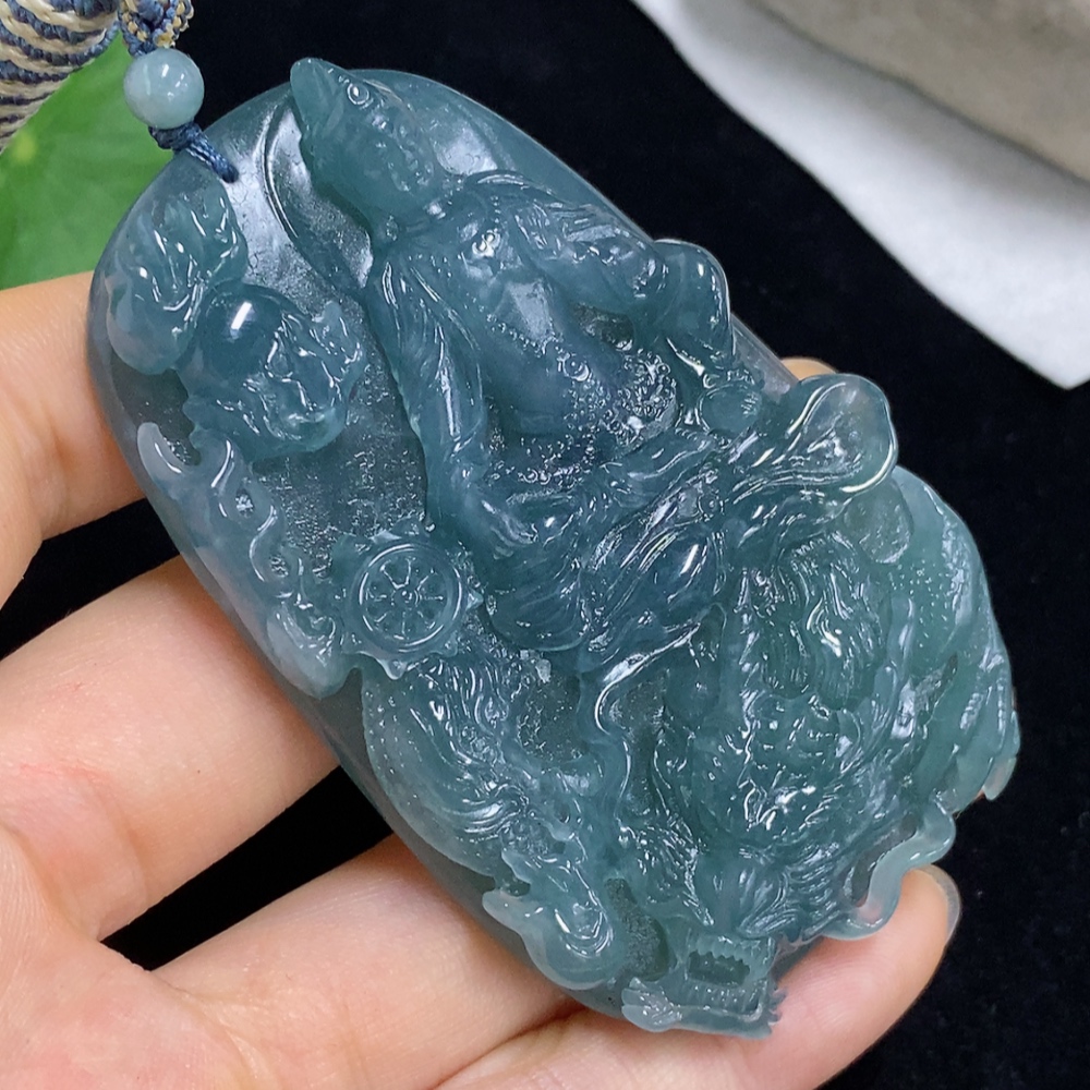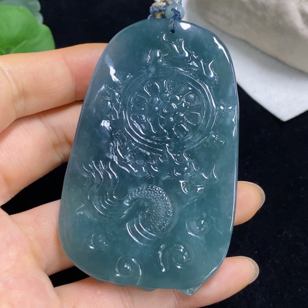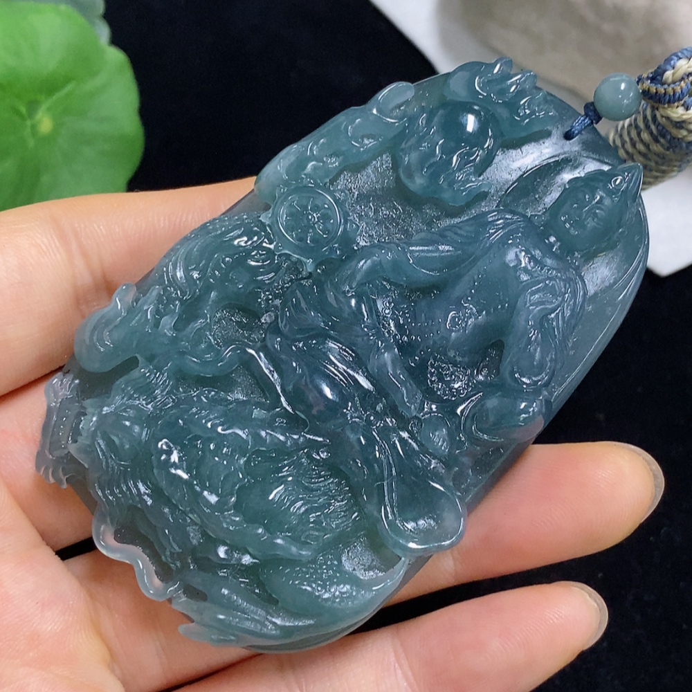 Jadeite Dragon-Guarding Guanyin Pendant, Total Weight with Rope Approx. 81.4g