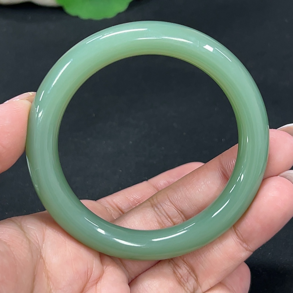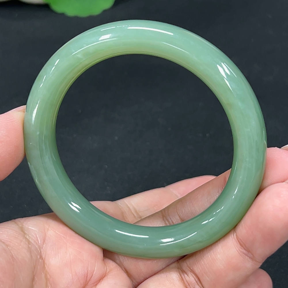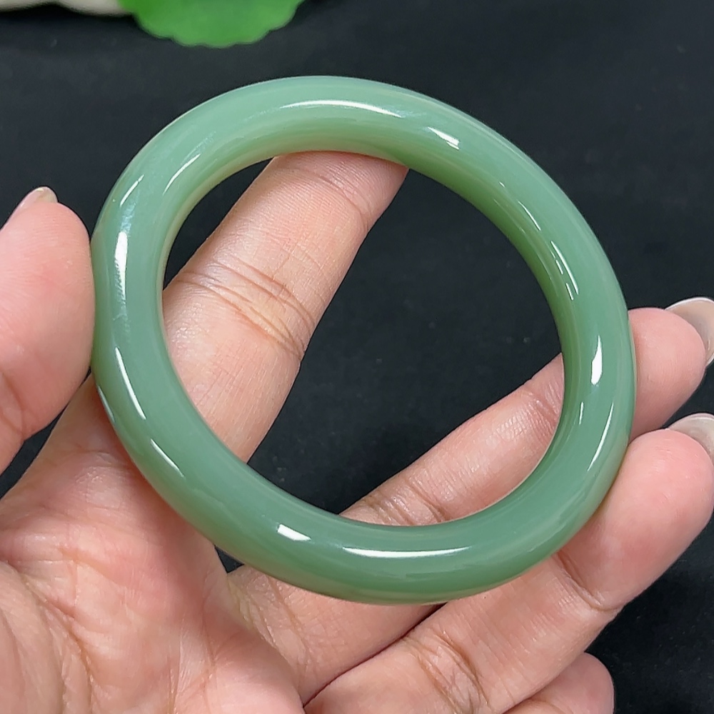 Hetian Jade Green Jade Round Bangle Size 53.7 Total Weight Approx. 44g