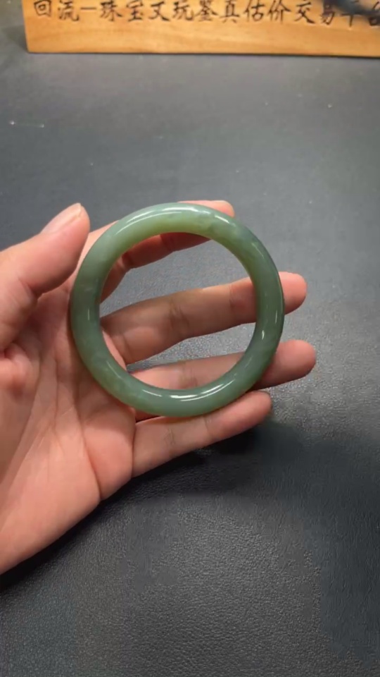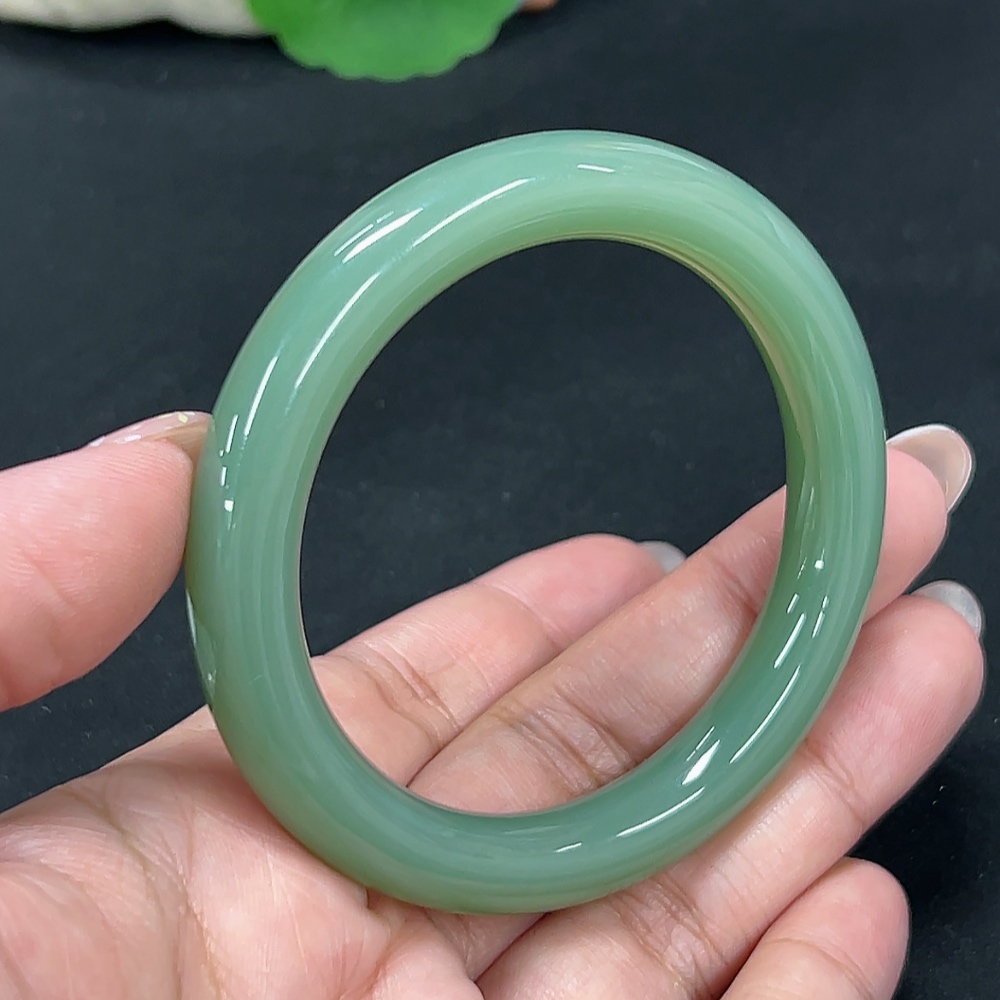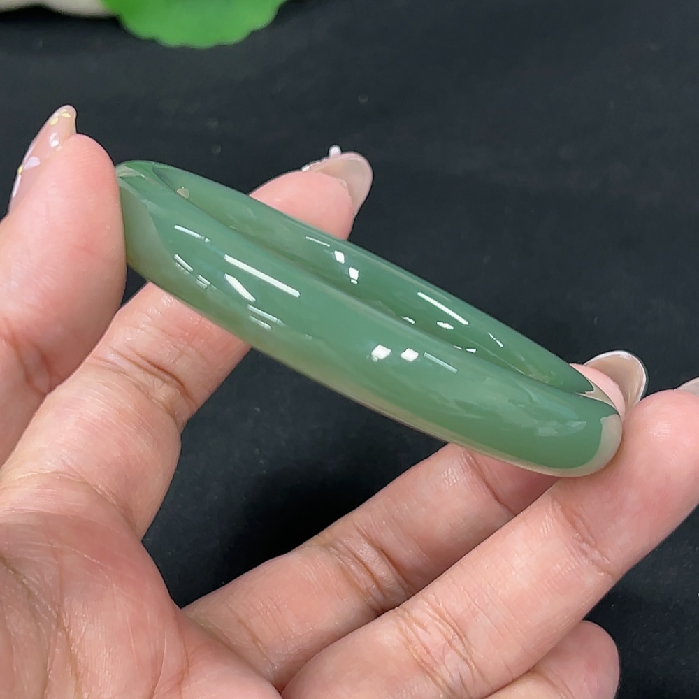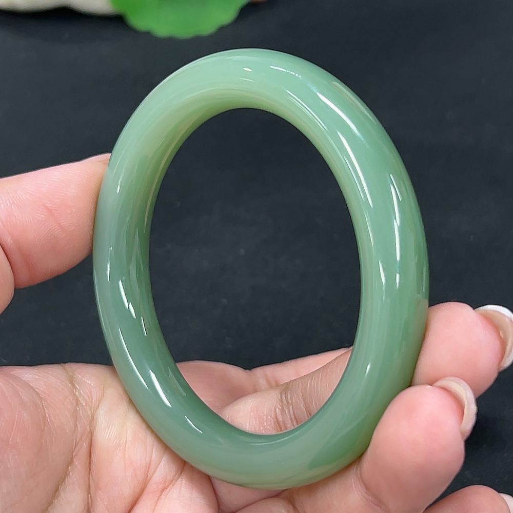Hetian Jade Green Jade Round Bangle Size 53.7 Total Weight Approx. 44g