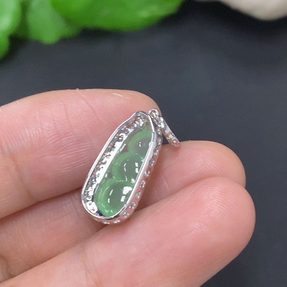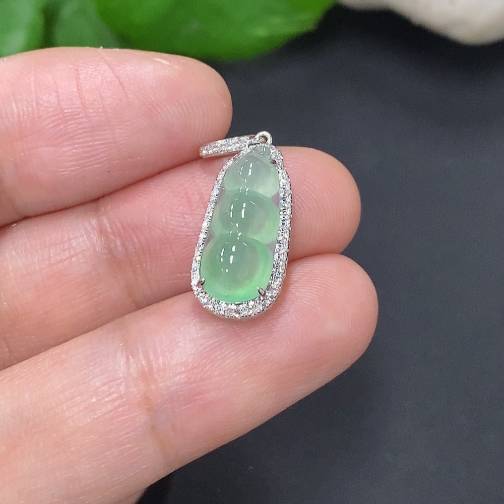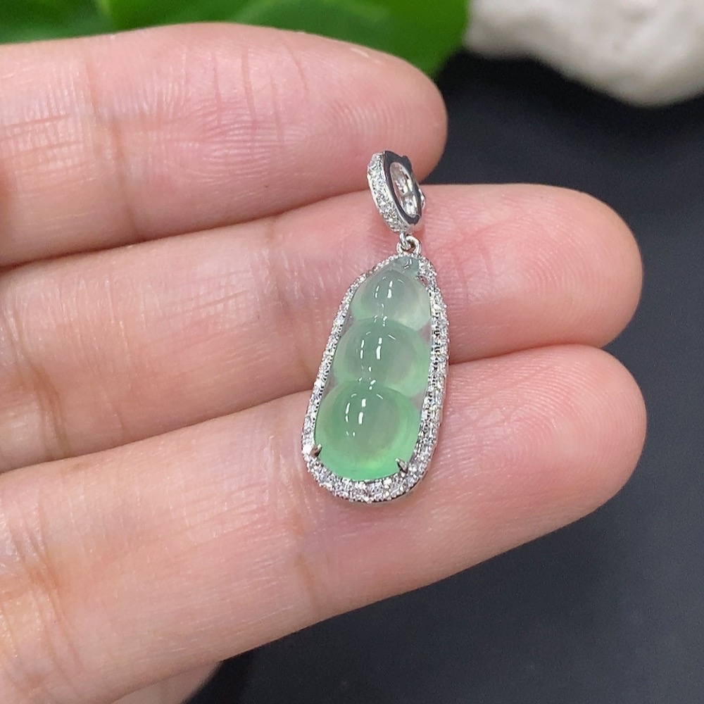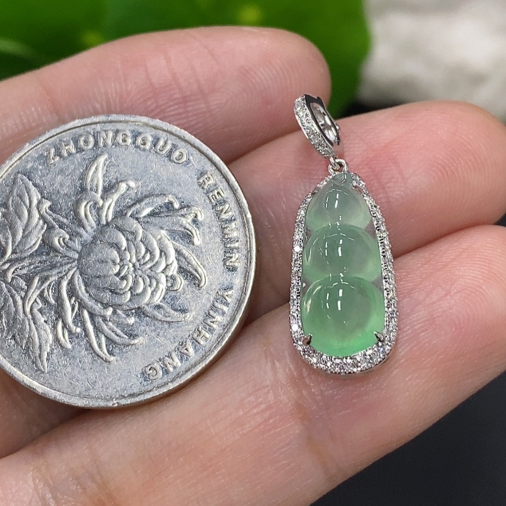 Jadeite Lucky Bean Pendant in 18K Gold, Total Weight Approx. 1.6g (With Diamond Accents)