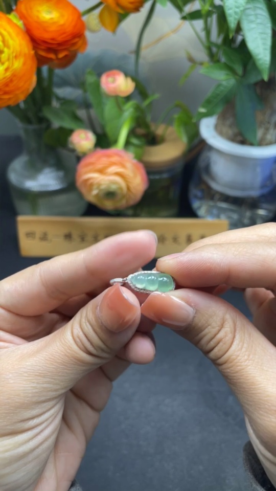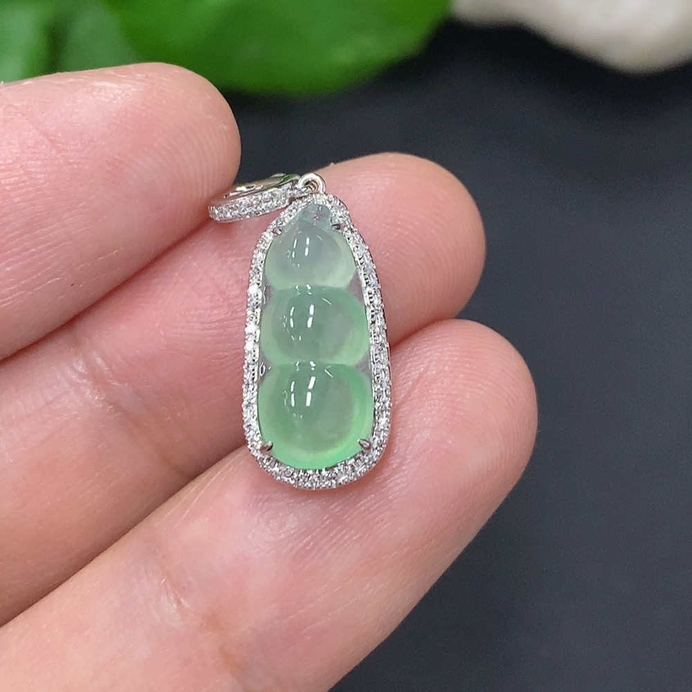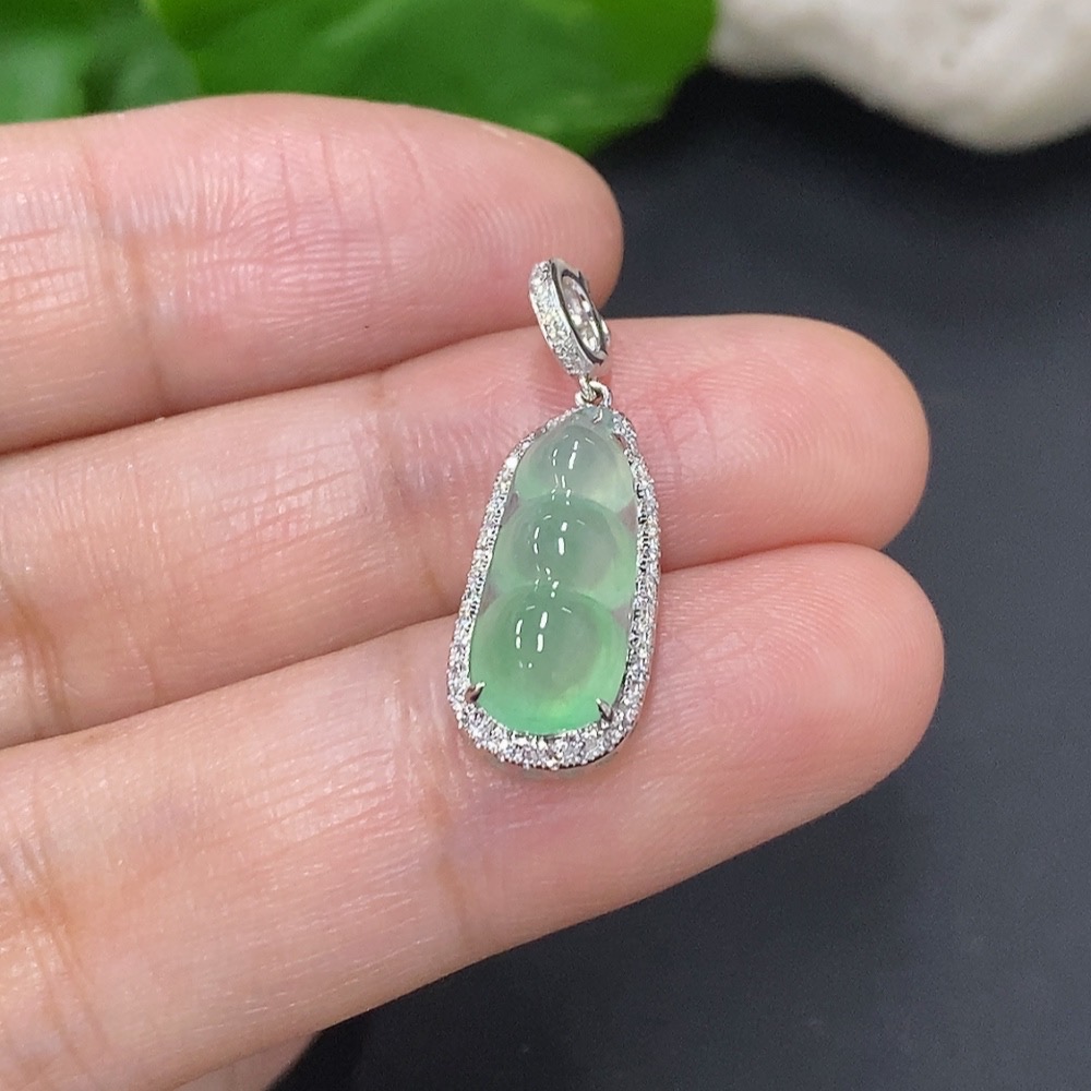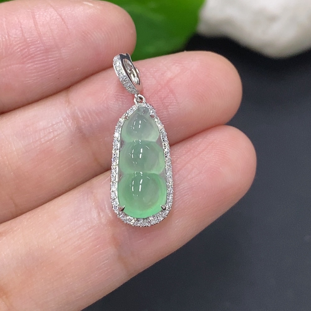 Jadeite Lucky Bean Pendant in 18K Gold, Total Weight Approx. 1.6g (With Diamond Accents)