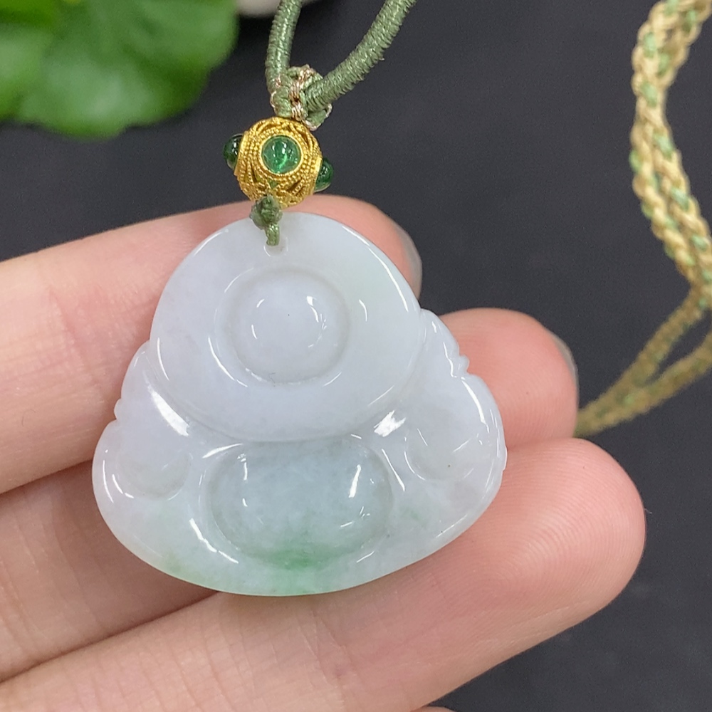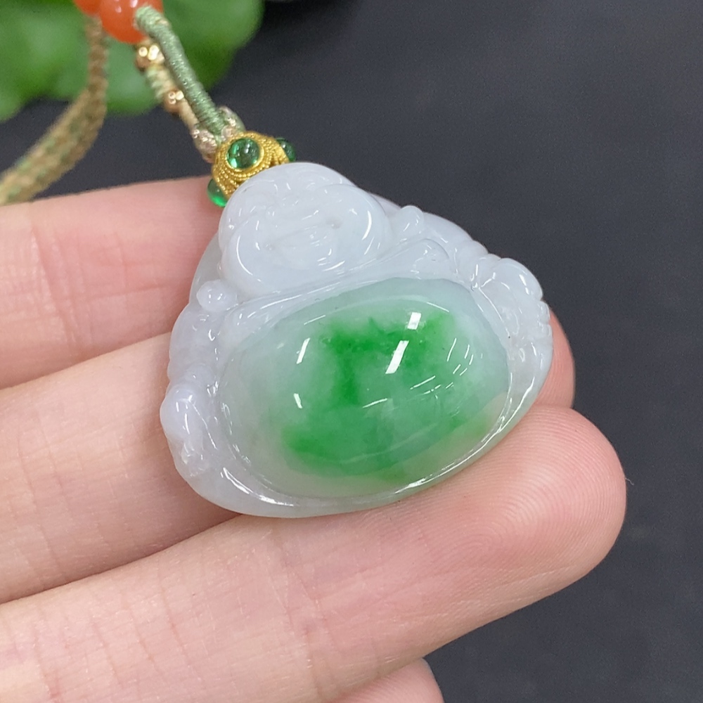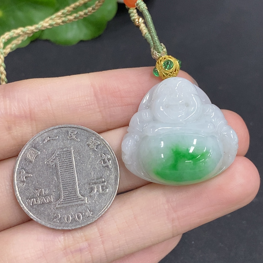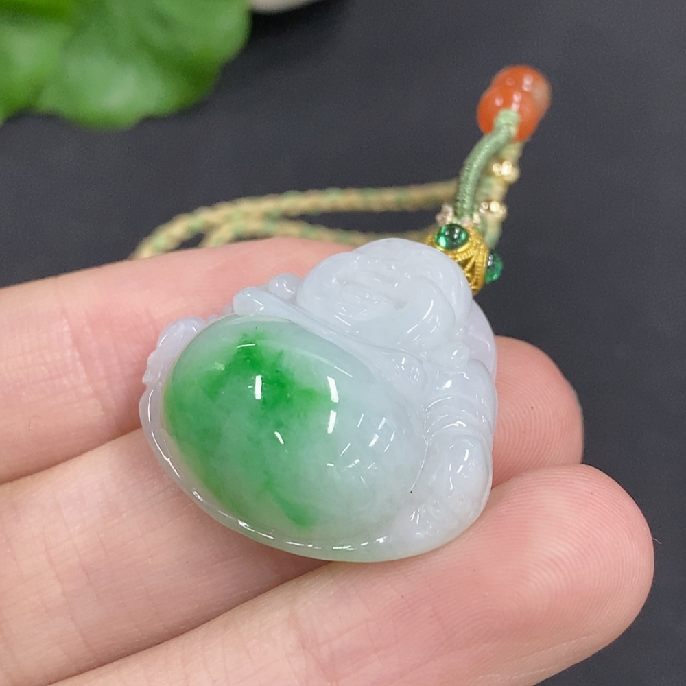 Jadeite Buddha Pendant Total Weight Including Rope Approx. 14.1g (Beads Not Grade A)