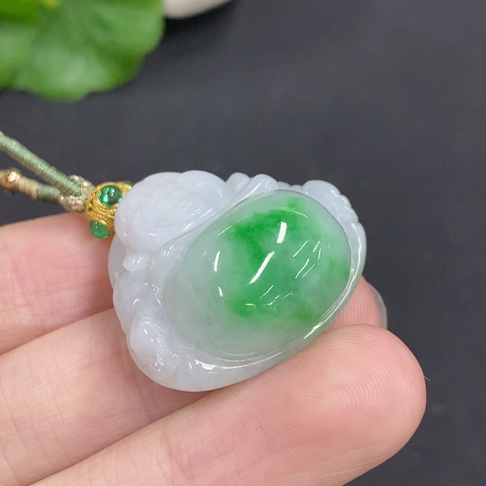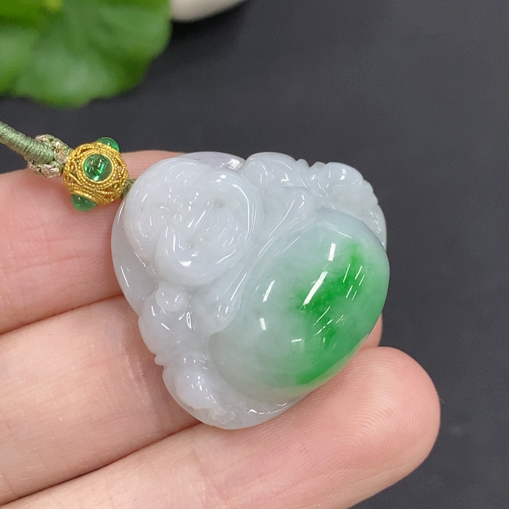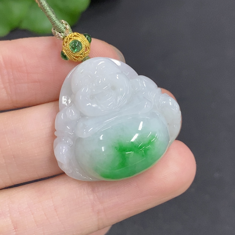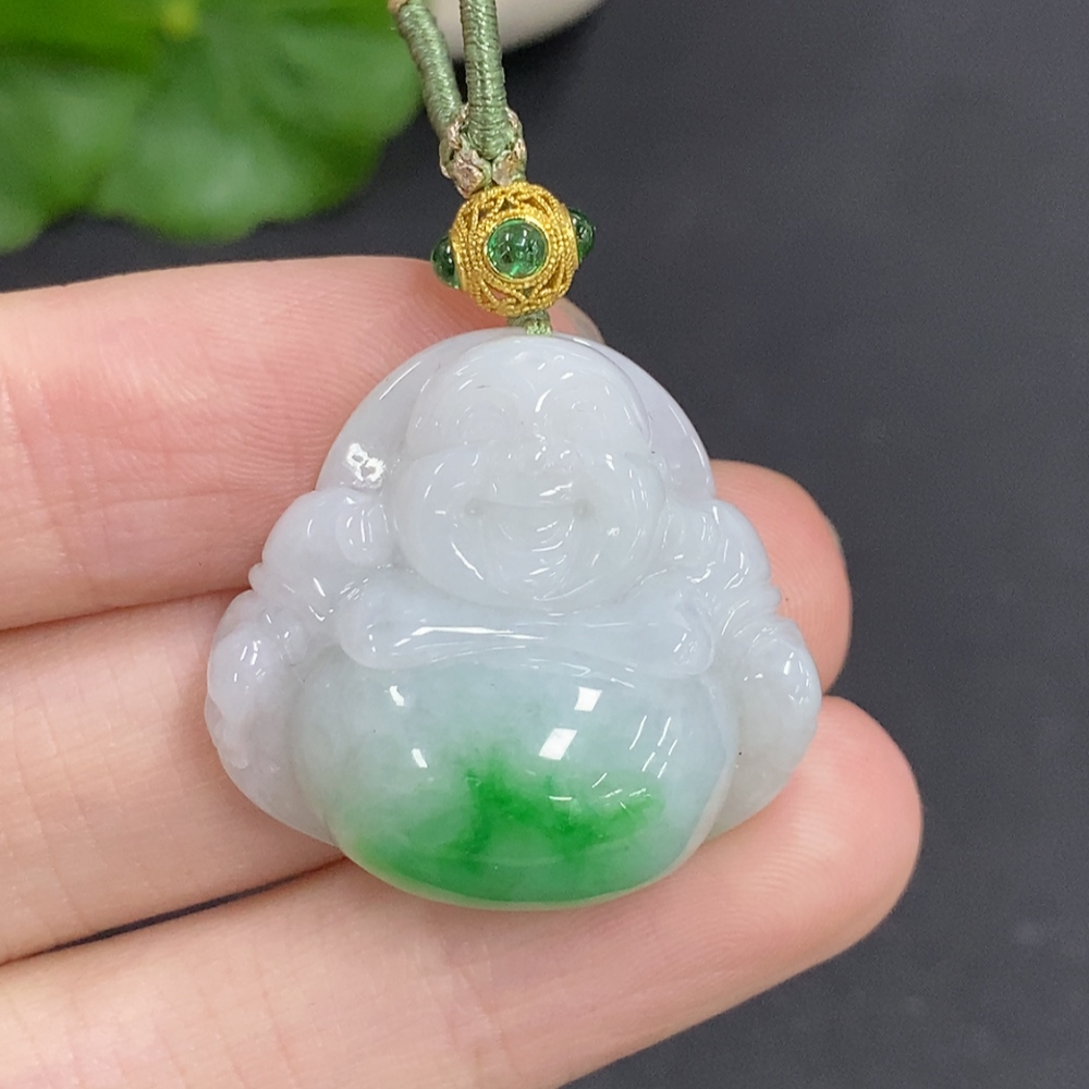Jadeite Buddha Pendant Total Weight Including Rope Approx. 14.1g (Beads Not Grade A)