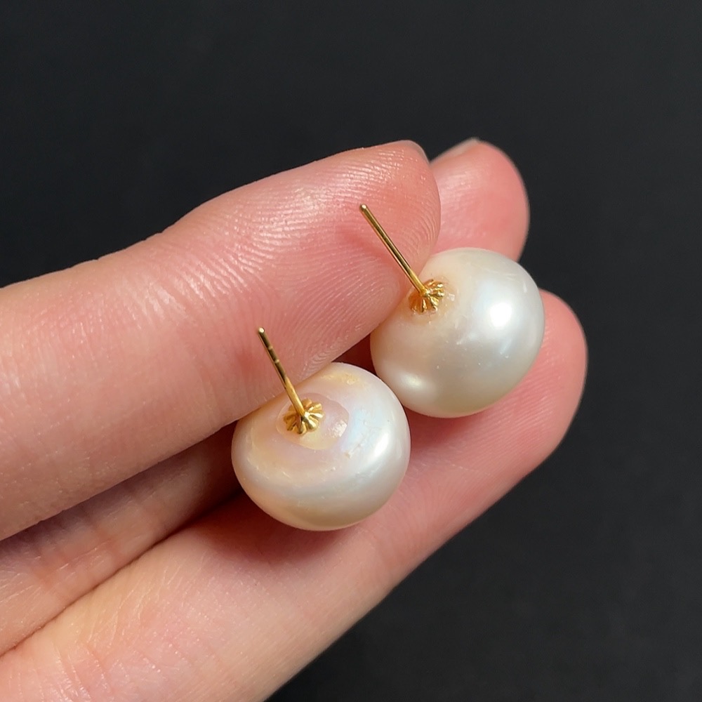 Pearl Stud Earrings 18K Gold Approx. 13.1mm Total Weight About 4.96g