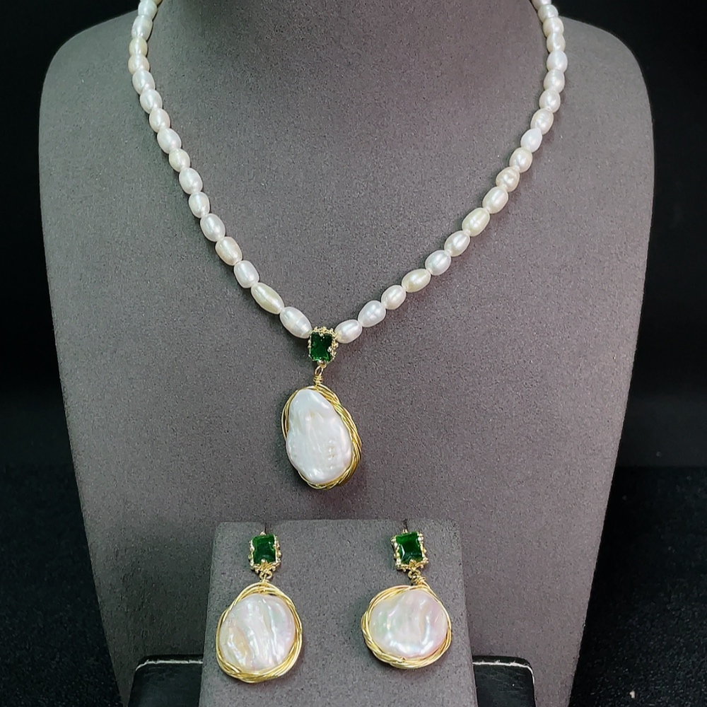 Pearl Necklace + Earrings Non-Gold Stones May Be Non-Natural Total Weight Approx. 29.33g Sell as a Lot