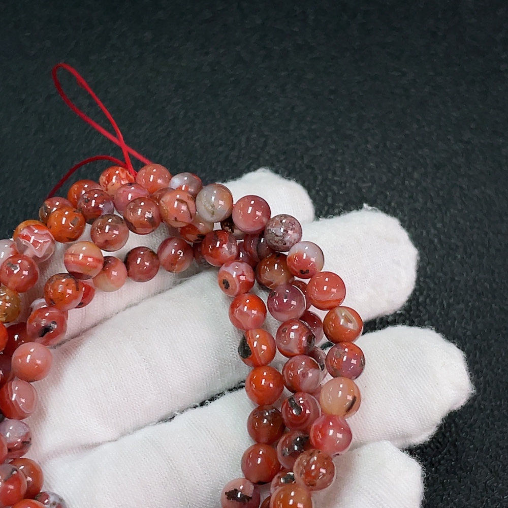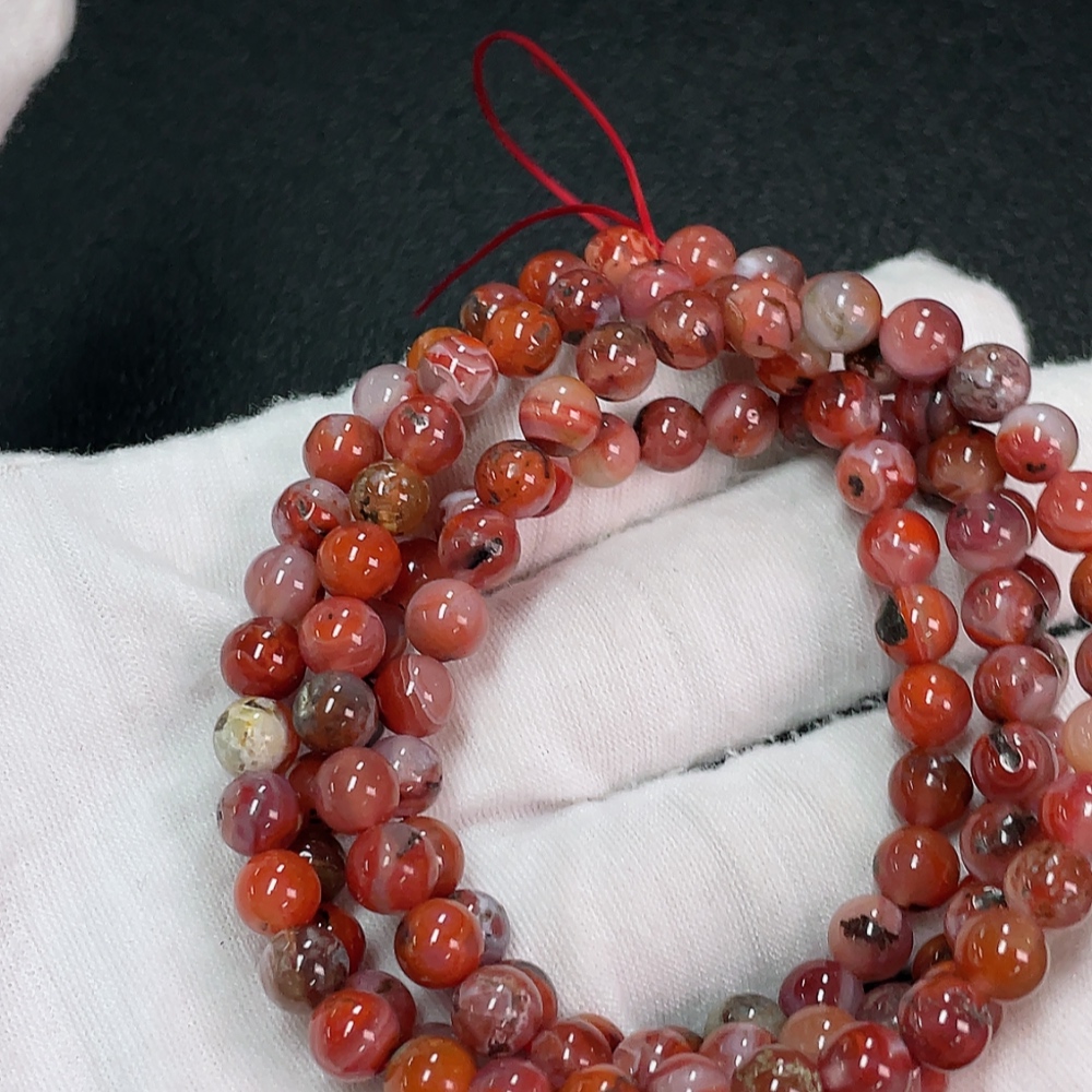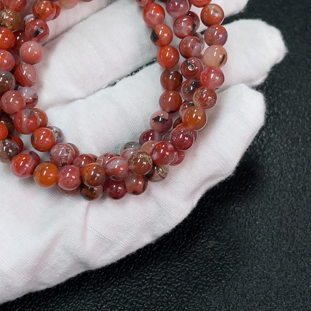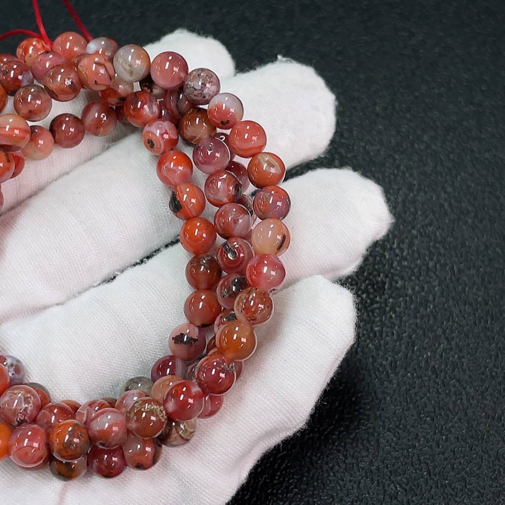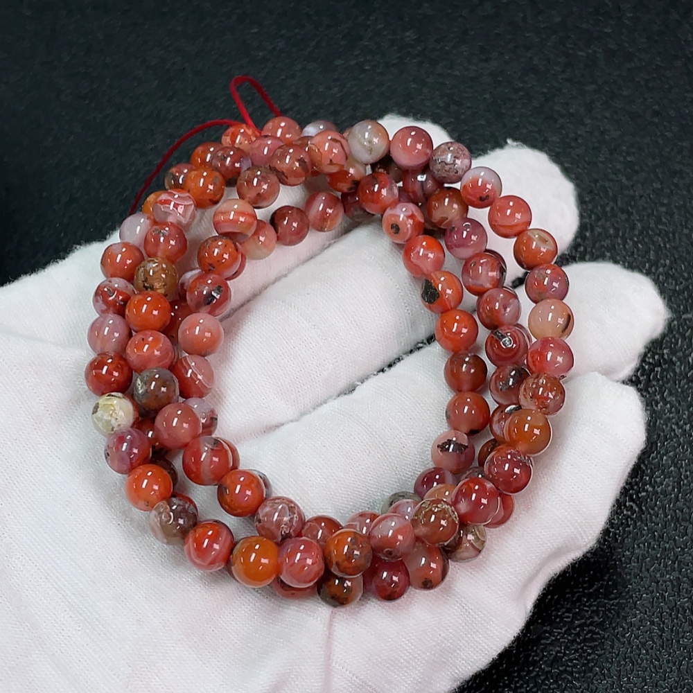 South Red Agate Bead Strand with Visible Organic Matter, Total Weight Approx. 37.32g, Size About 6.1mm