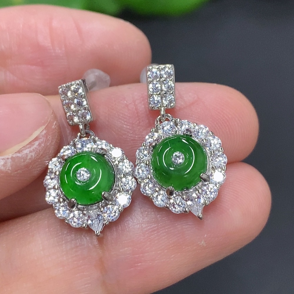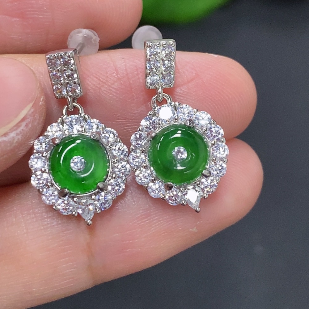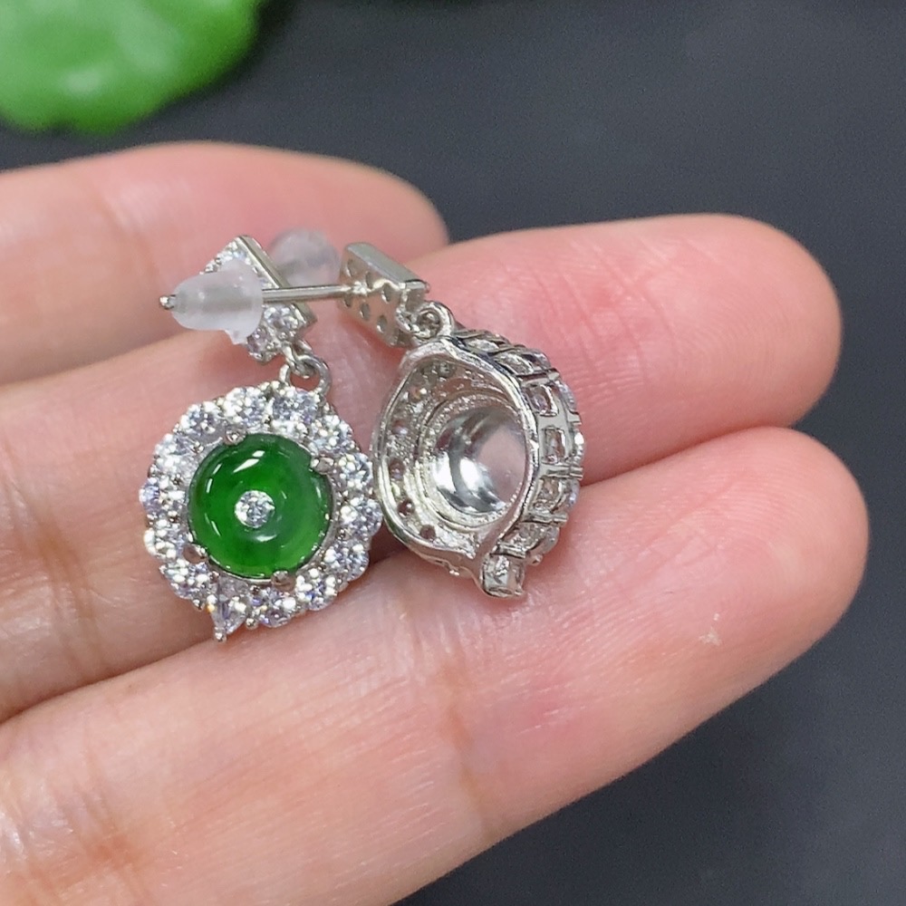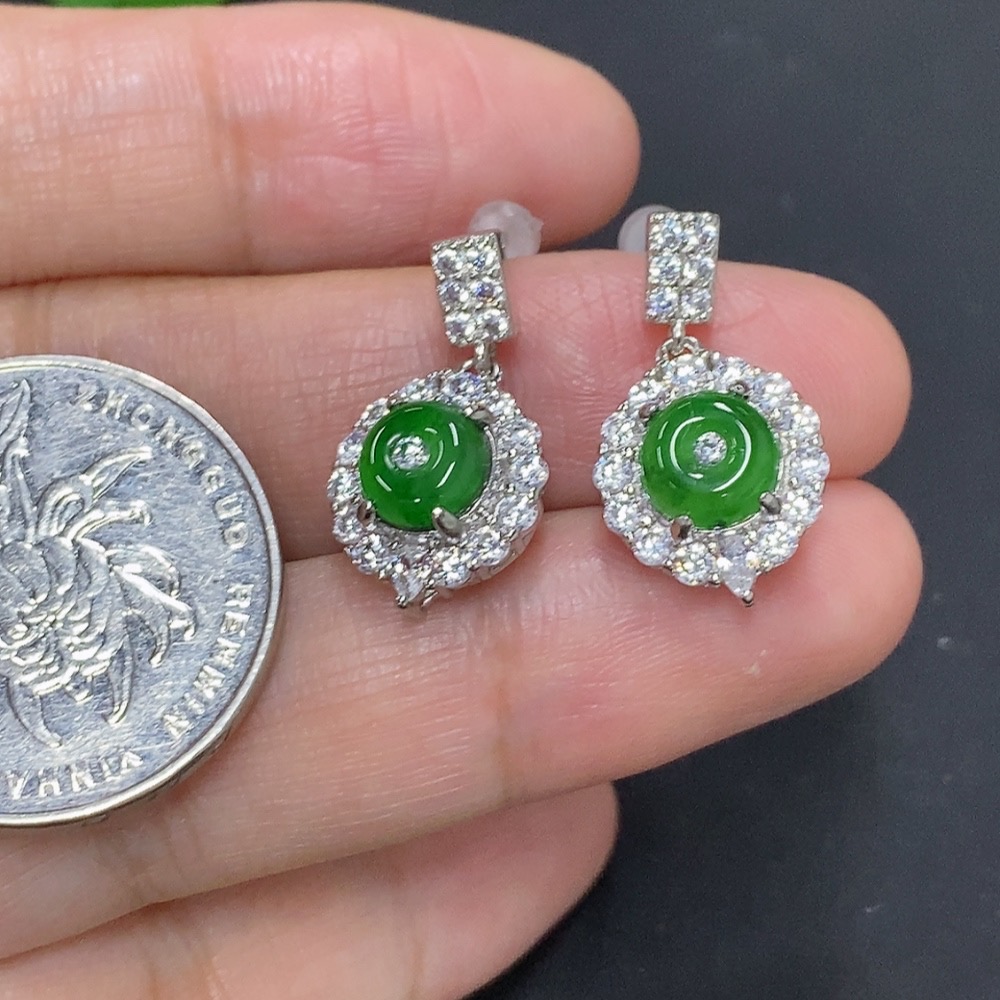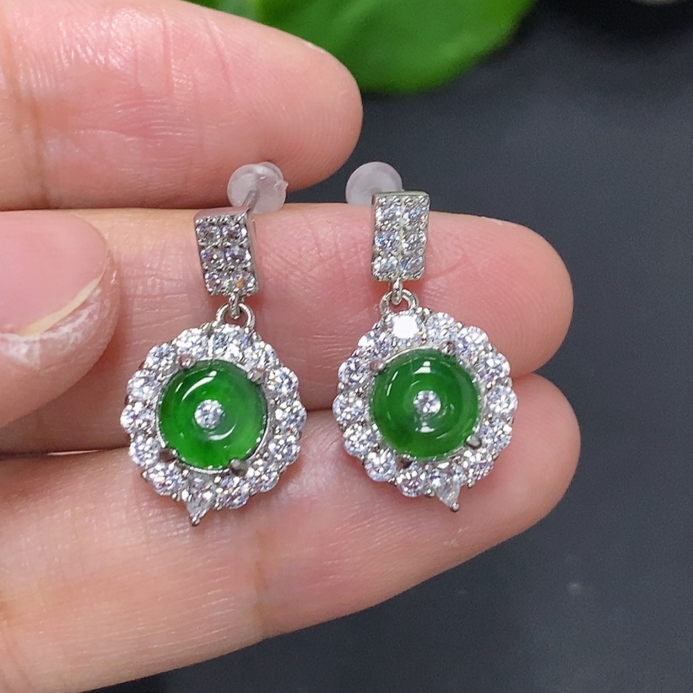 Jadeite Inlaid Earrings Non-Gold Inlaid Total Weight Approx. 3.3g