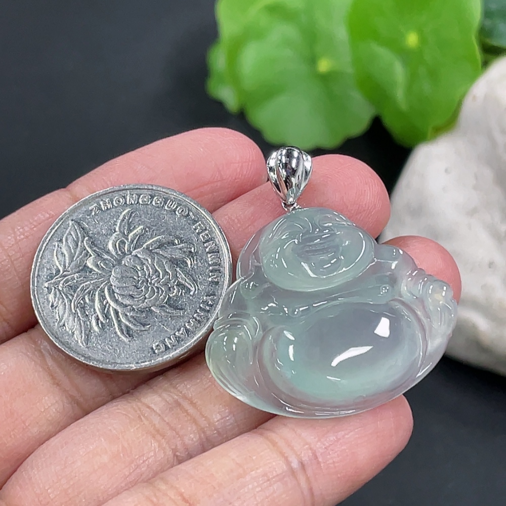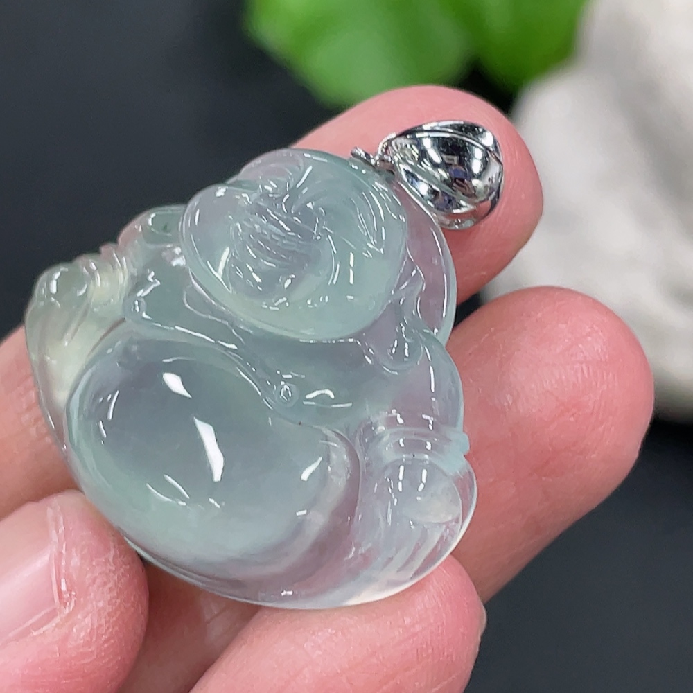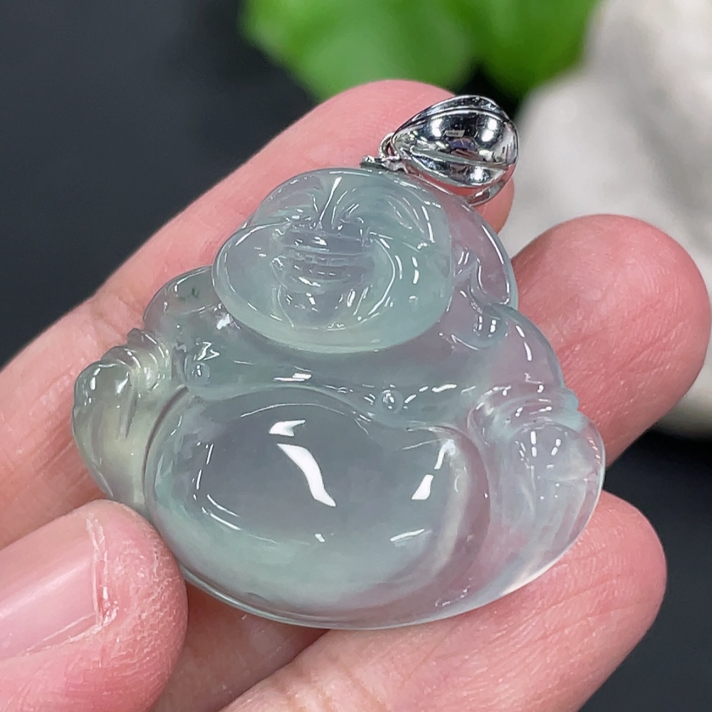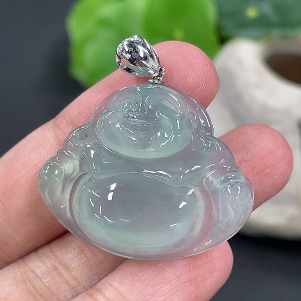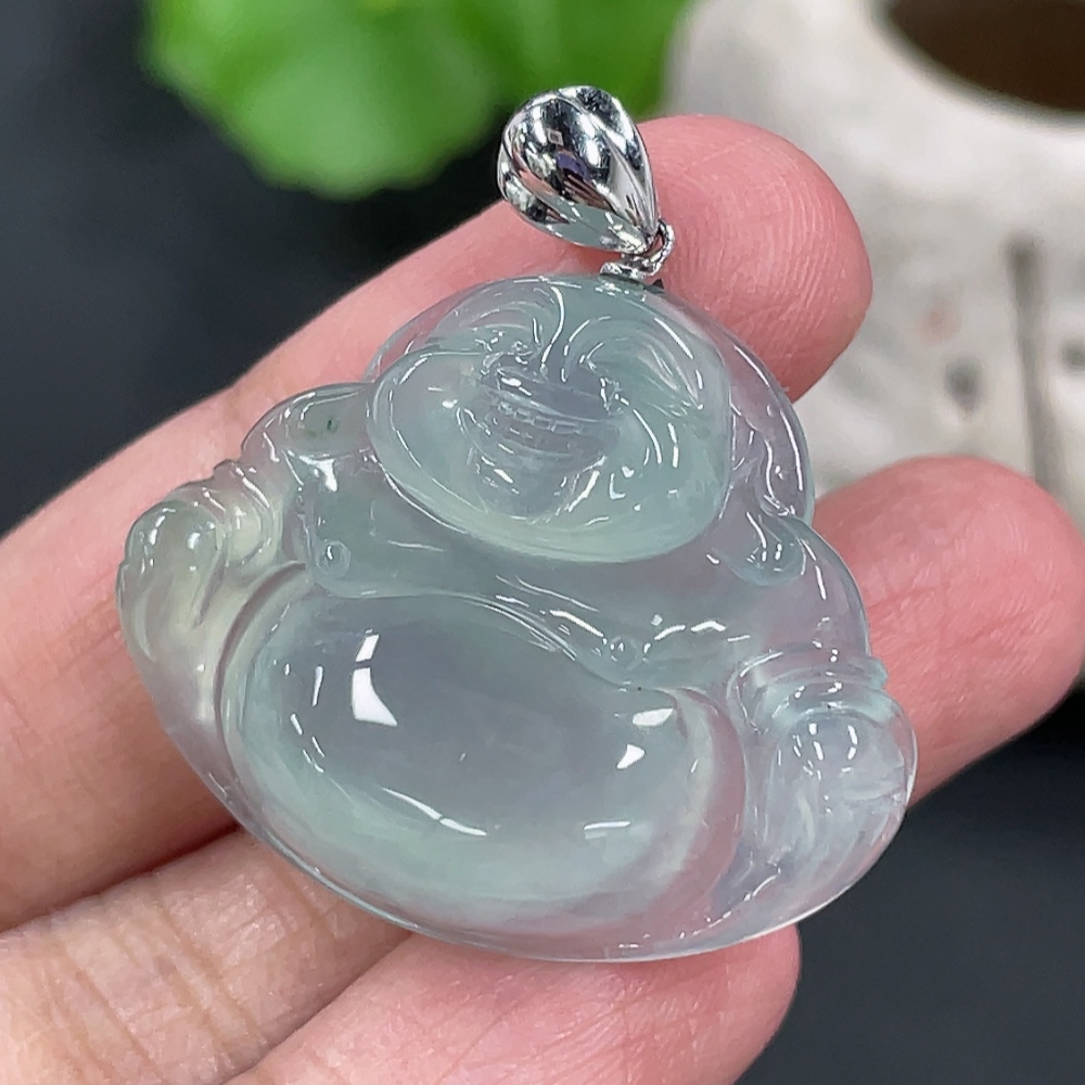 Jadeite Buddha Pendant Total Weight Approx.8.56g 18k Gold Clasp