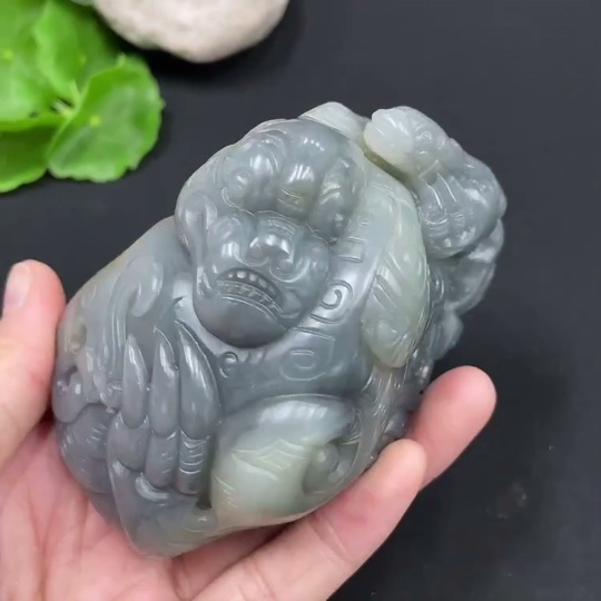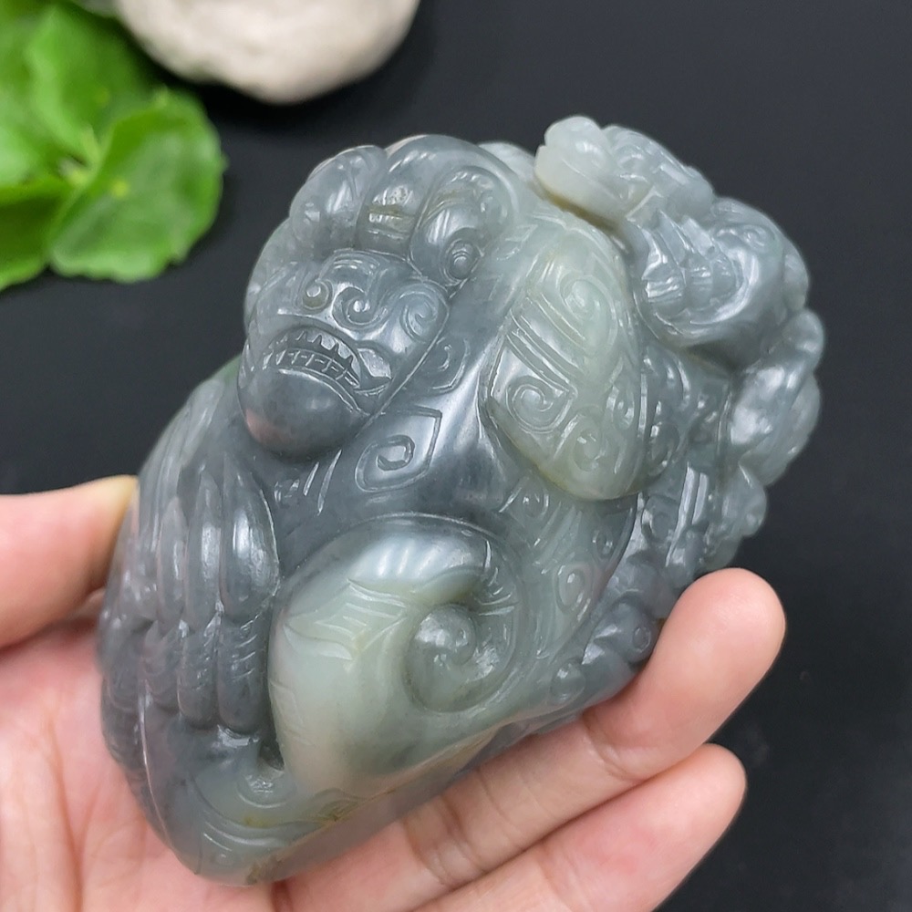 Hetian Jade Ornament Auspicious Beast Total Weight: Approx. 384.7g