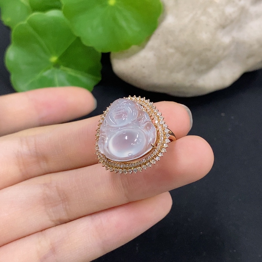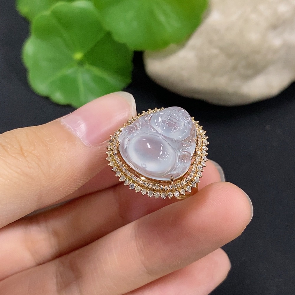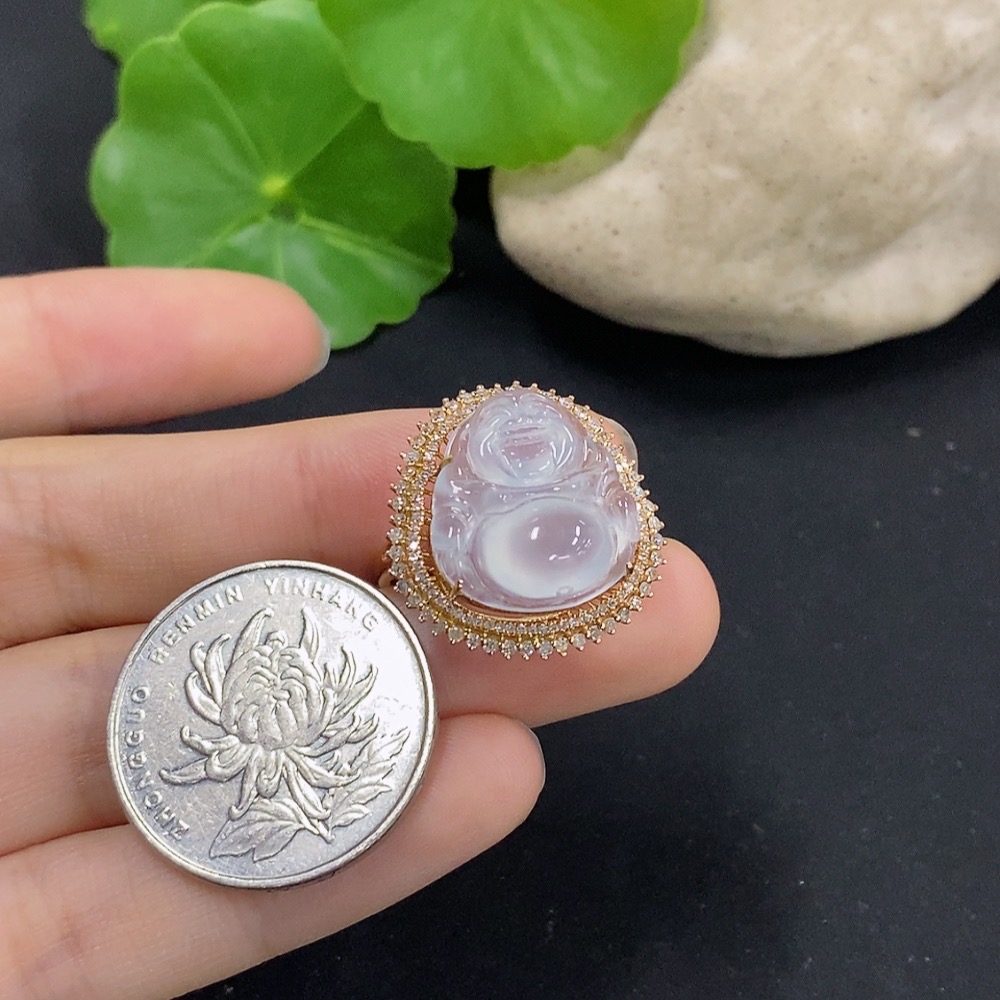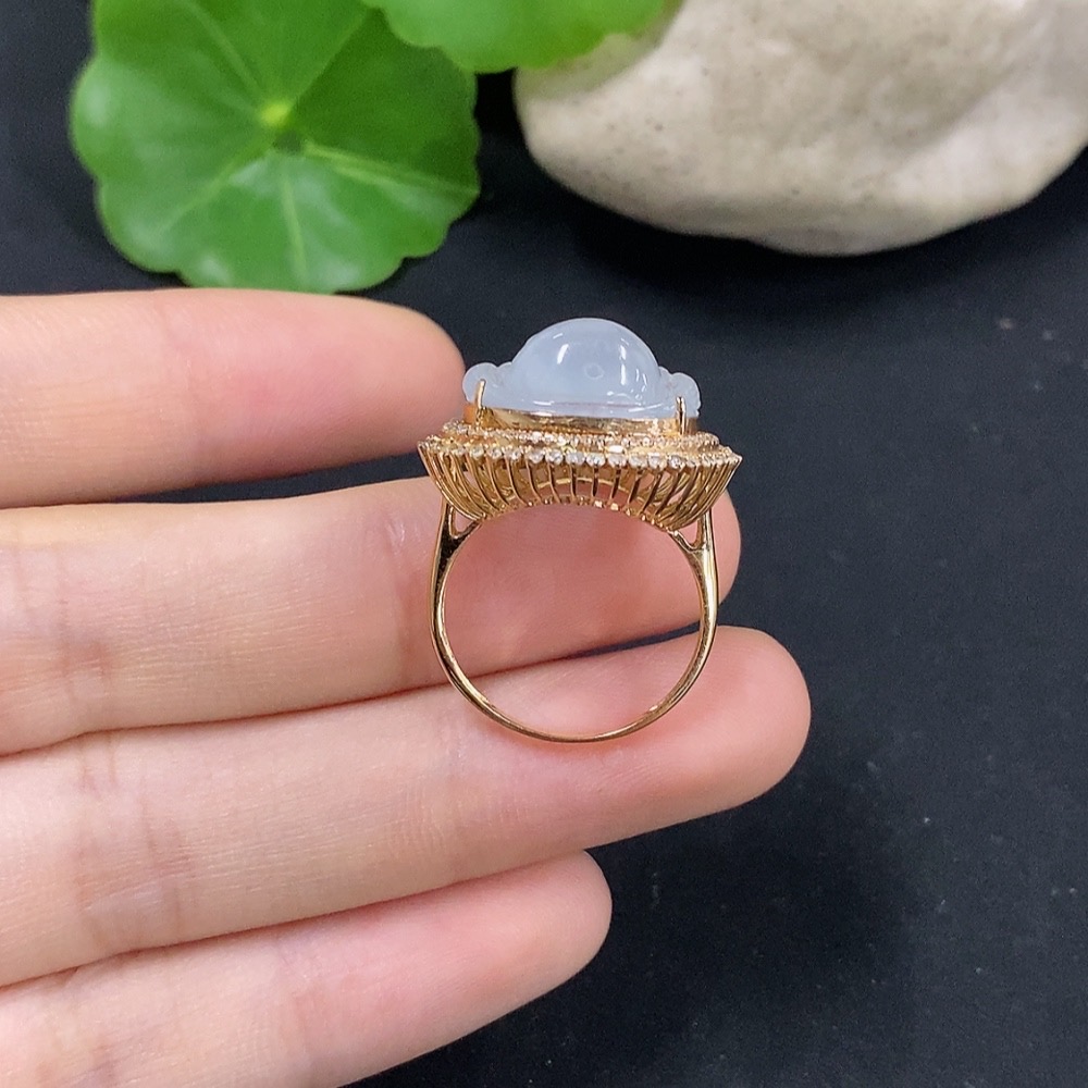 Jadeite Buddha Inlaid Ring 18K Gold with Diamond Size 12 Total Weight Approx. 4.71g