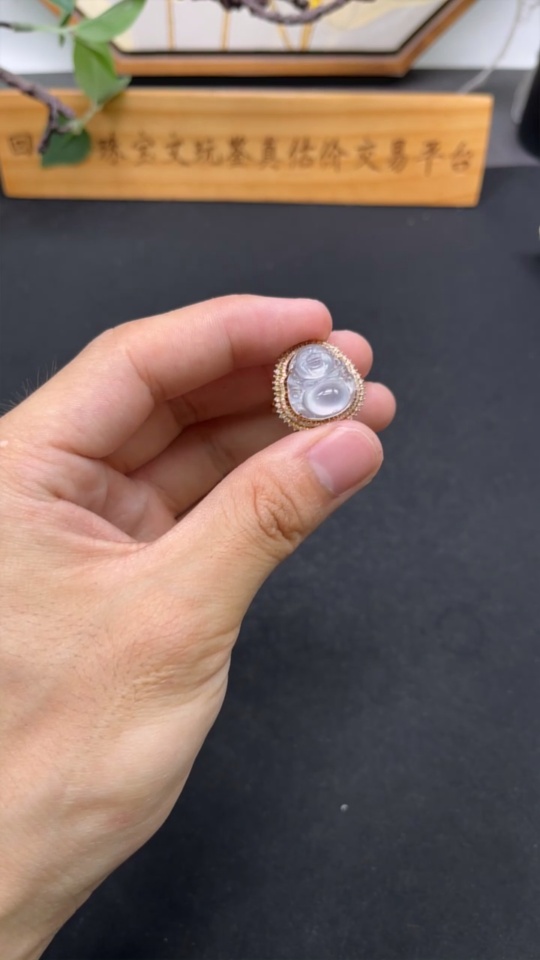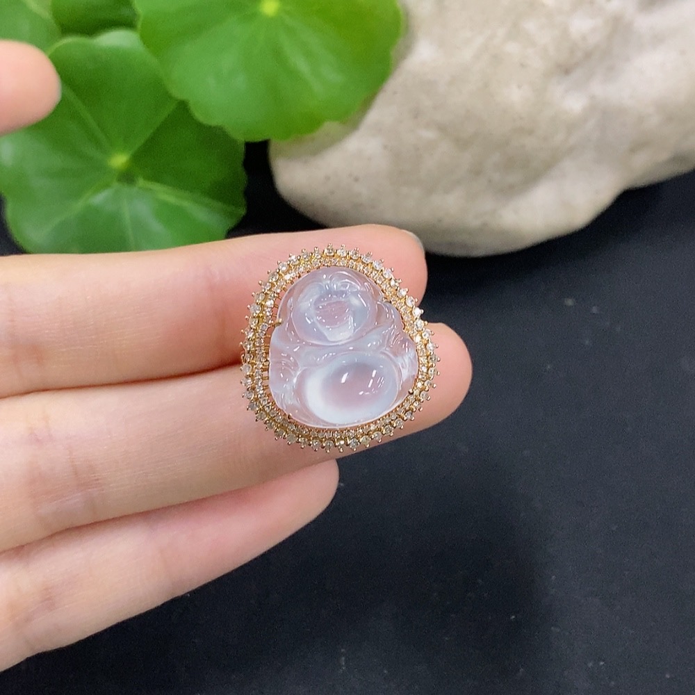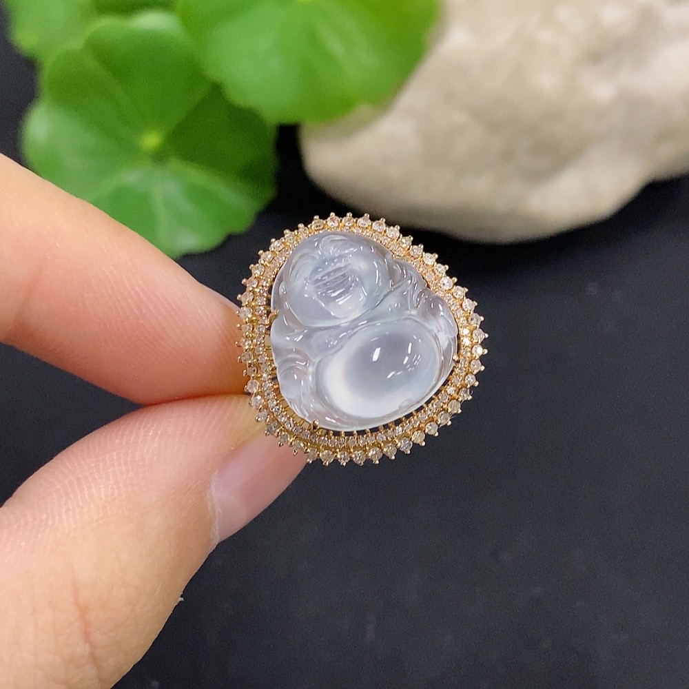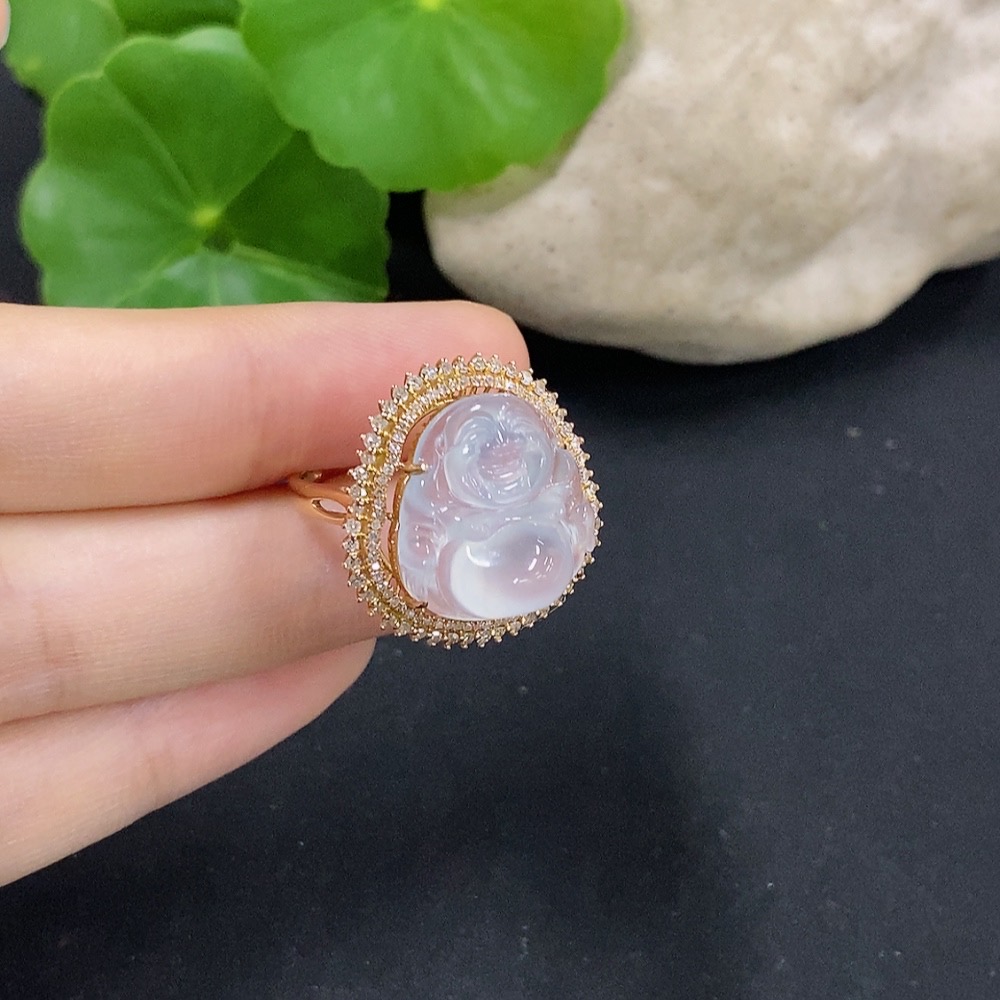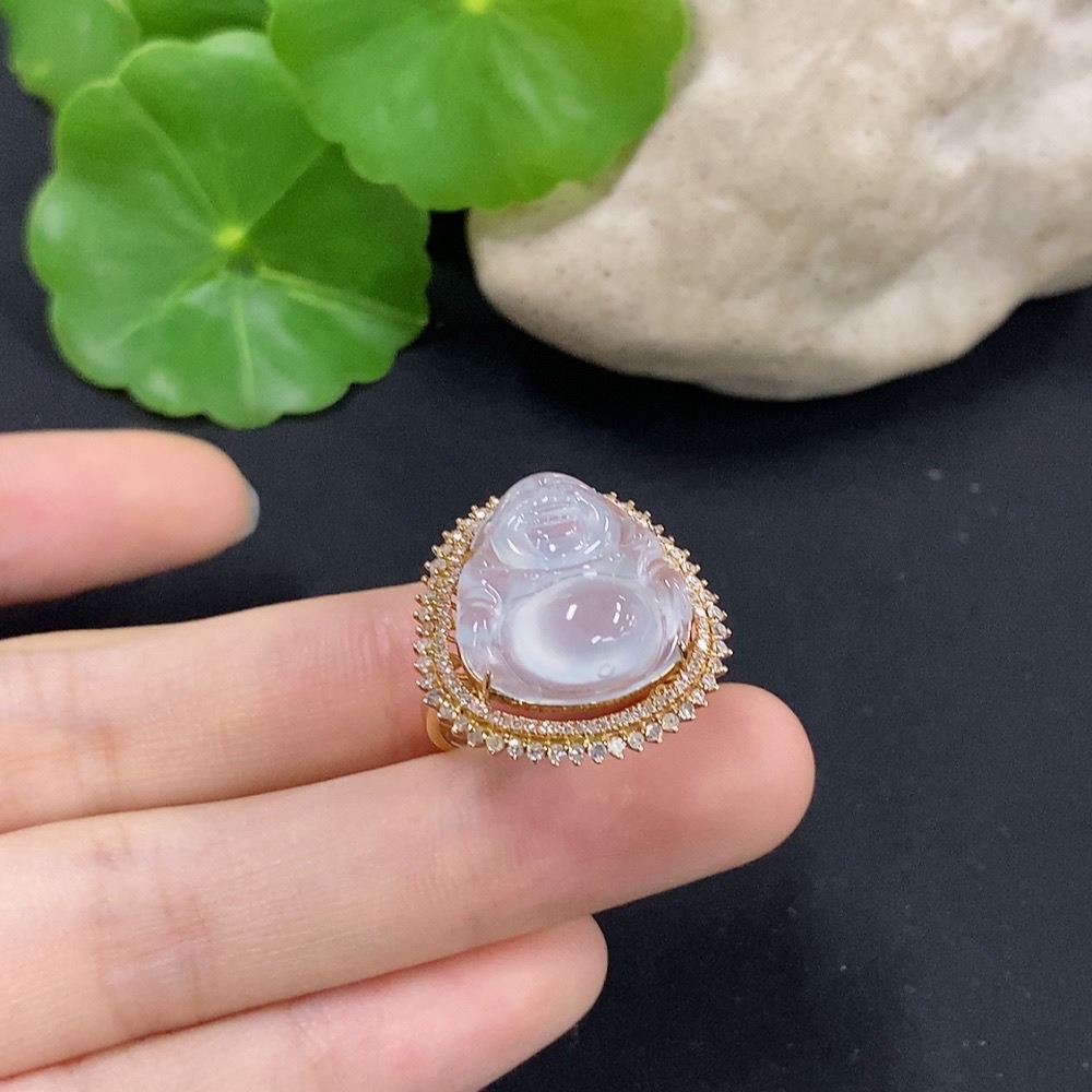 Jadeite Buddha Inlaid Ring 18K Gold with Diamond Size 12 Total Weight Approx. 4.71g