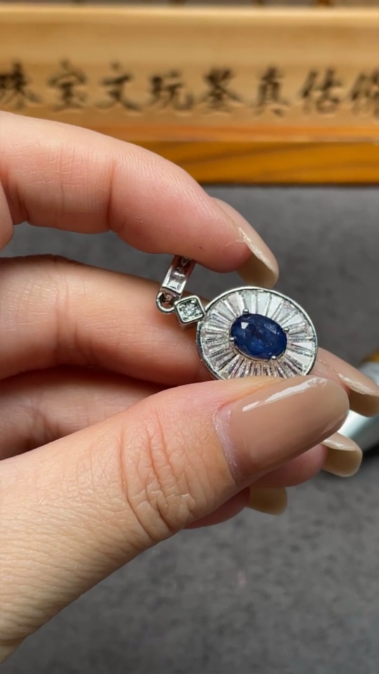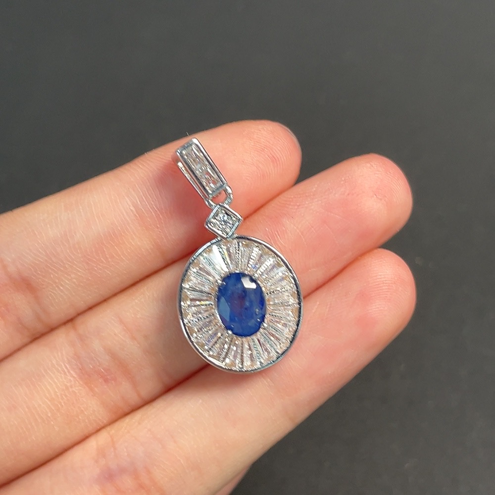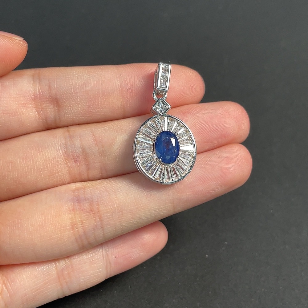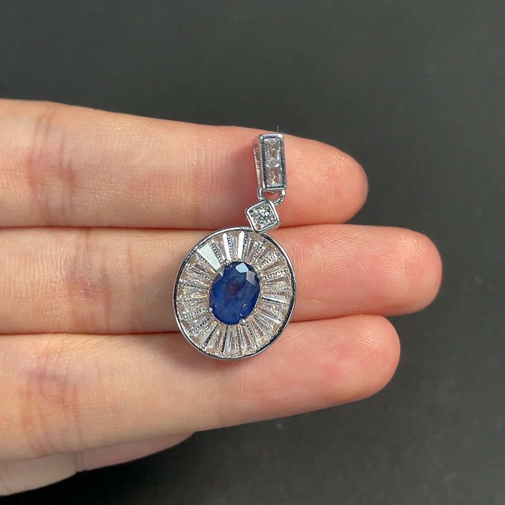 Sapphire Inlaid Pendant Non-Gold Inlaid Total Weight Approx. 3.92g