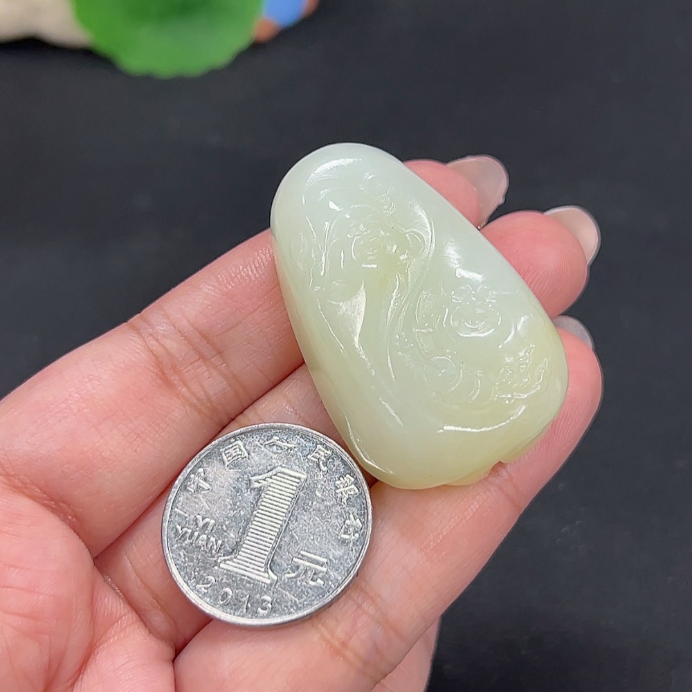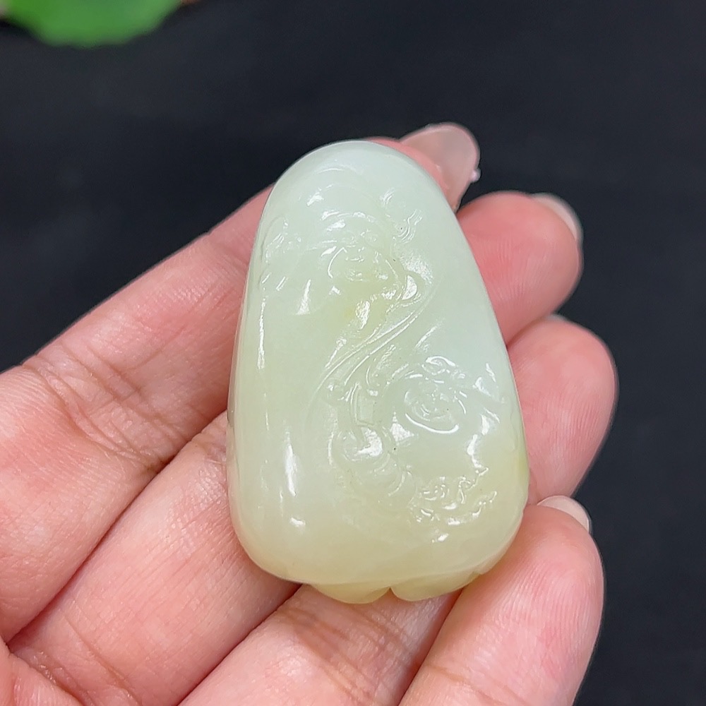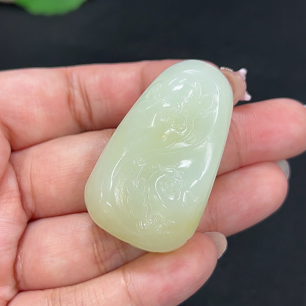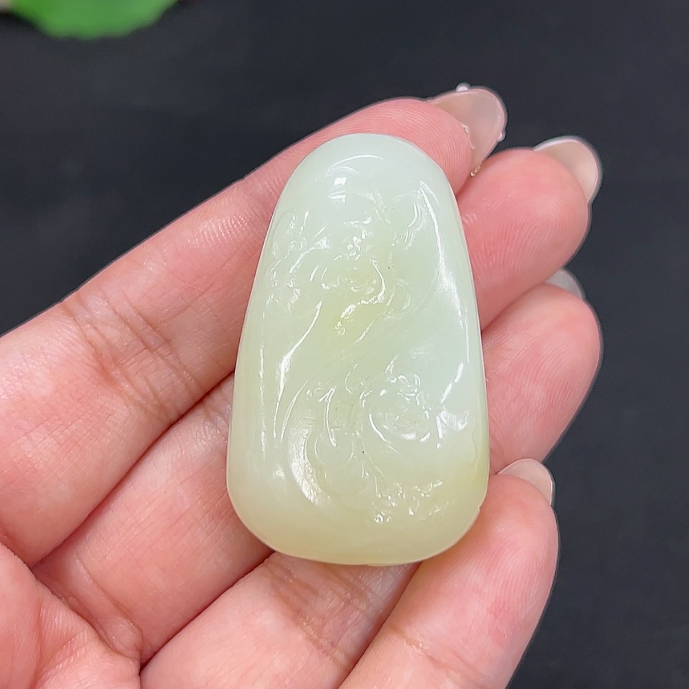 Hetian Jade Pendant Wealth and Blessings Total Weight Approx. 35.6g