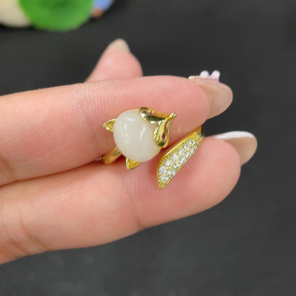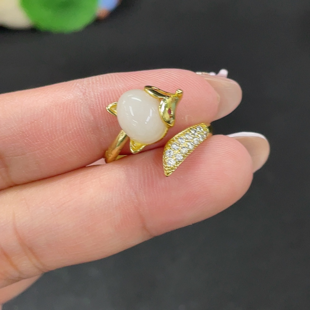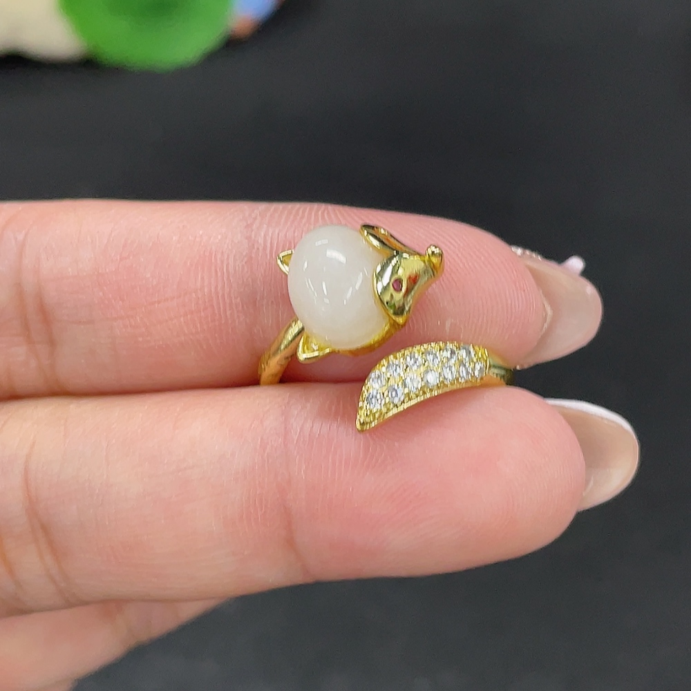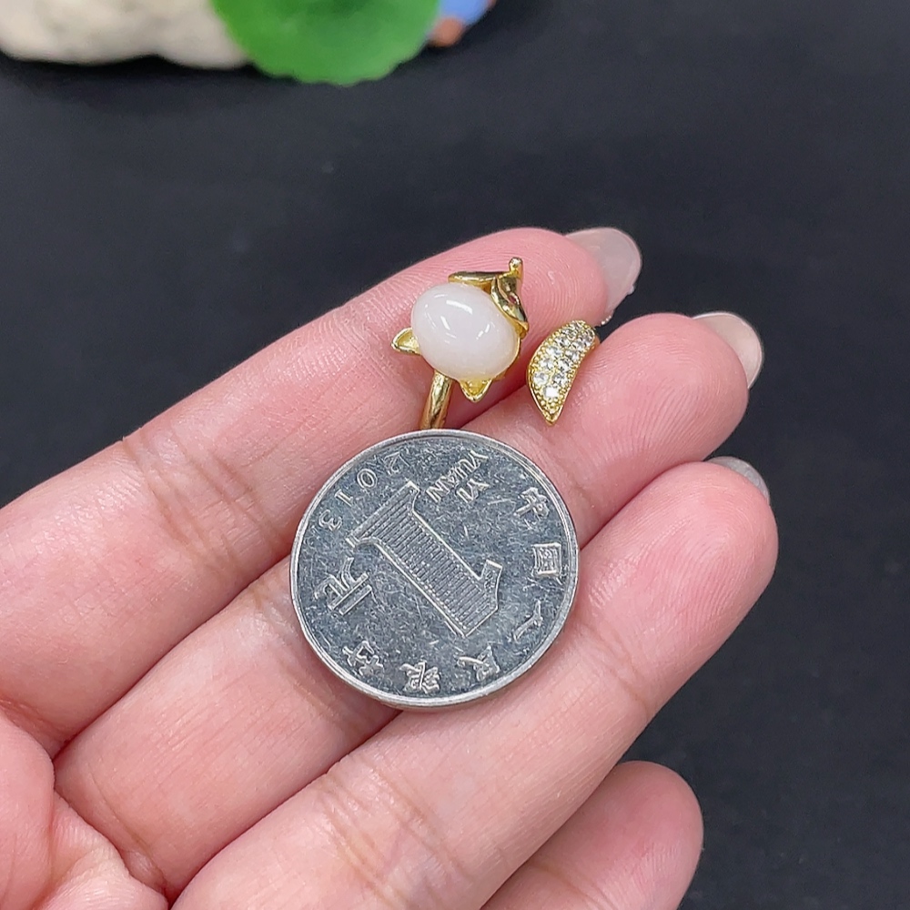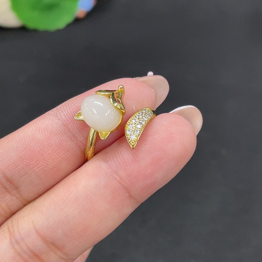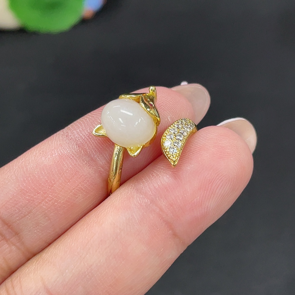 Hetian Jade Open-End Ring Total Weight Approx. 3.4g Containing Other Mineral Components Non-Gold