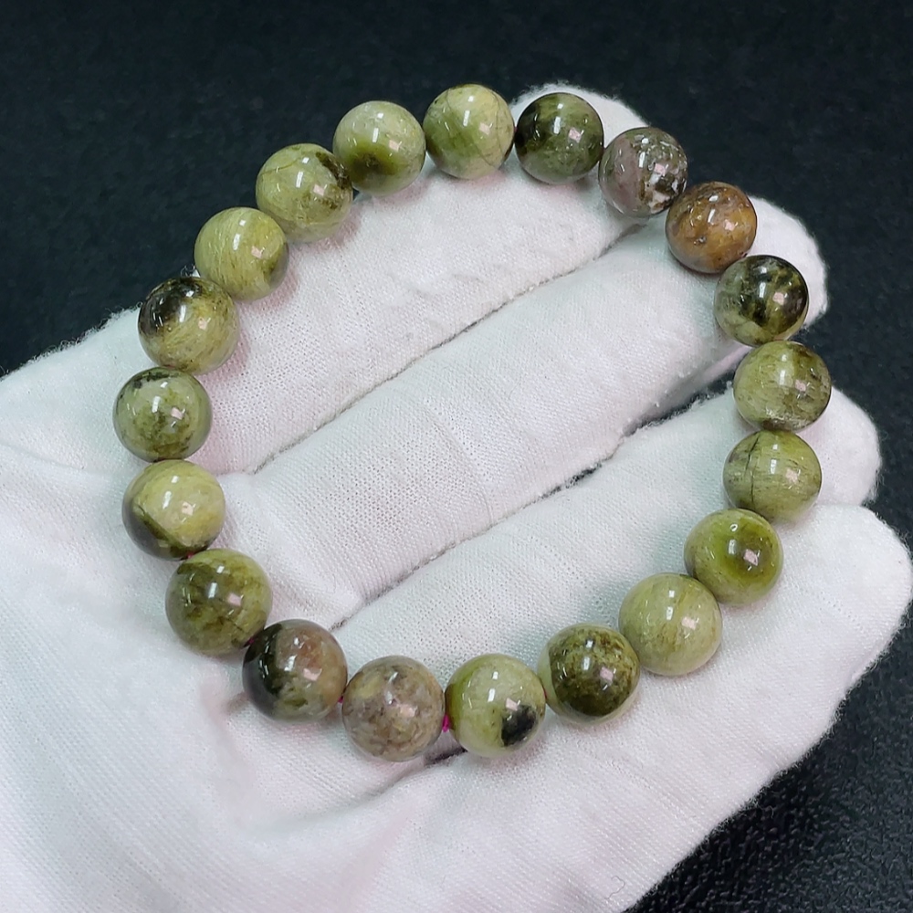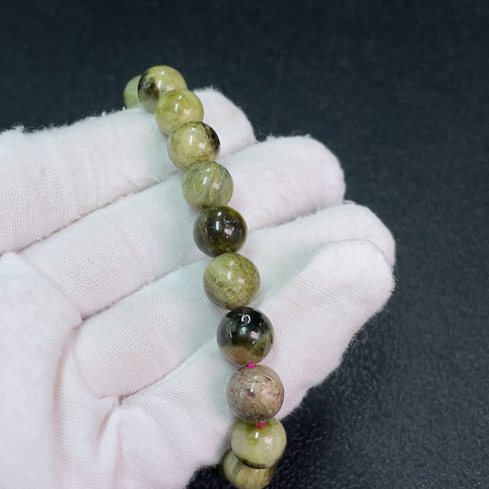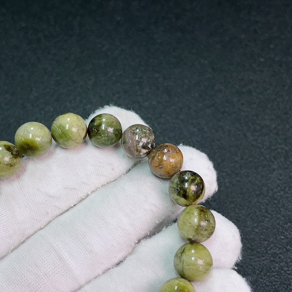 Tourmaline Bracelet with Other Mineral Components, Visible Organic Matter, Total Weight Approx. 27.29g, Size About 9.4mm (Mineral-Included)