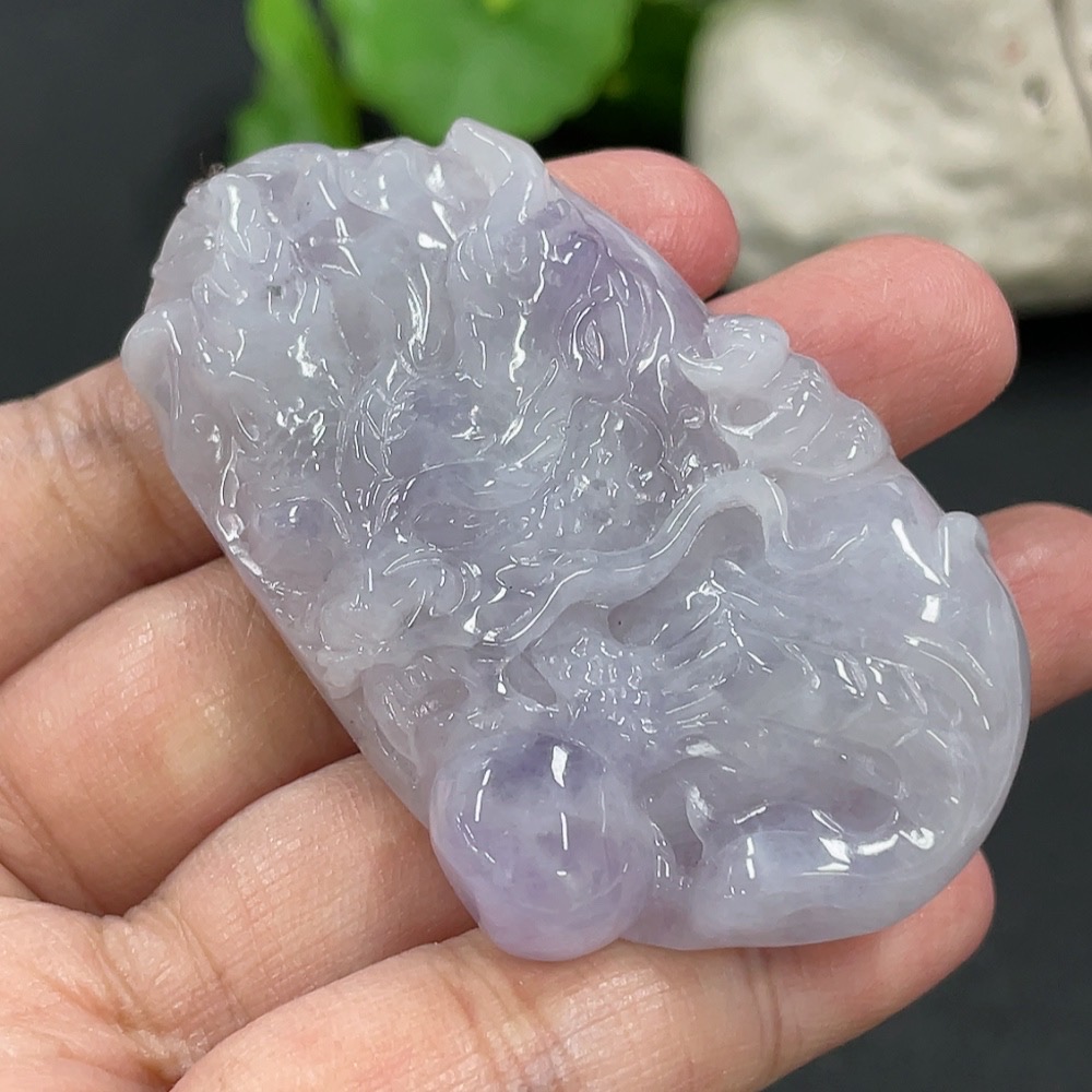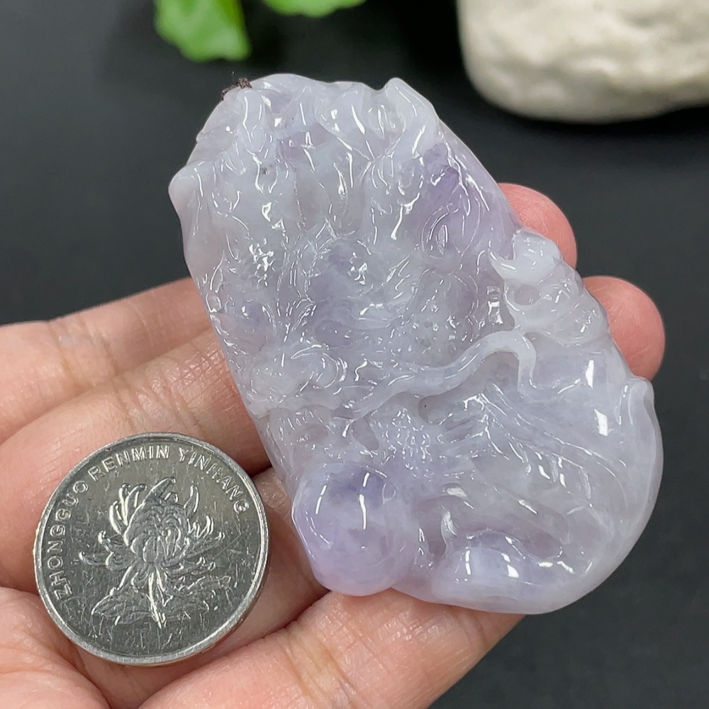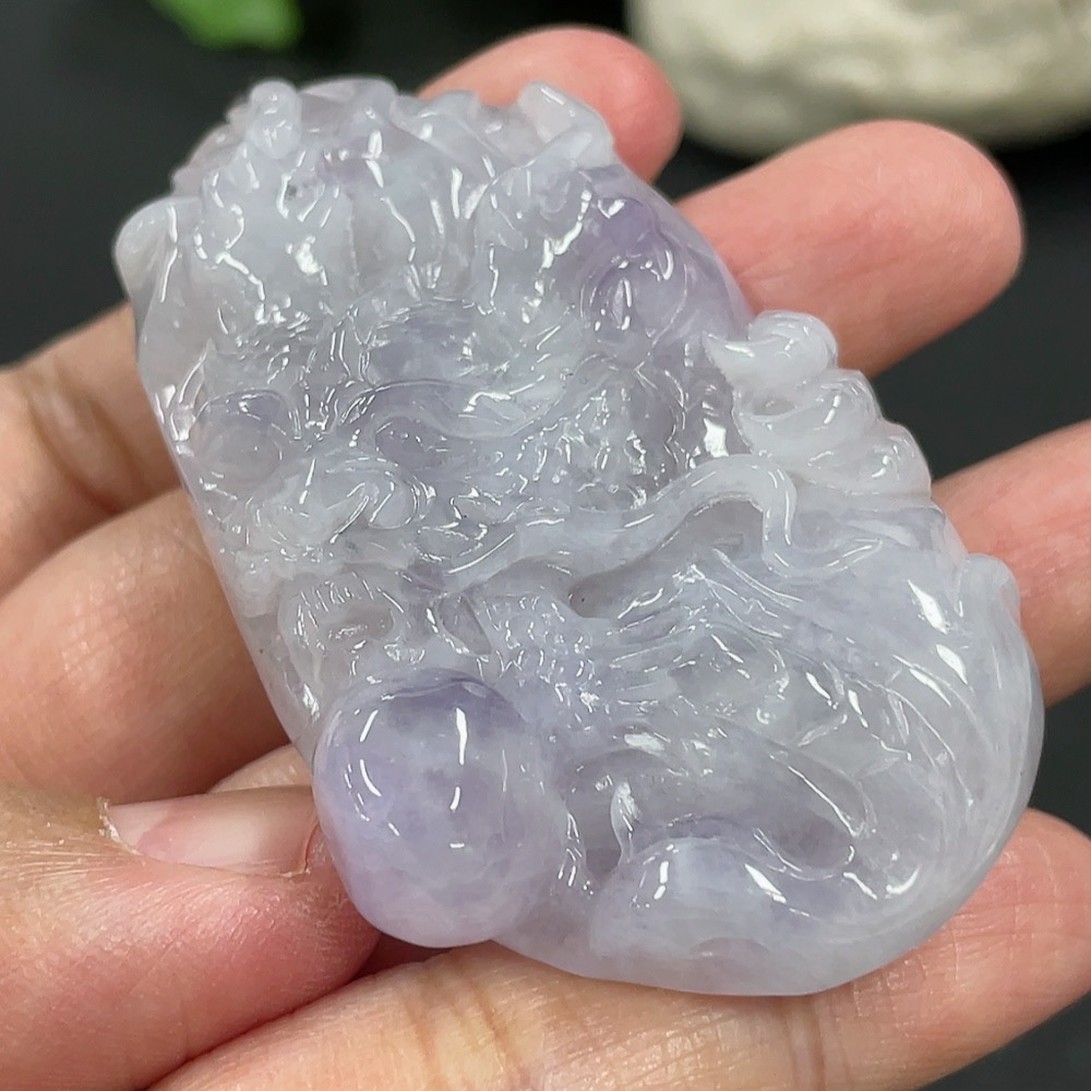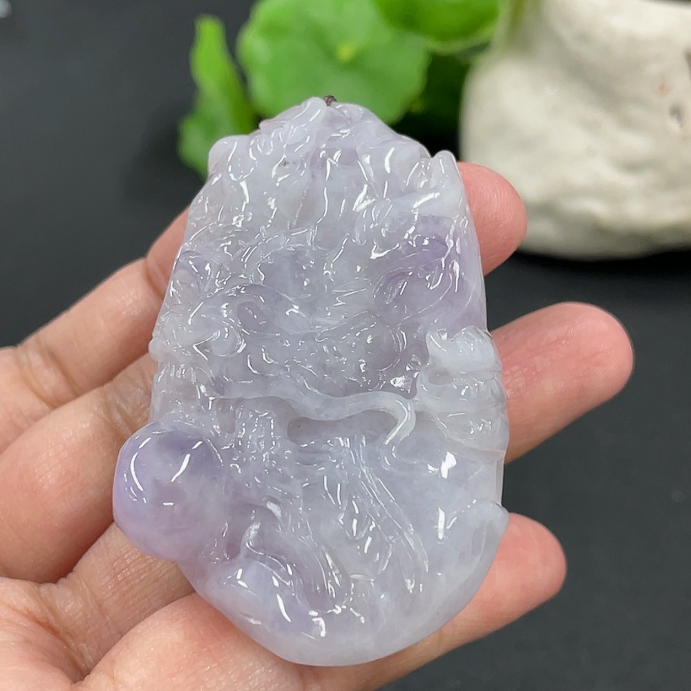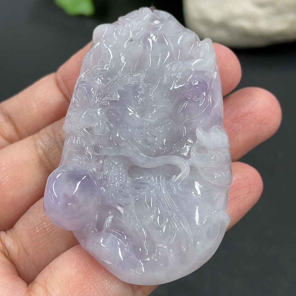 Jadeite Dragon Pendant Total Weight Approx. 43.3g (Including Cord Weight) (Beads Not Grade A)