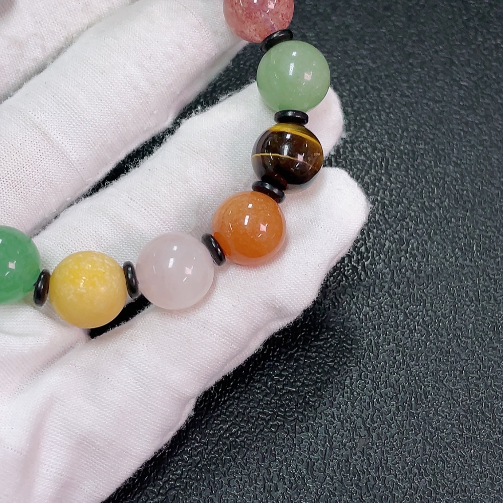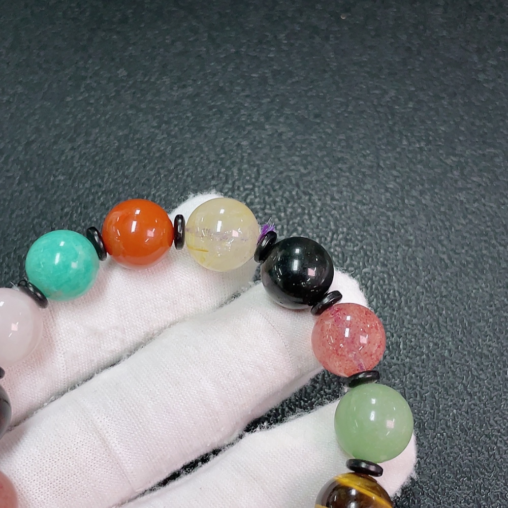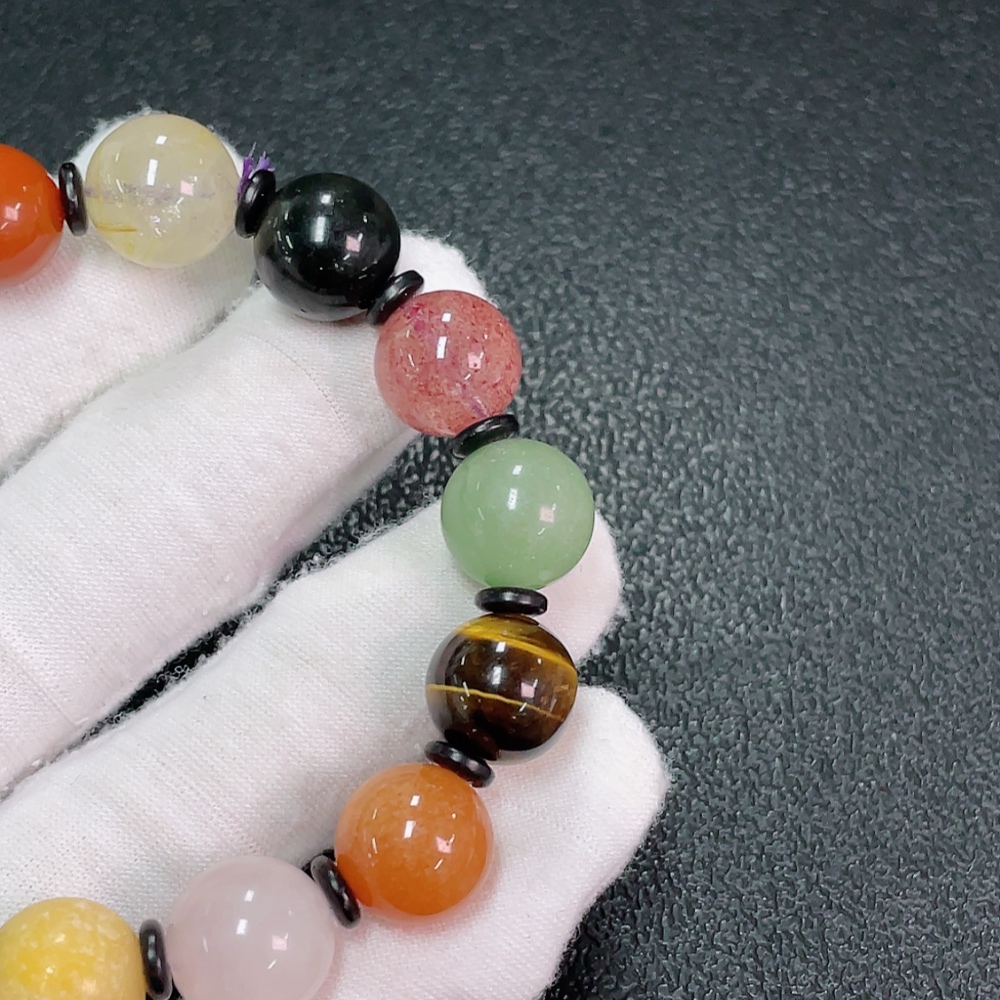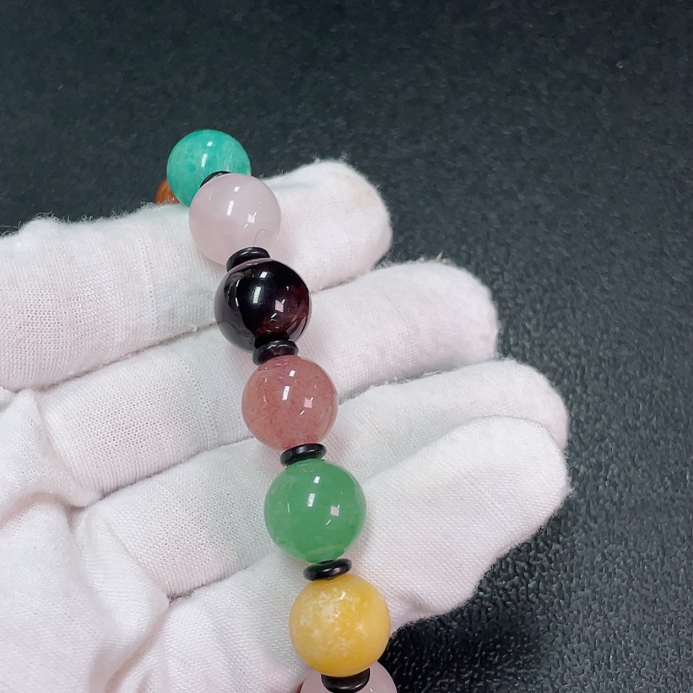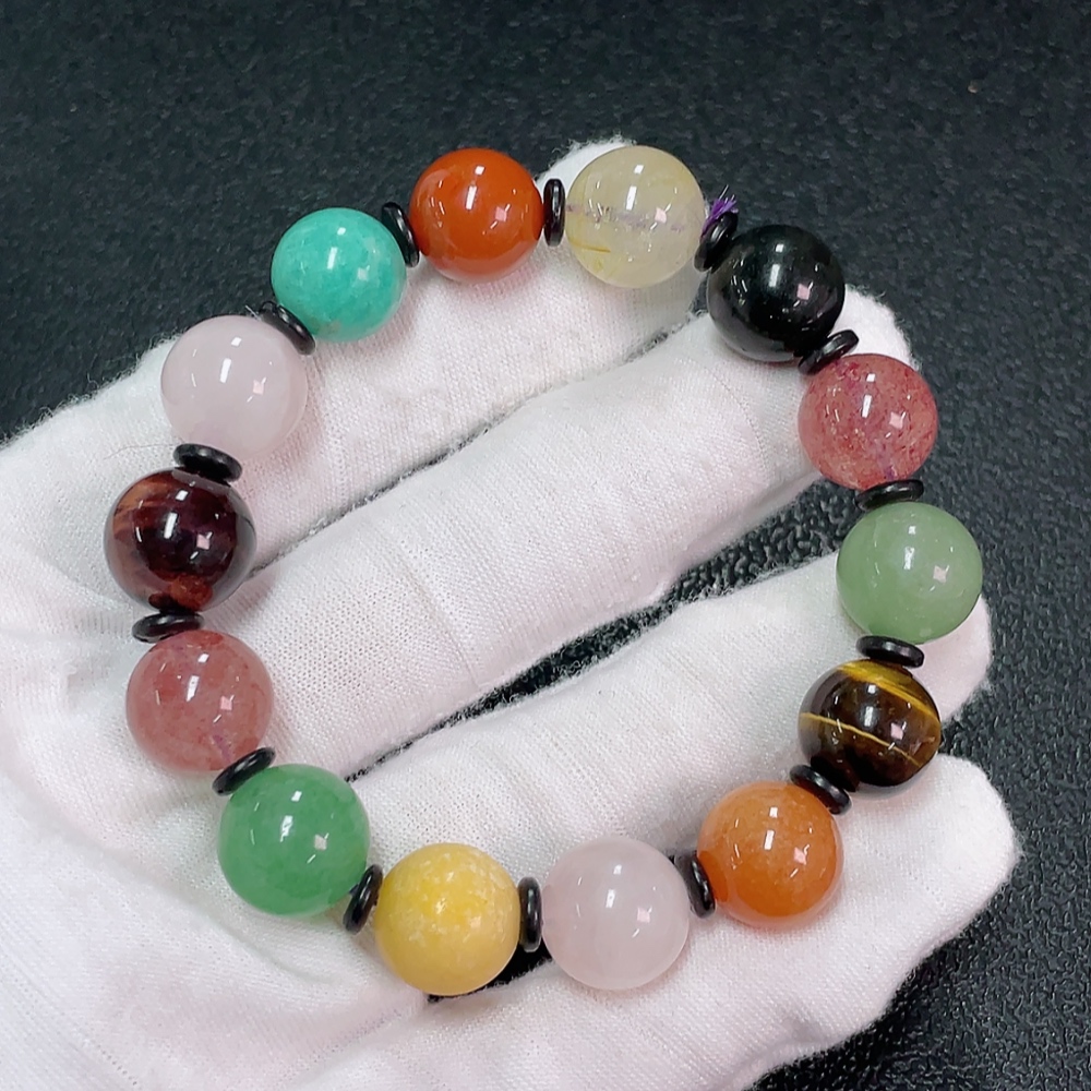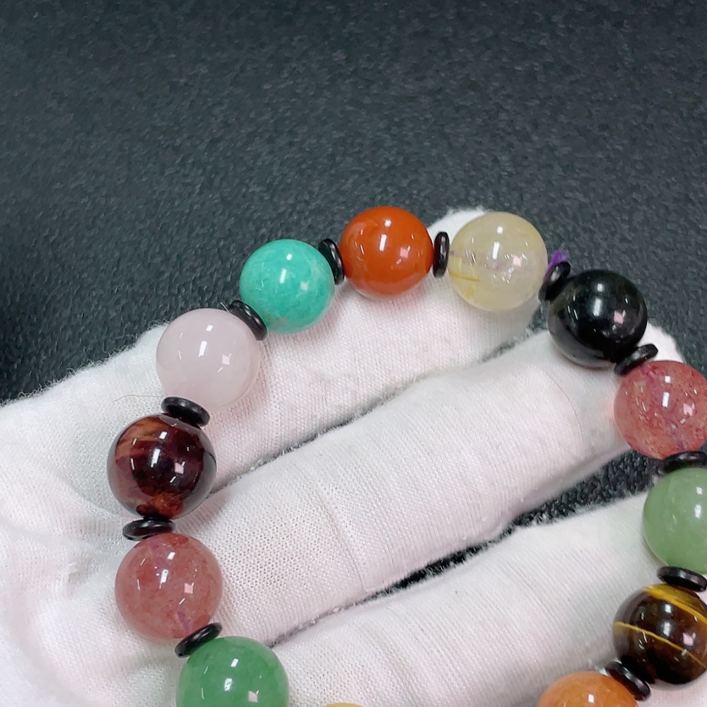 Crystal Bracelet (Pink & White Only, Visible Organic Matter, Non-Natural Accent Stones Considered, Approx. 36.21g Total Weight, ~12.3mm Beads, Numerous Inclusions)