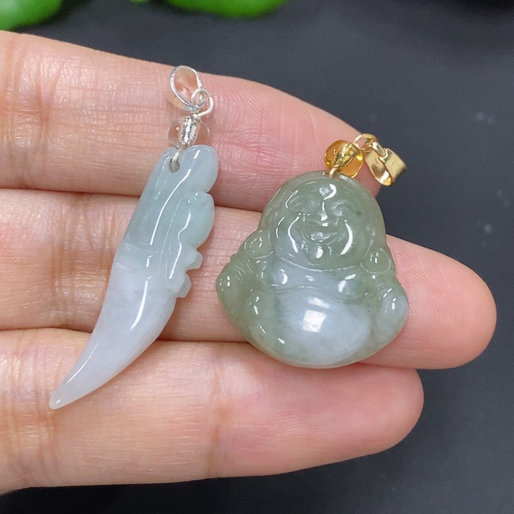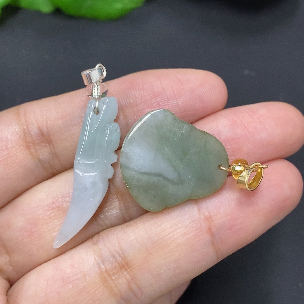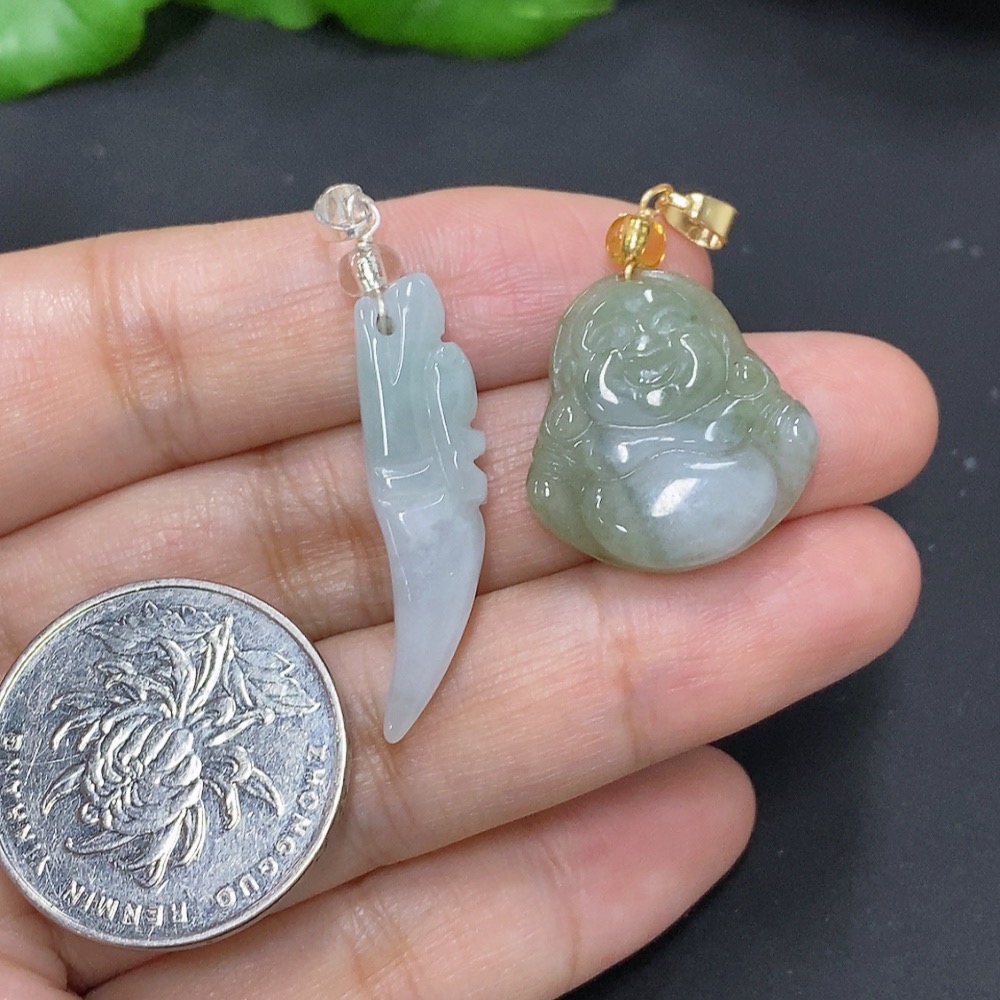 Jadeite Pendants Sell as a Lot Non-Gold Inlaid
