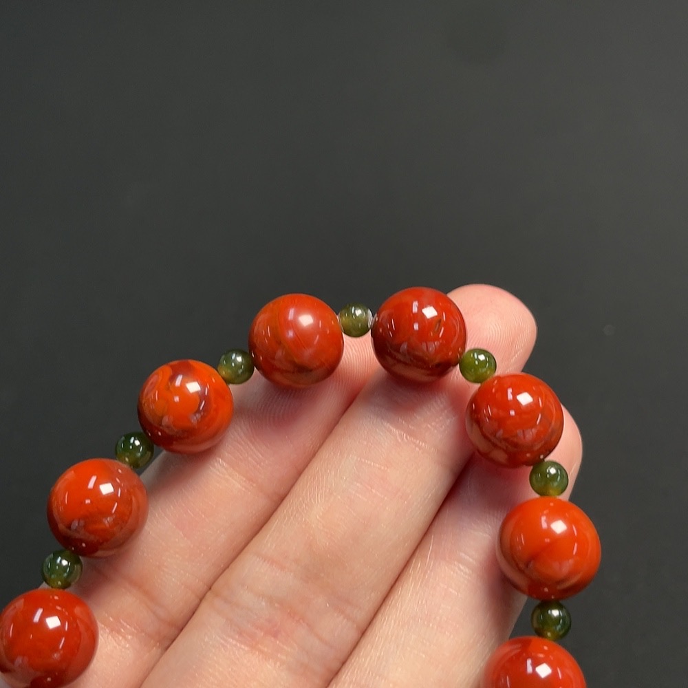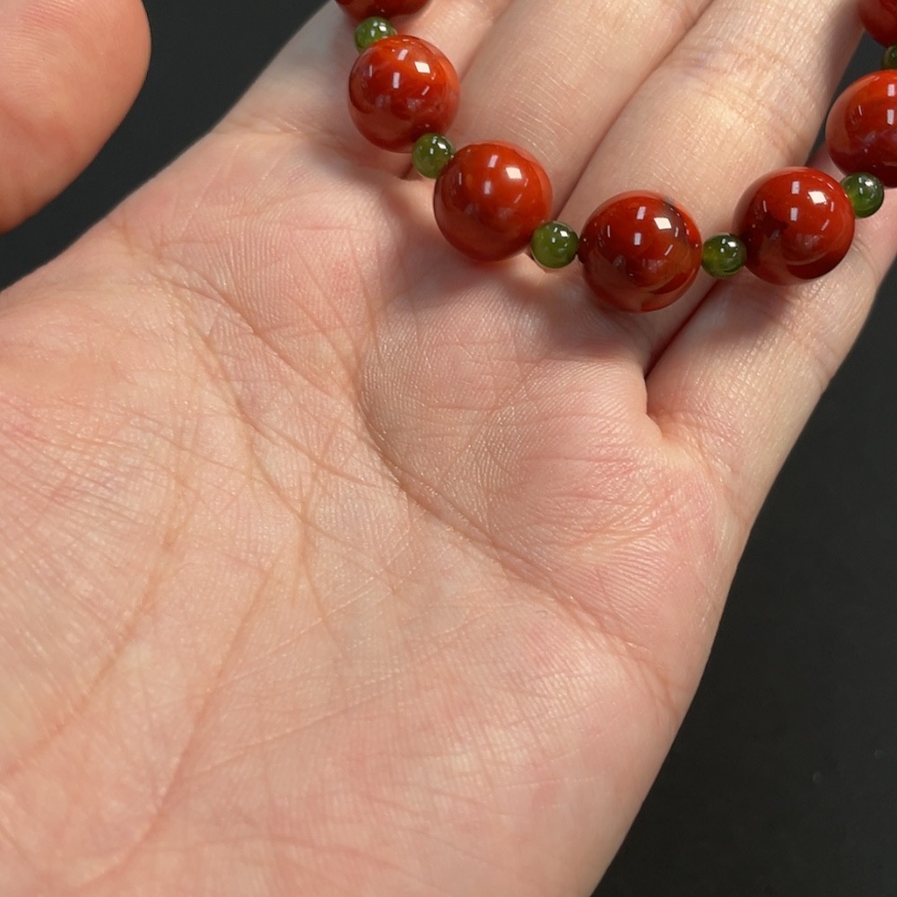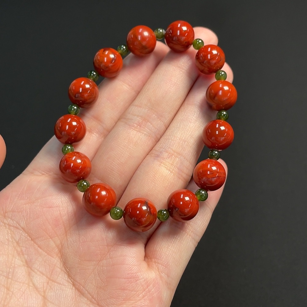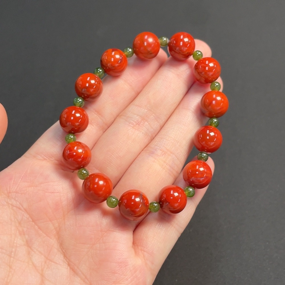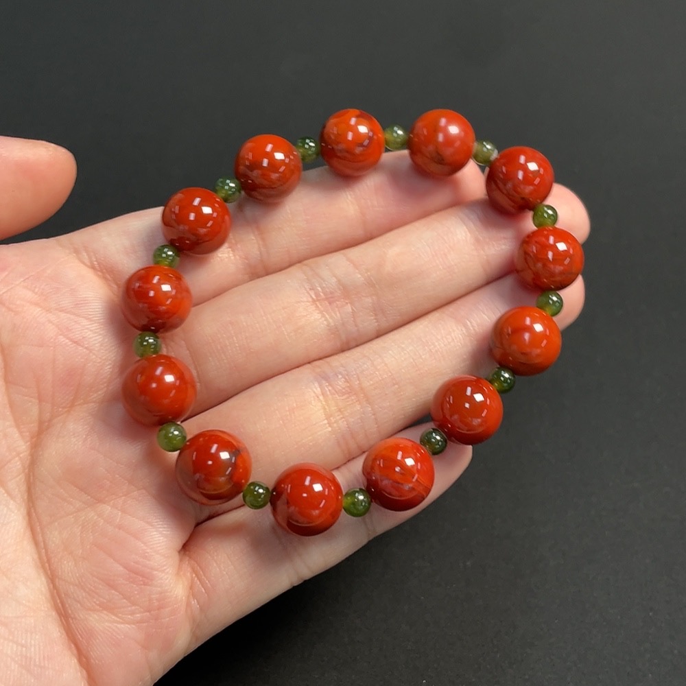 South Red Agate Bracelet, approx. 10.2mm, total weight approx. 22.36g, visible organic matter, with Hetian Jade