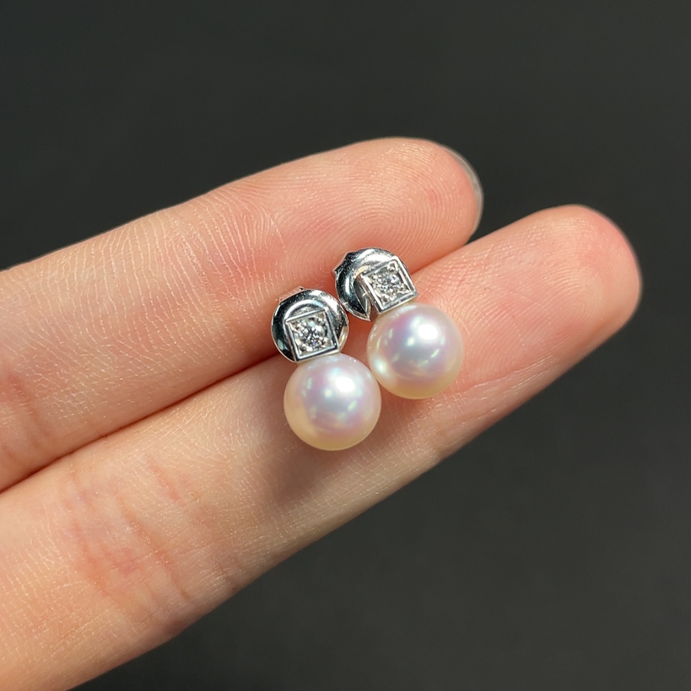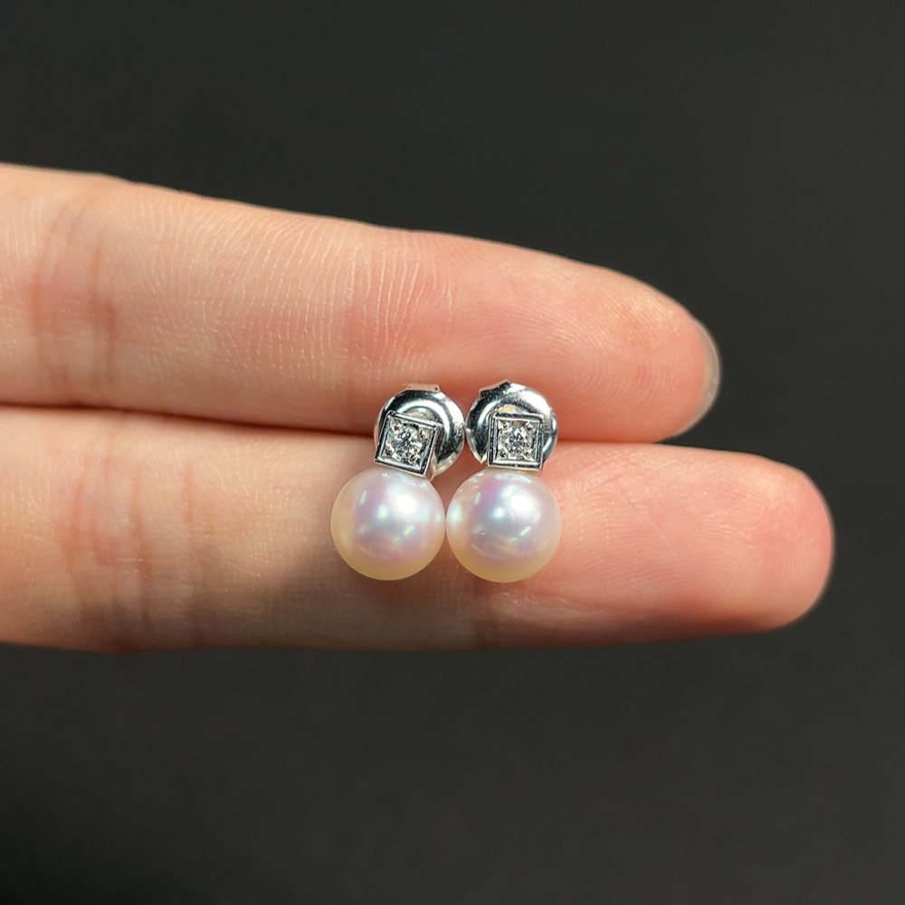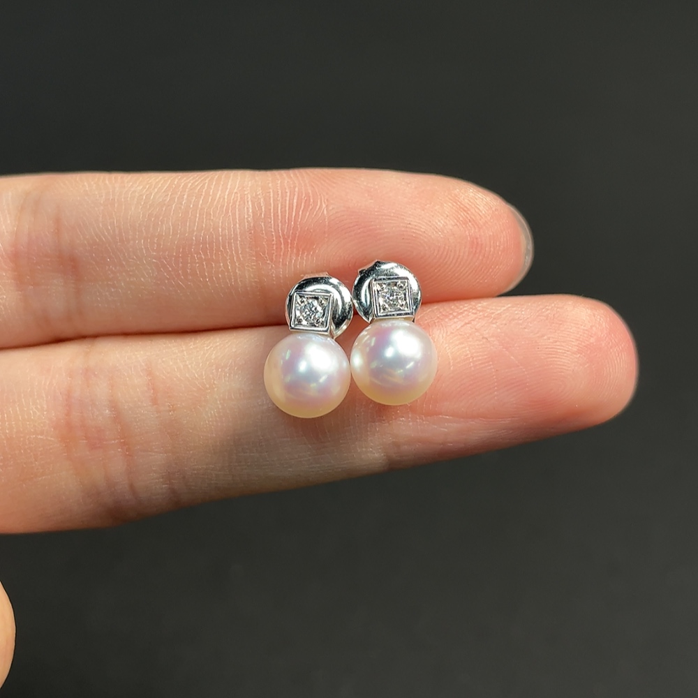 Seawater pearl earrings,疑似镀金针,其余18k金,总重约3.17克,卡7.1mm左右