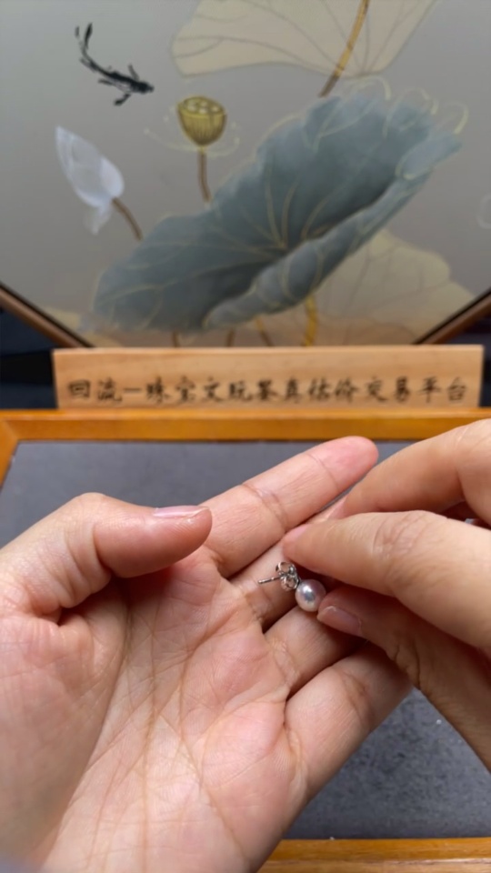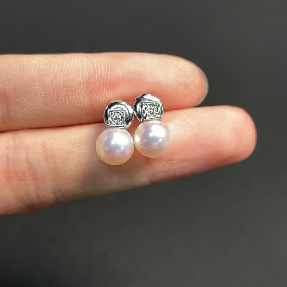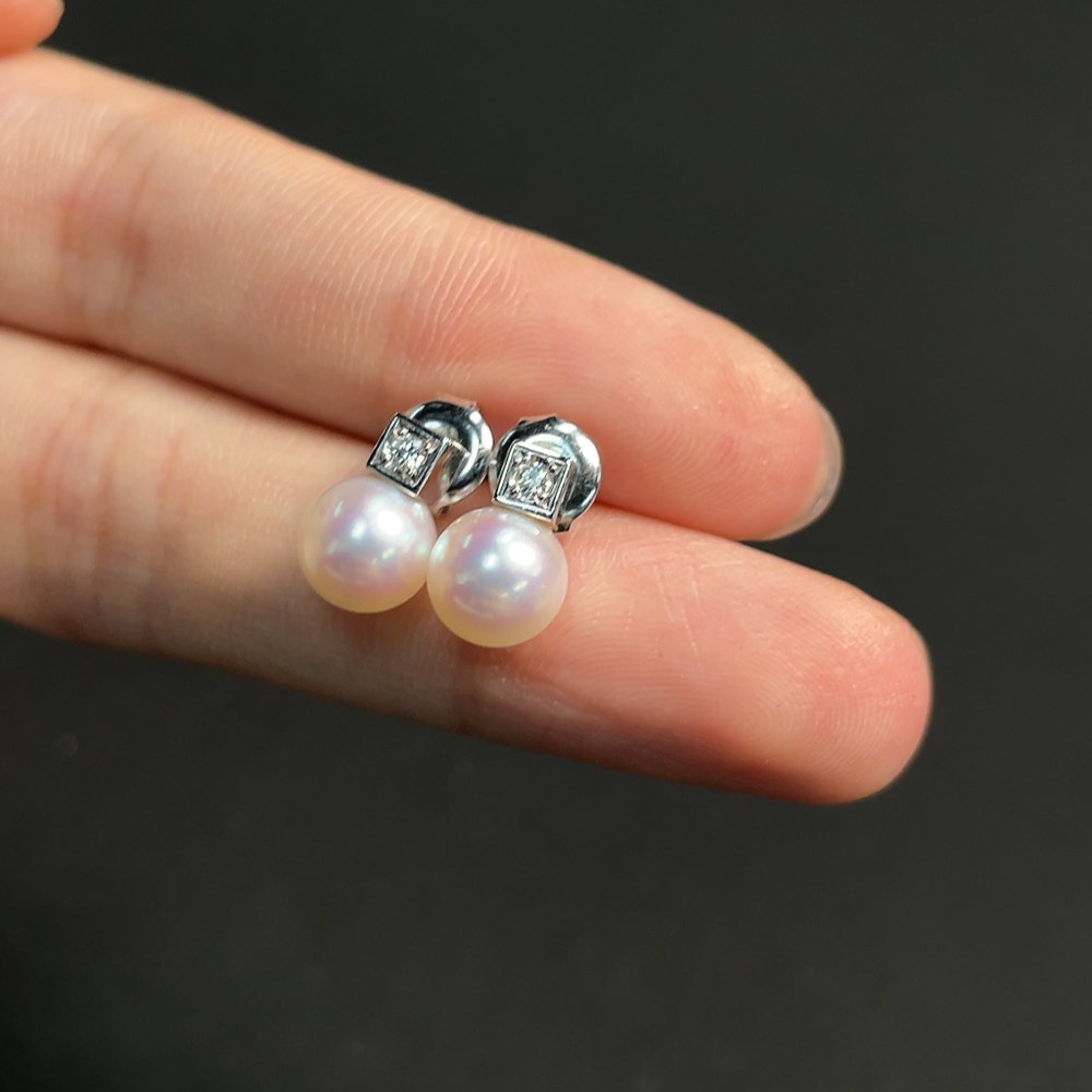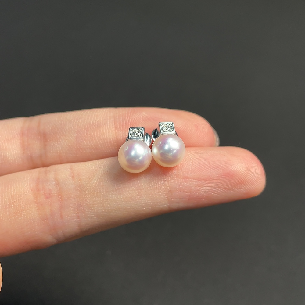 Seawater pearl earrings,疑似镀金针,其余18k金,总重约3.17克,卡7.1mm左右