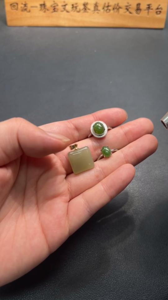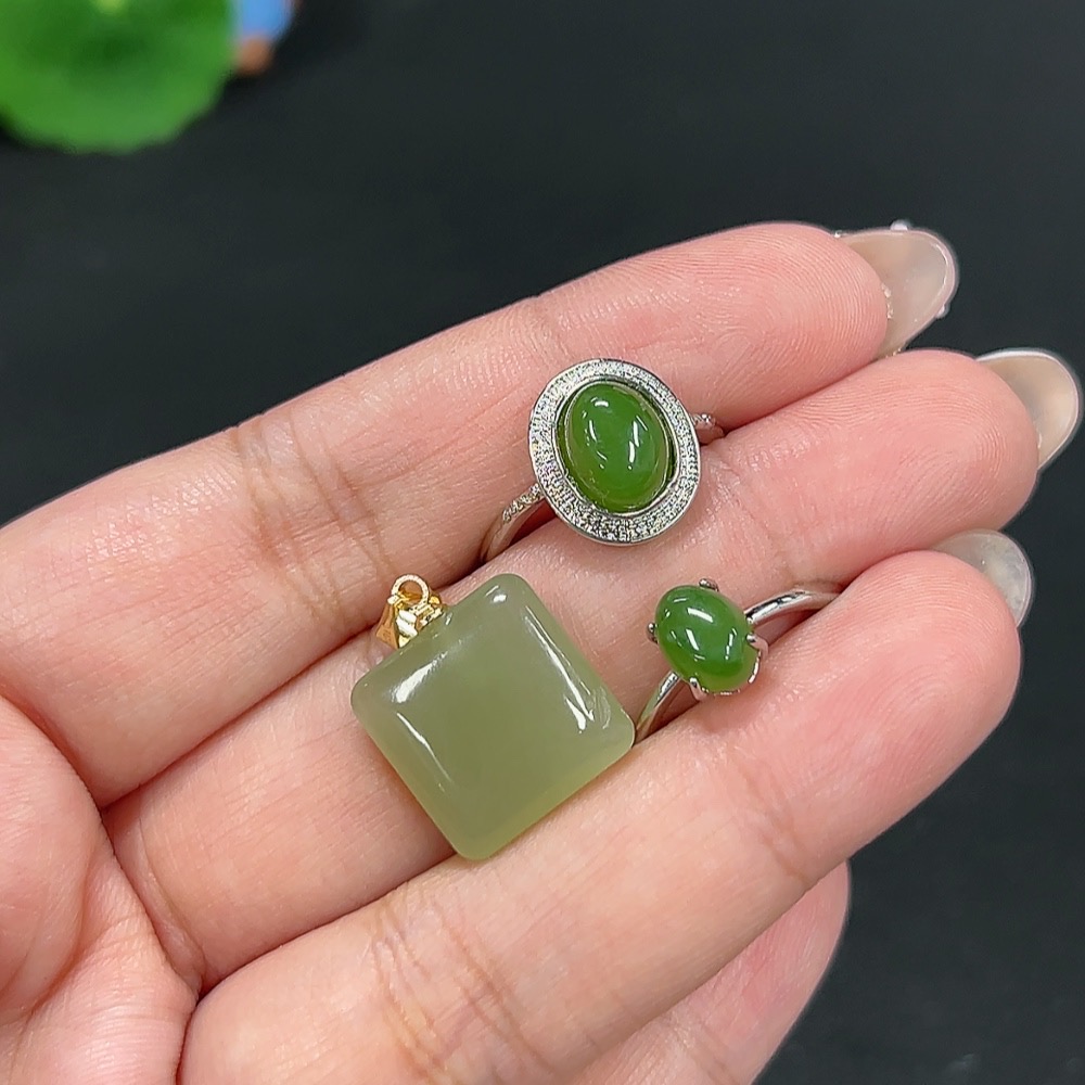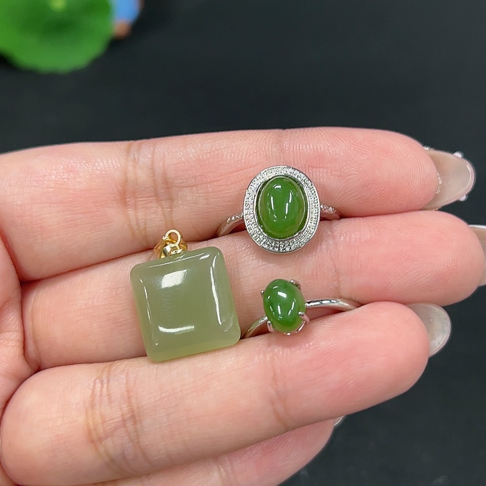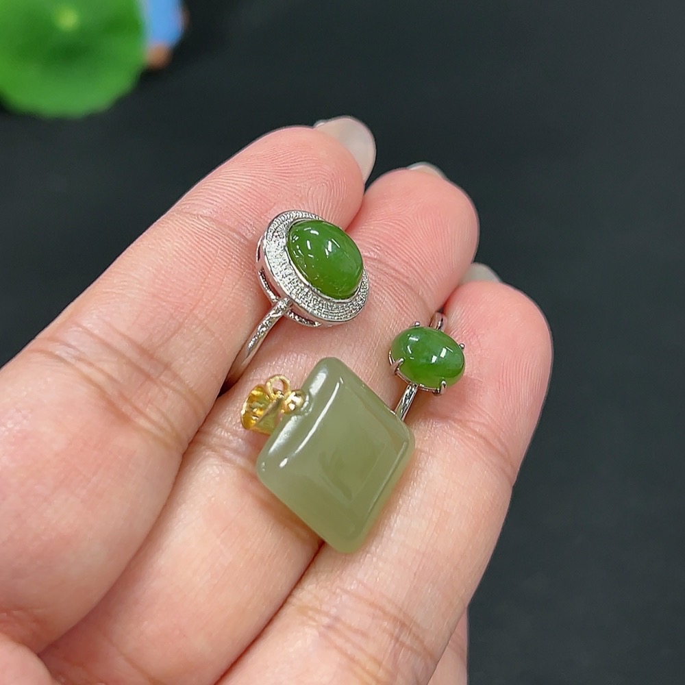 Hetian Jade inlaid pendant + adjustable ring, total weight approx. 6.7g, non-gold