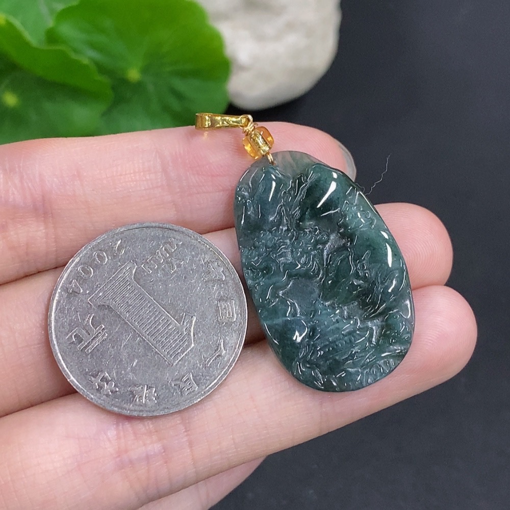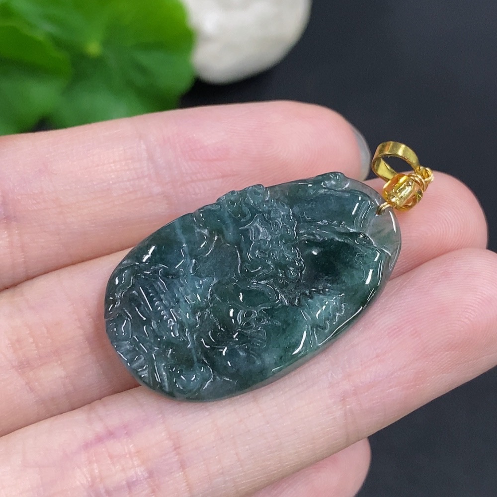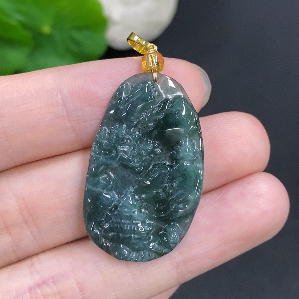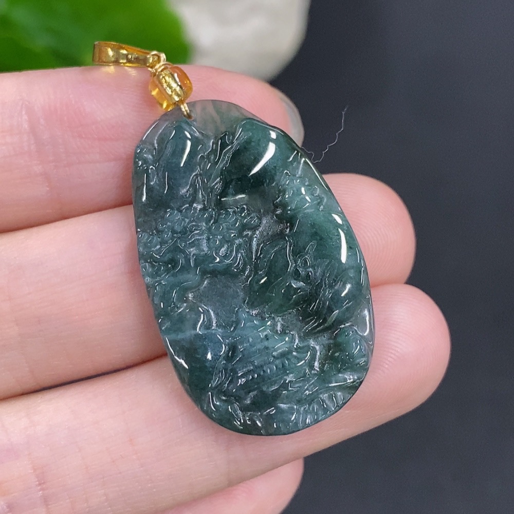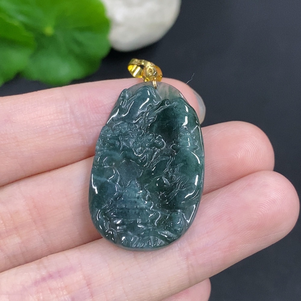 Jadeite Landscape Pendant Non-Gold Total Weight Approximately 4.6g