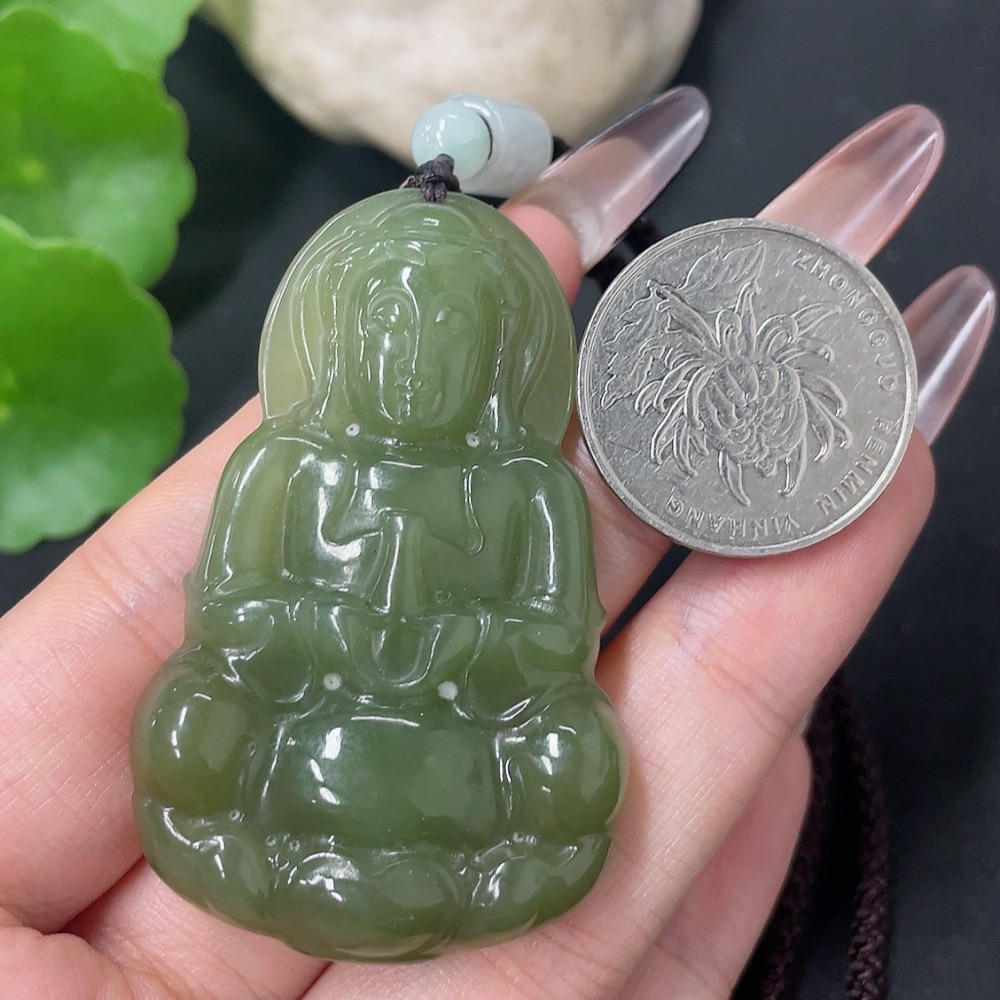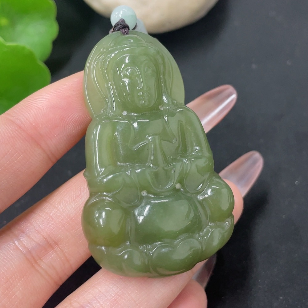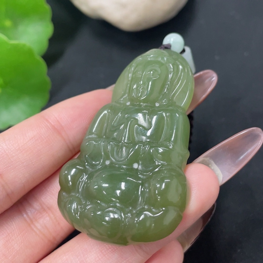 Hetian Jade Pendant Guanyin with Non-Hetian Jade Beads Total Weight Approx. (Including Rope) 30.5g