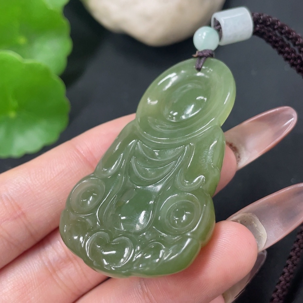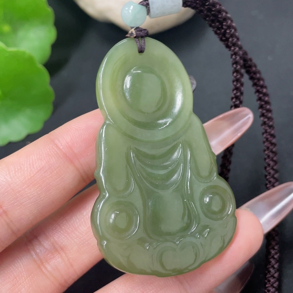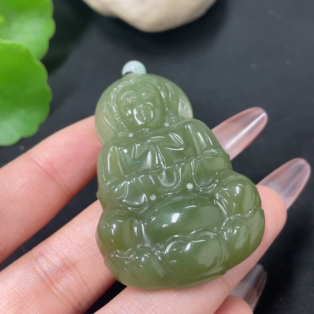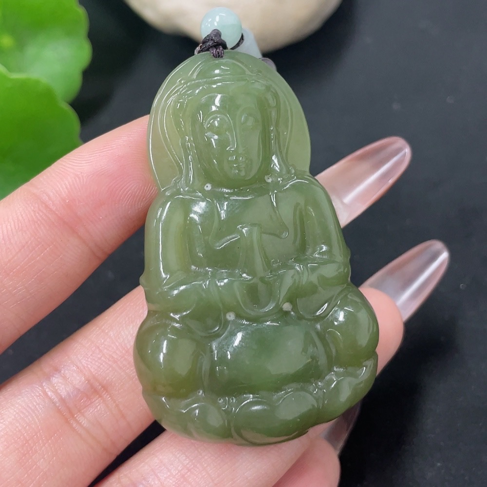 Hetian Jade Pendant Guanyin with Non-Hetian Jade Beads Total Weight Approx. (Including Rope) 30.5g