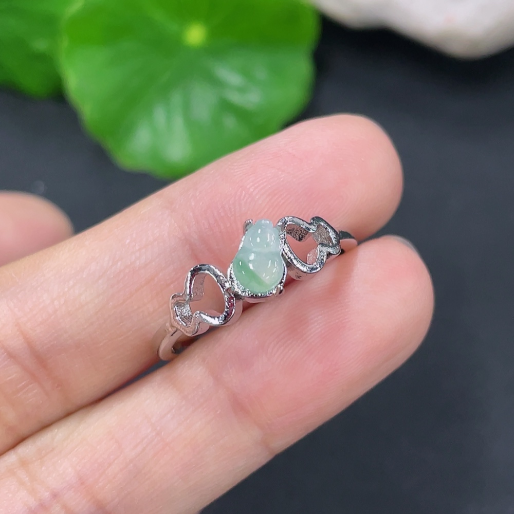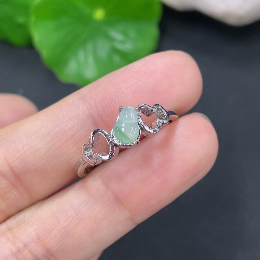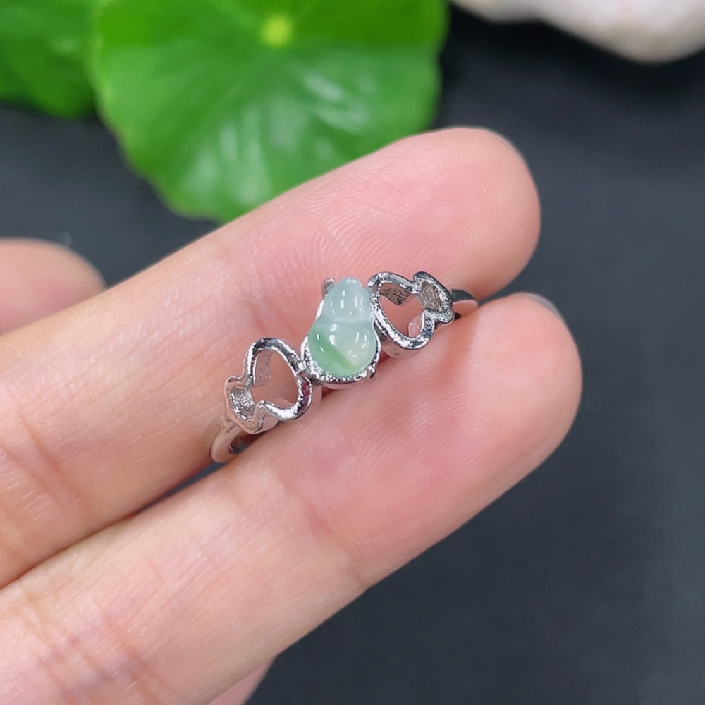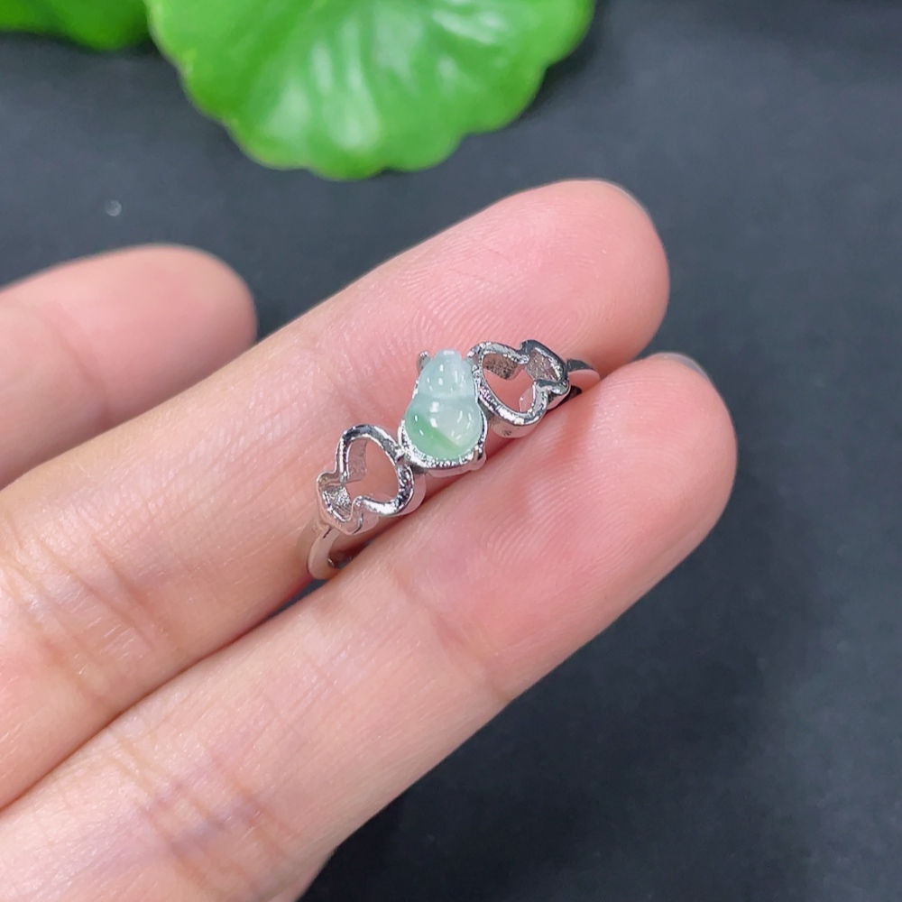 Jadeite Gourd Inlaid Ring Non-Gold Inlaid Adjustable Size Total Weight Approx. 1.53g