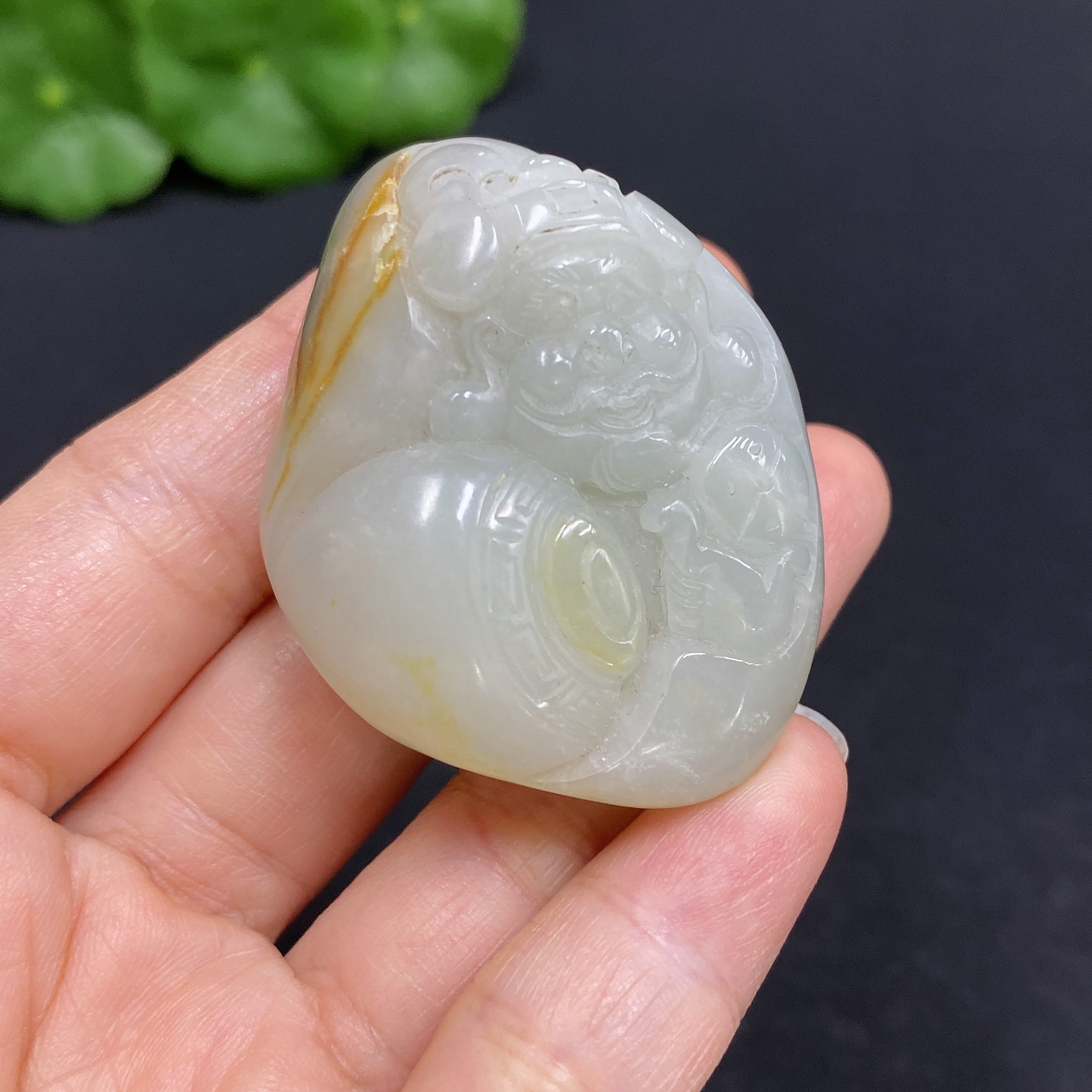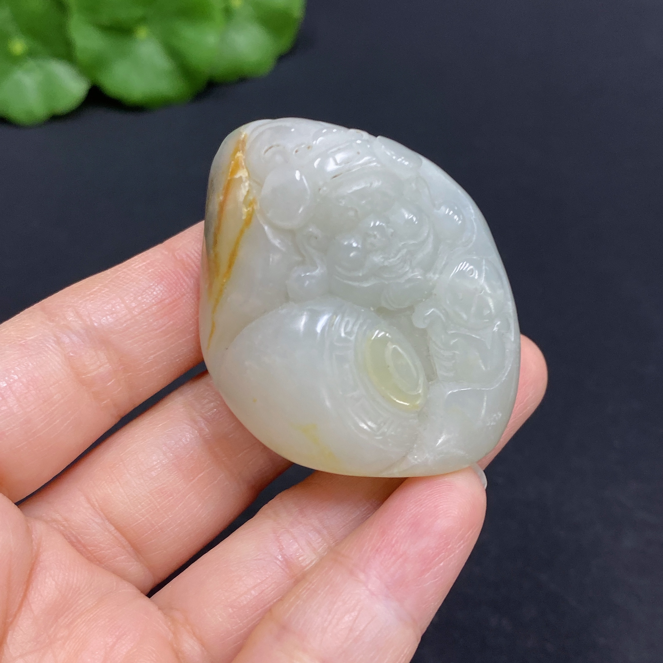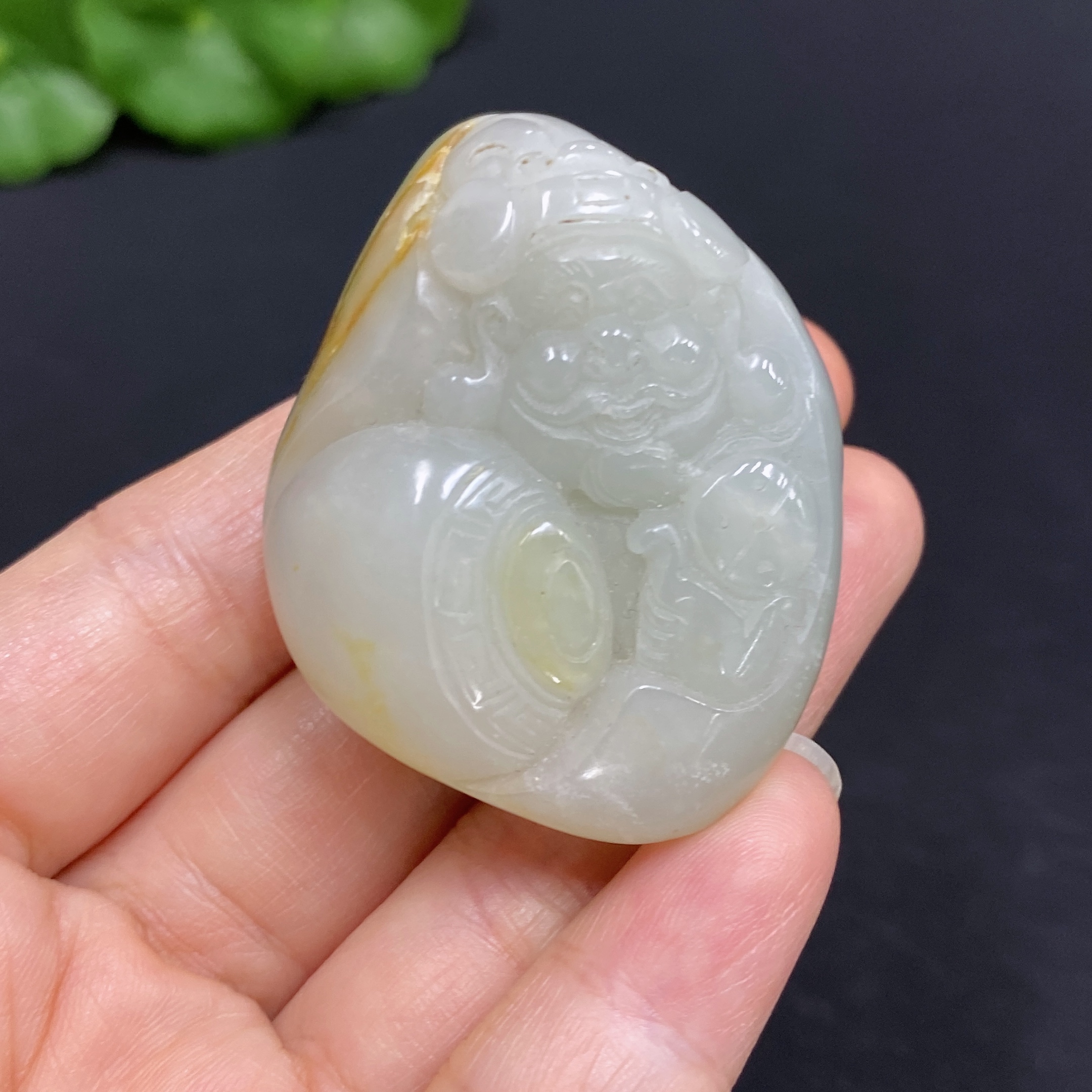 Hetian Jade Pendant - God of Wealth, Total Weight Approx. 51.8g, Undetermined Skin Color Formation