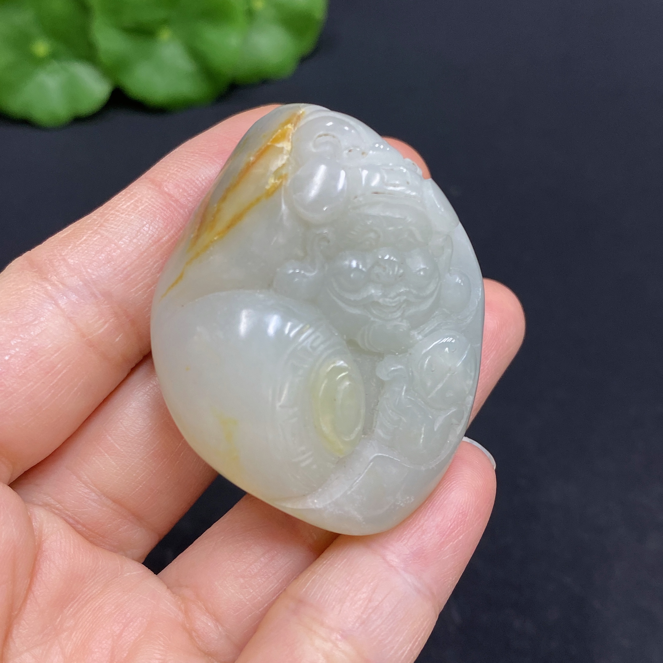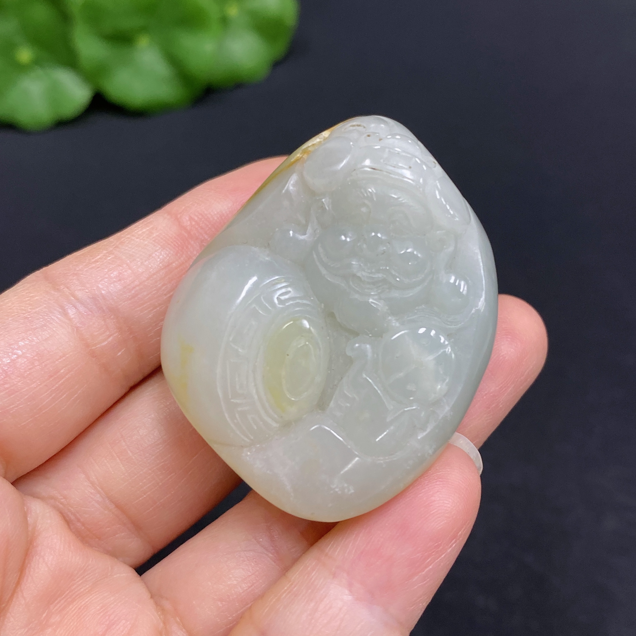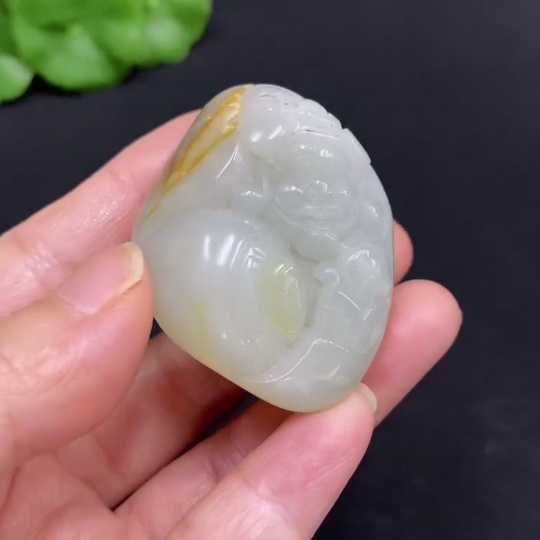 Hetian Jade Pendant - God of Wealth, Total Weight Approx. 51.8g, Undetermined Skin Color Formation