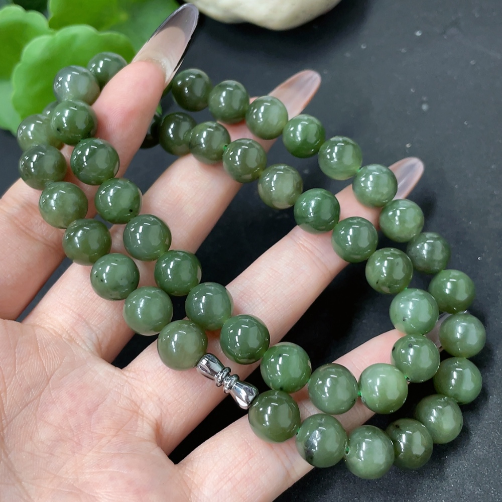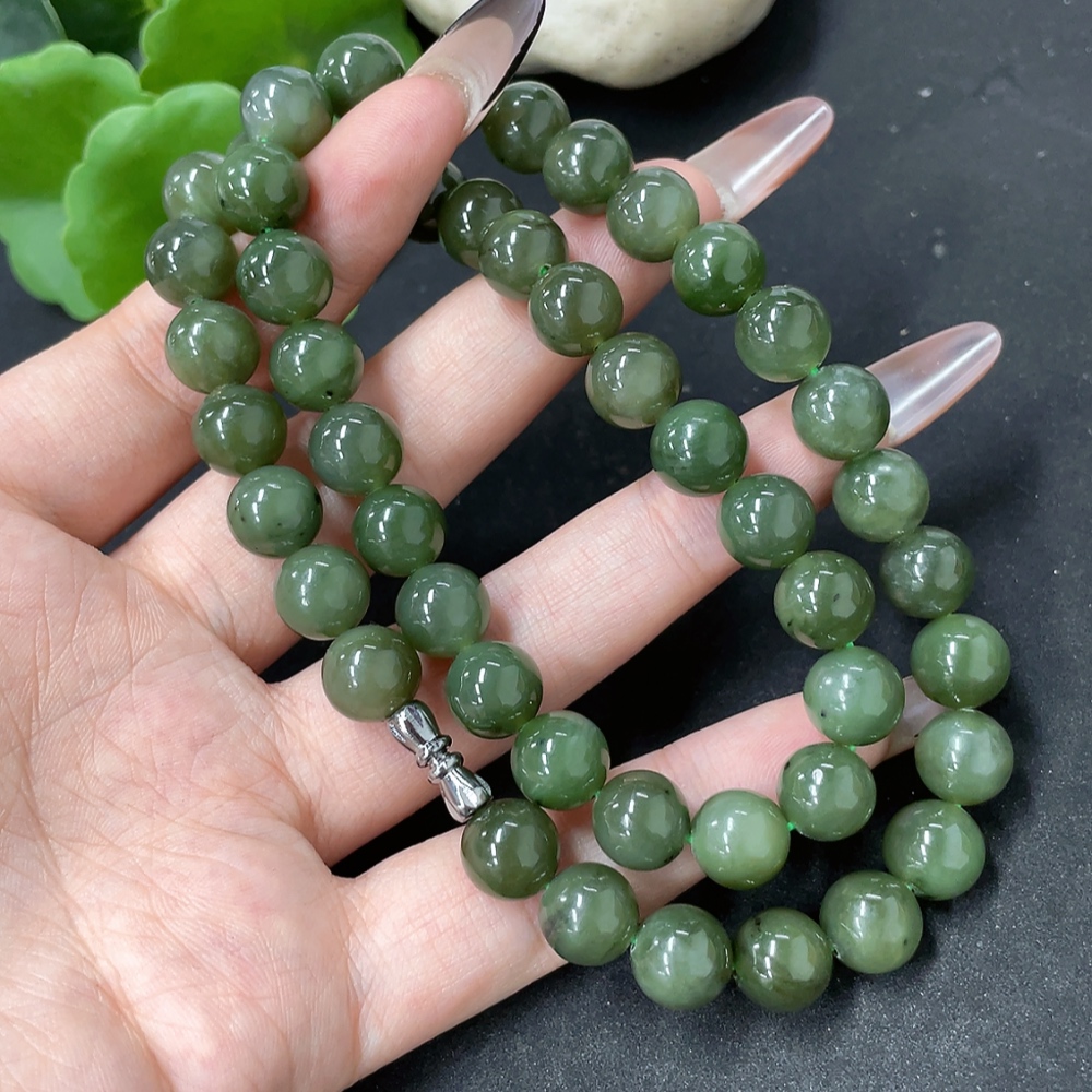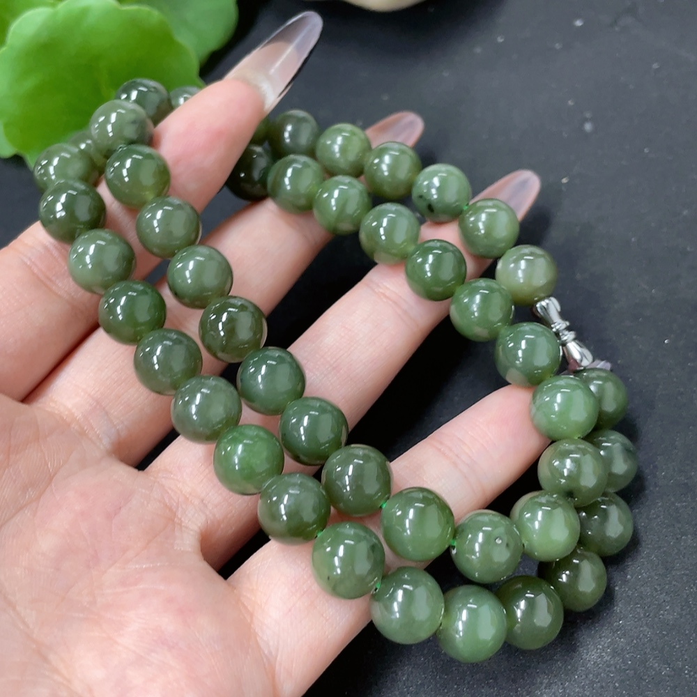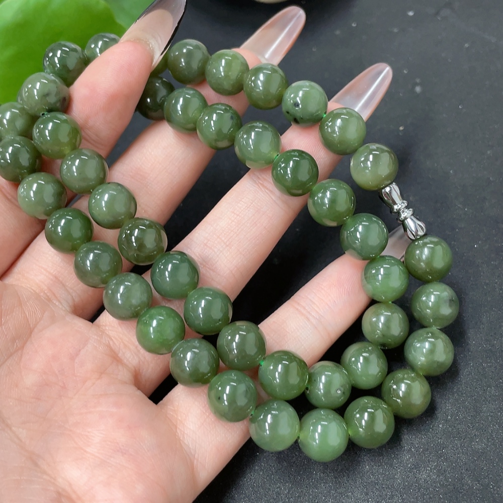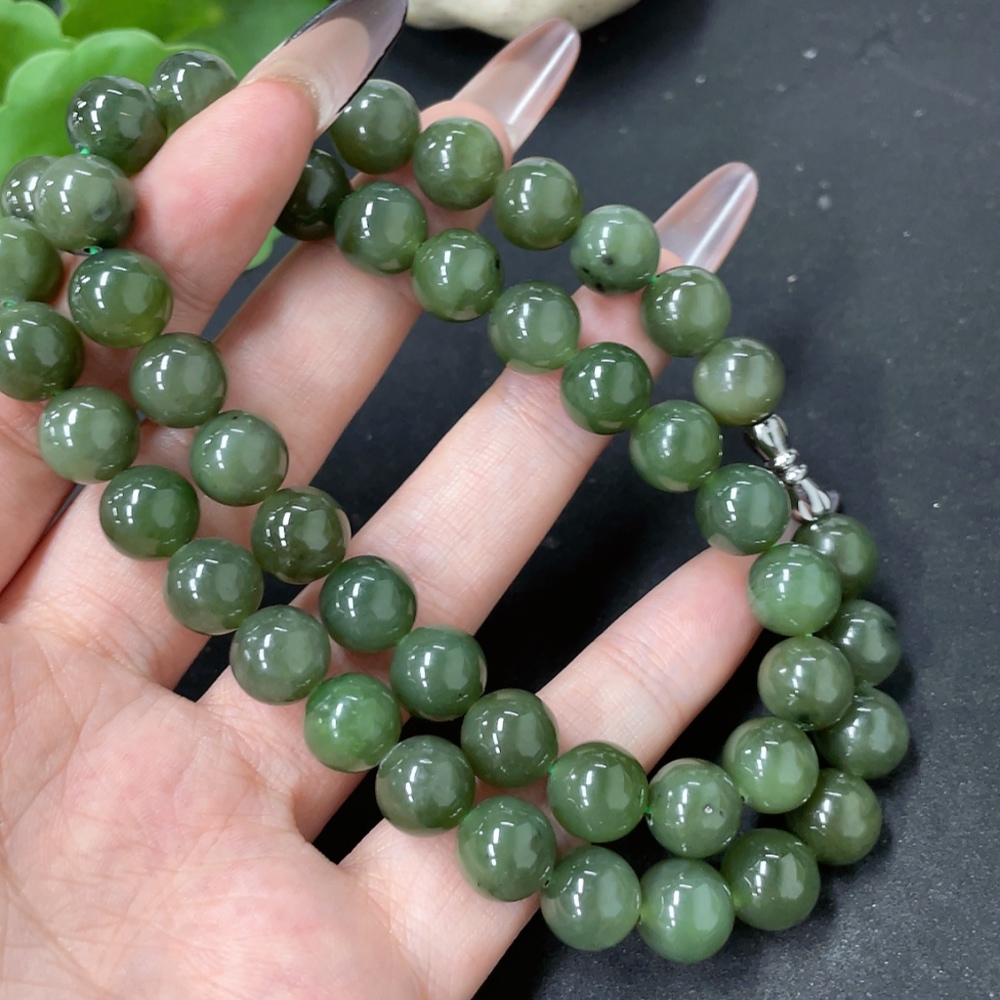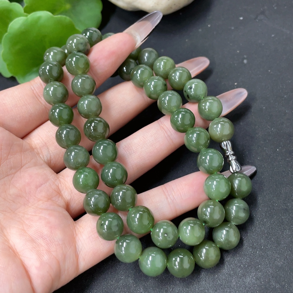 Hetian Jade Bead Necklace, Approx. 9.3mm, Total Weight Approx. 65g