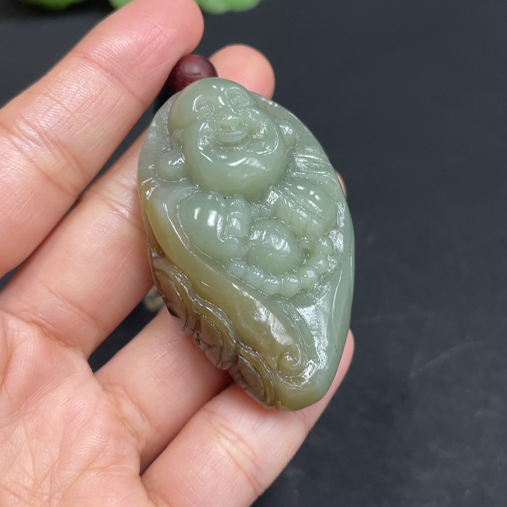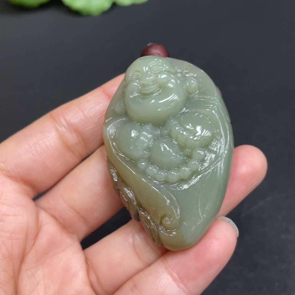Hetian Jade Pendant Buddha Total Weight (including rope) 44.8g