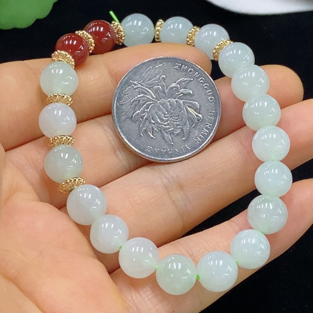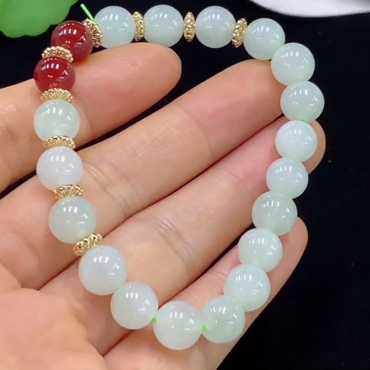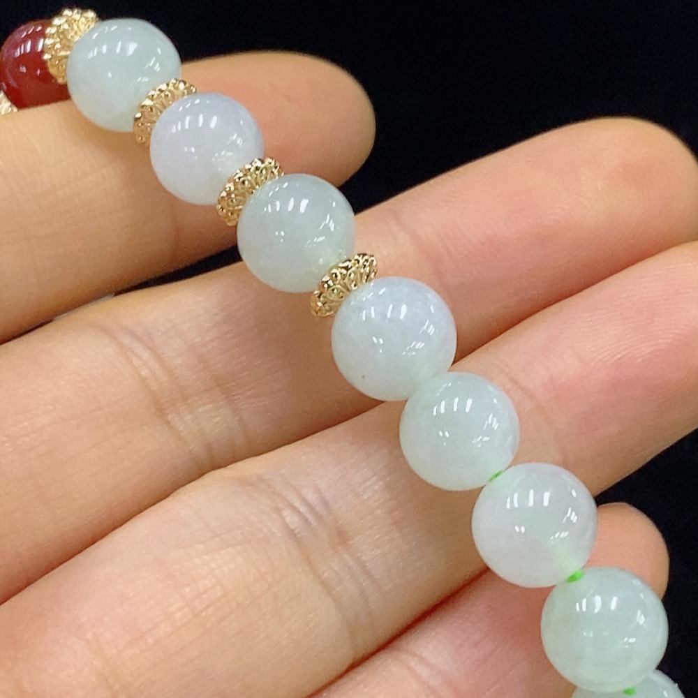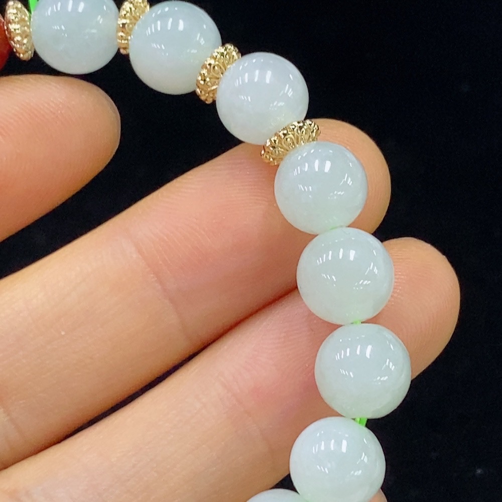 Jadeite Bracelet Approx. 8.5mm Beads Total Weight Approx. 21.6g (Non-Gold Inlaid) (Beads Non-Grade A)
