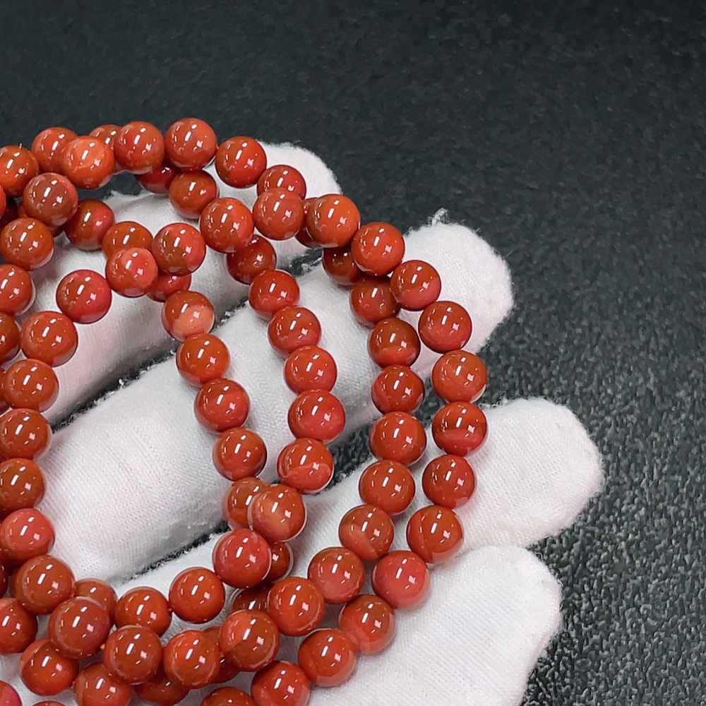 Red Agate Bead Strand with Visible Organic Matter, Total Weight Approx. 44.49g, Size About 6.7mm