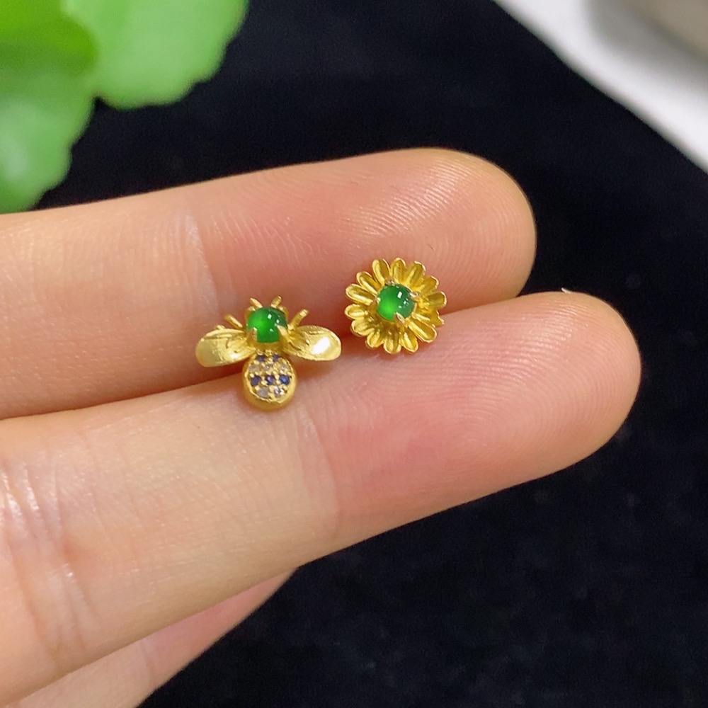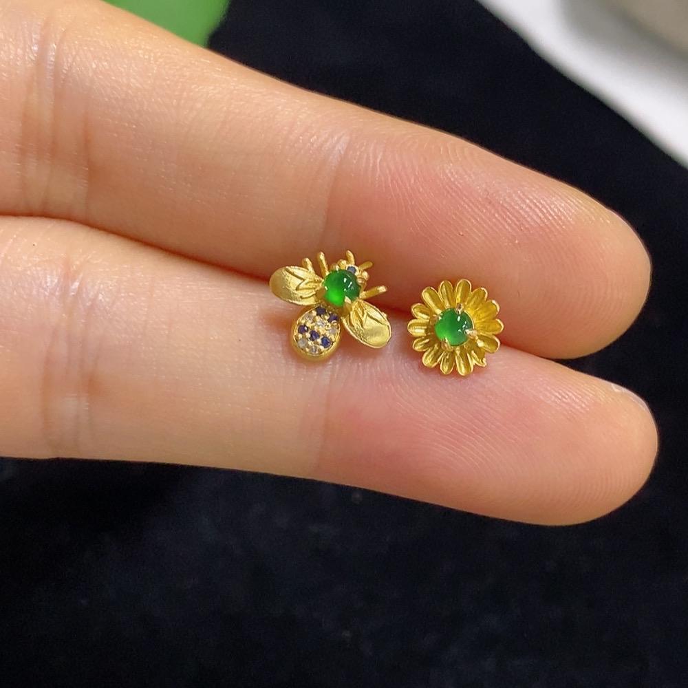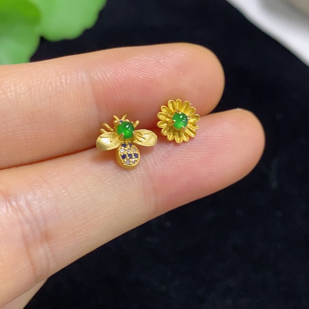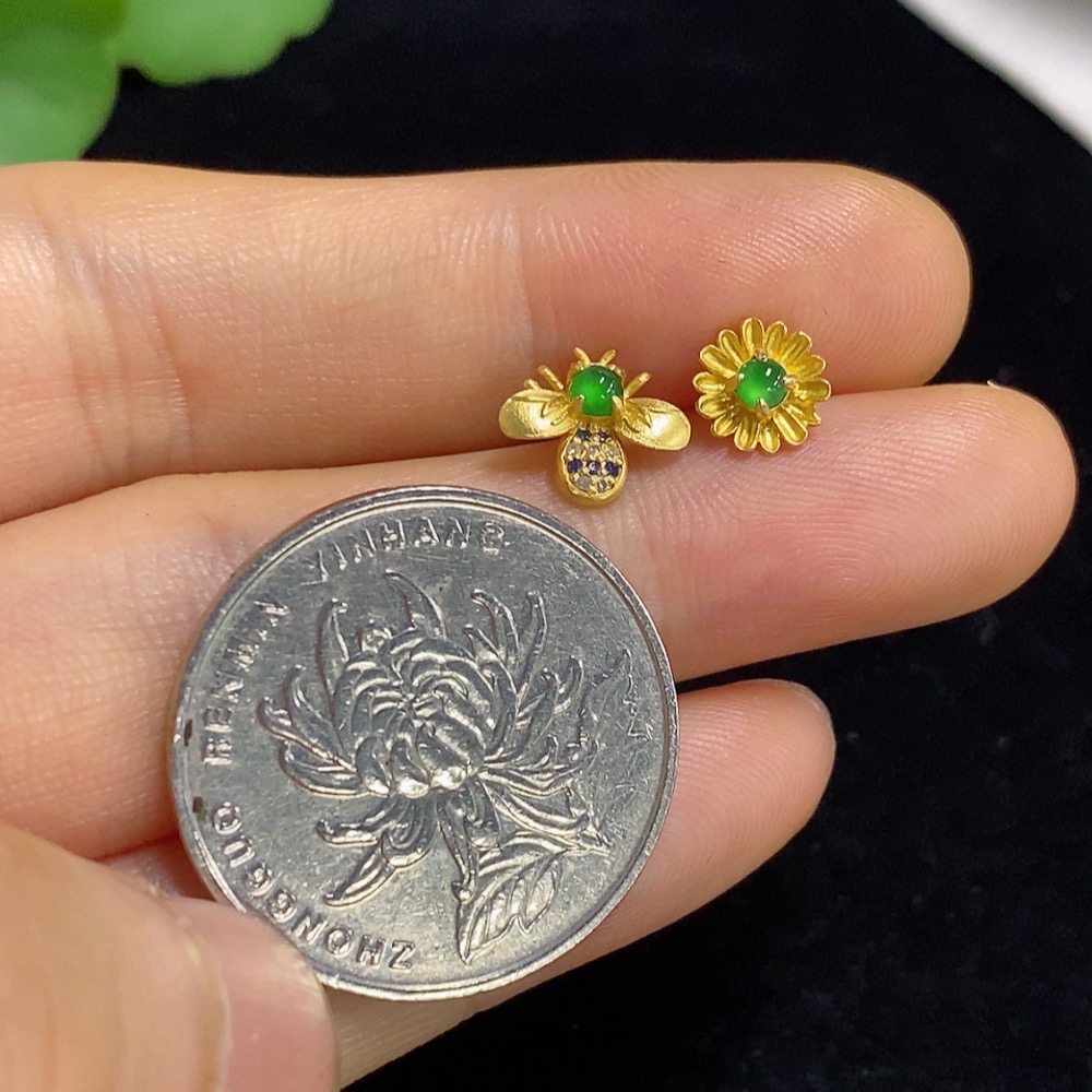 Jadeite inlaid earrings 18k with diamonds (colorless) total weight approx. 0.93g