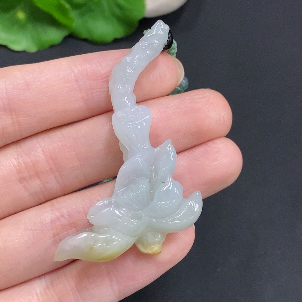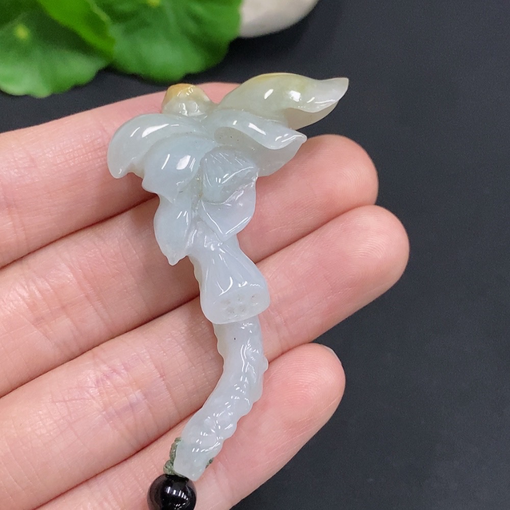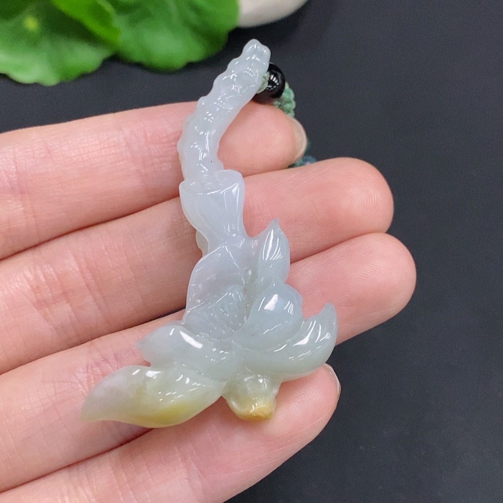 Jadeite Lotus Pendant Total Weight Approx. 18g (Including Rope Weight) Beads Not Jadeite