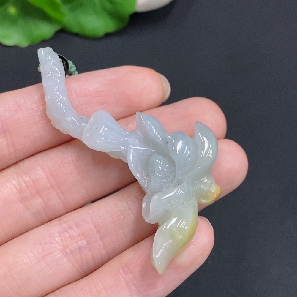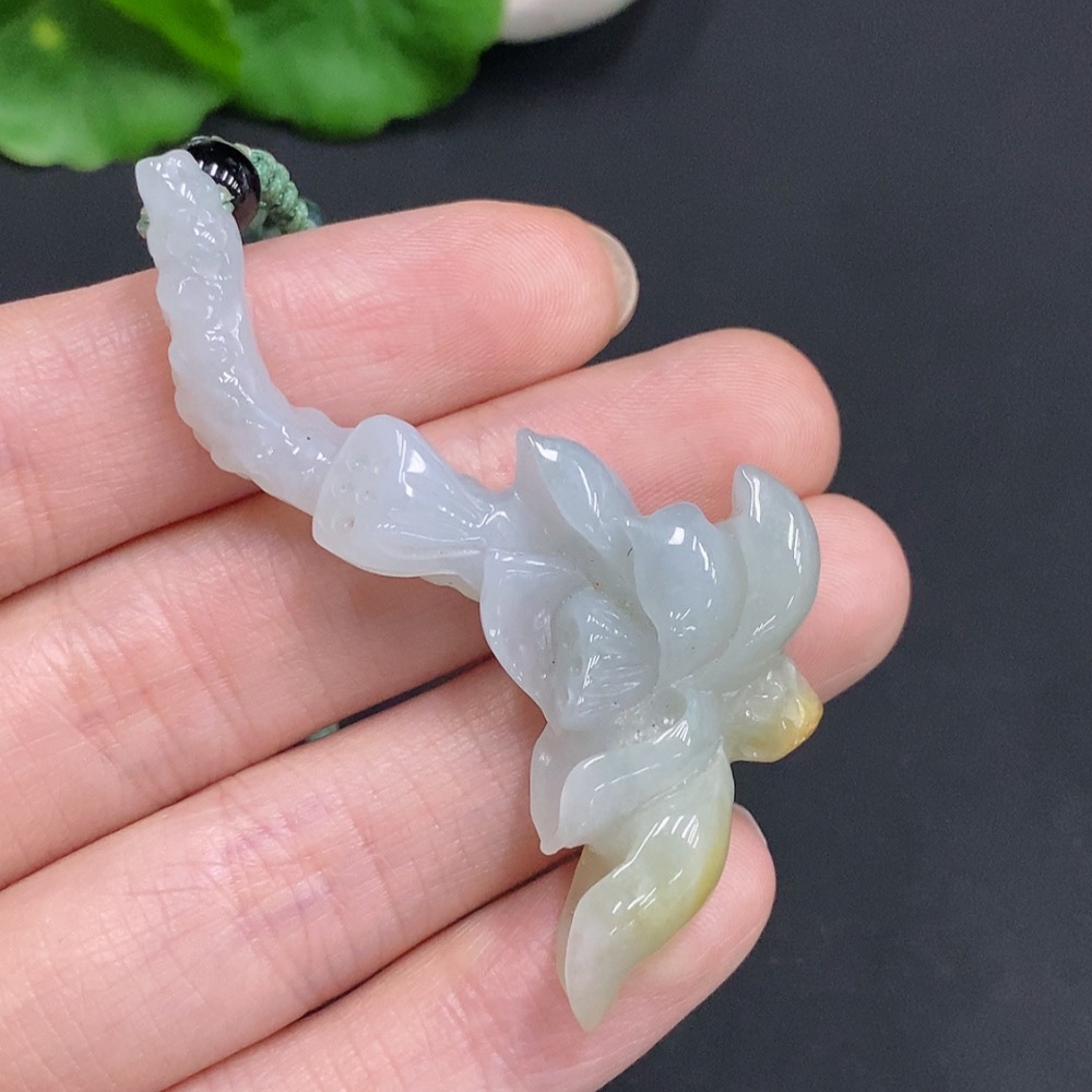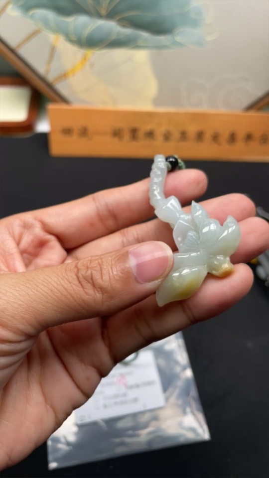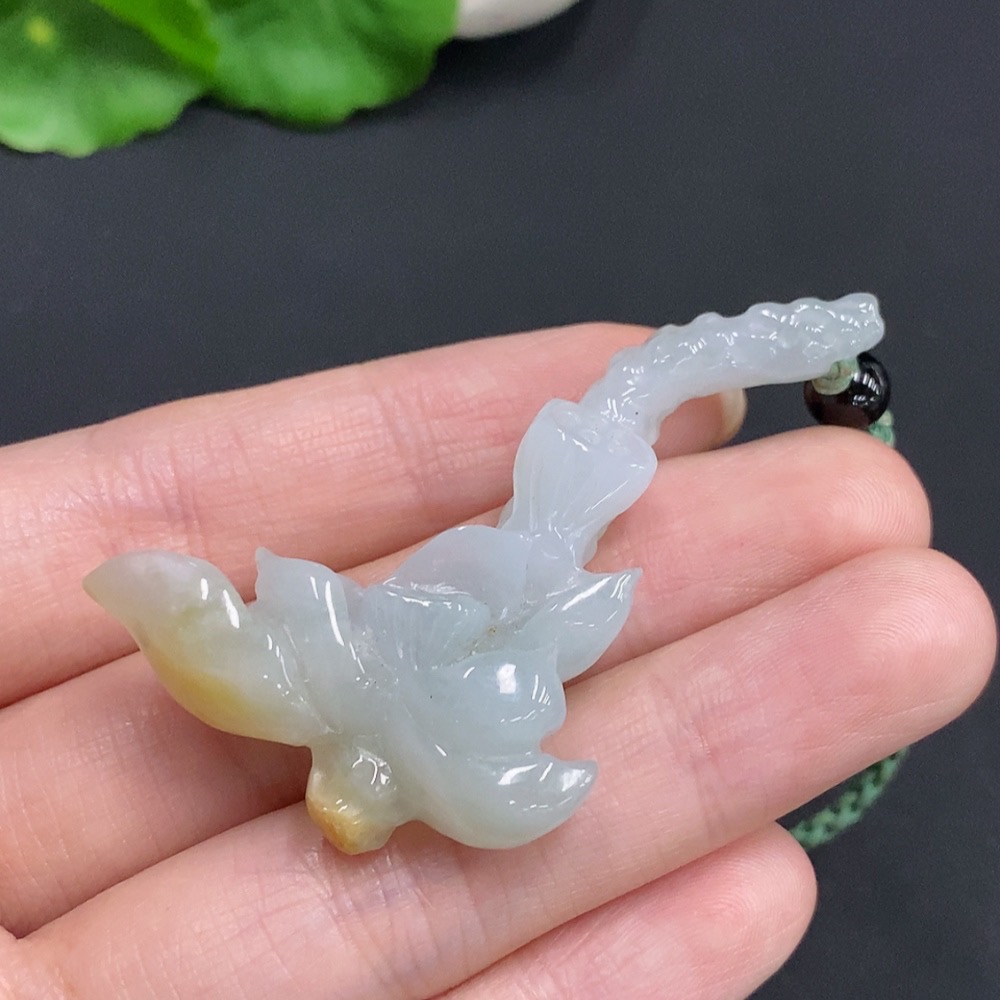 Jadeite Lotus Pendant Total Weight Approx. 18g (Including Rope Weight) Beads Not Jadeite