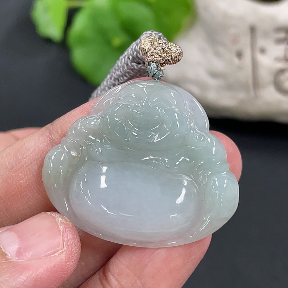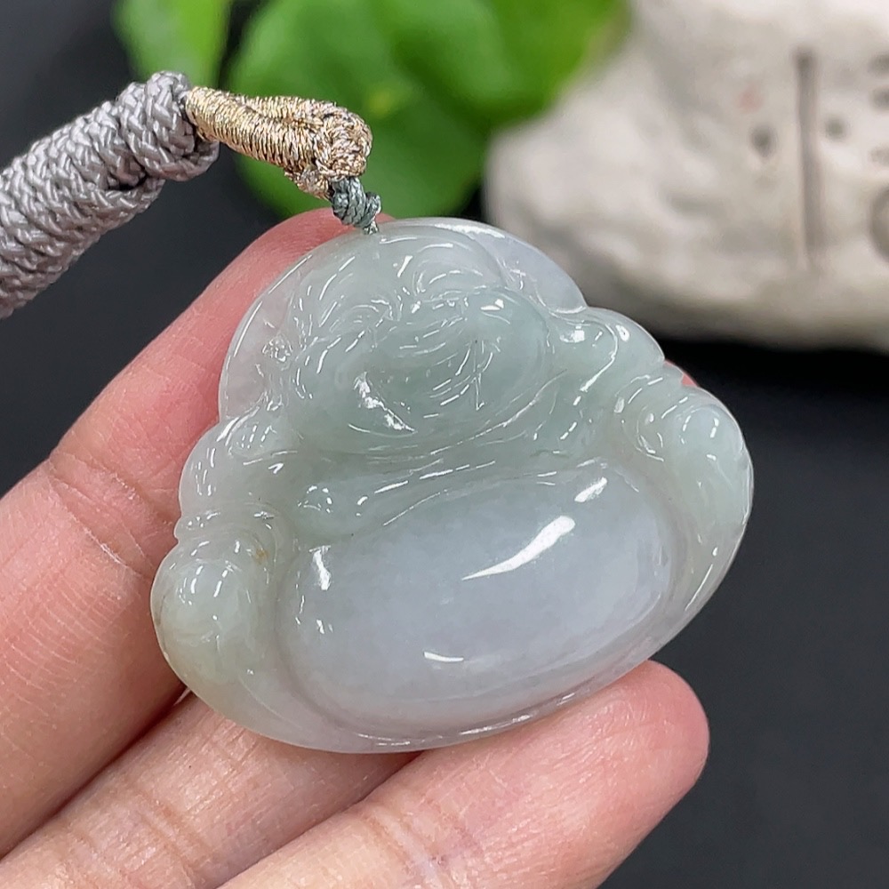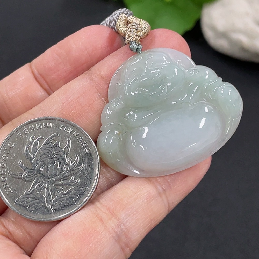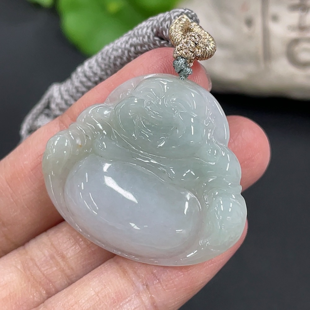 Jadeite Pendant Buddha, Total Weight Approx. 11g Including Rope