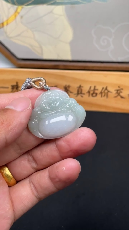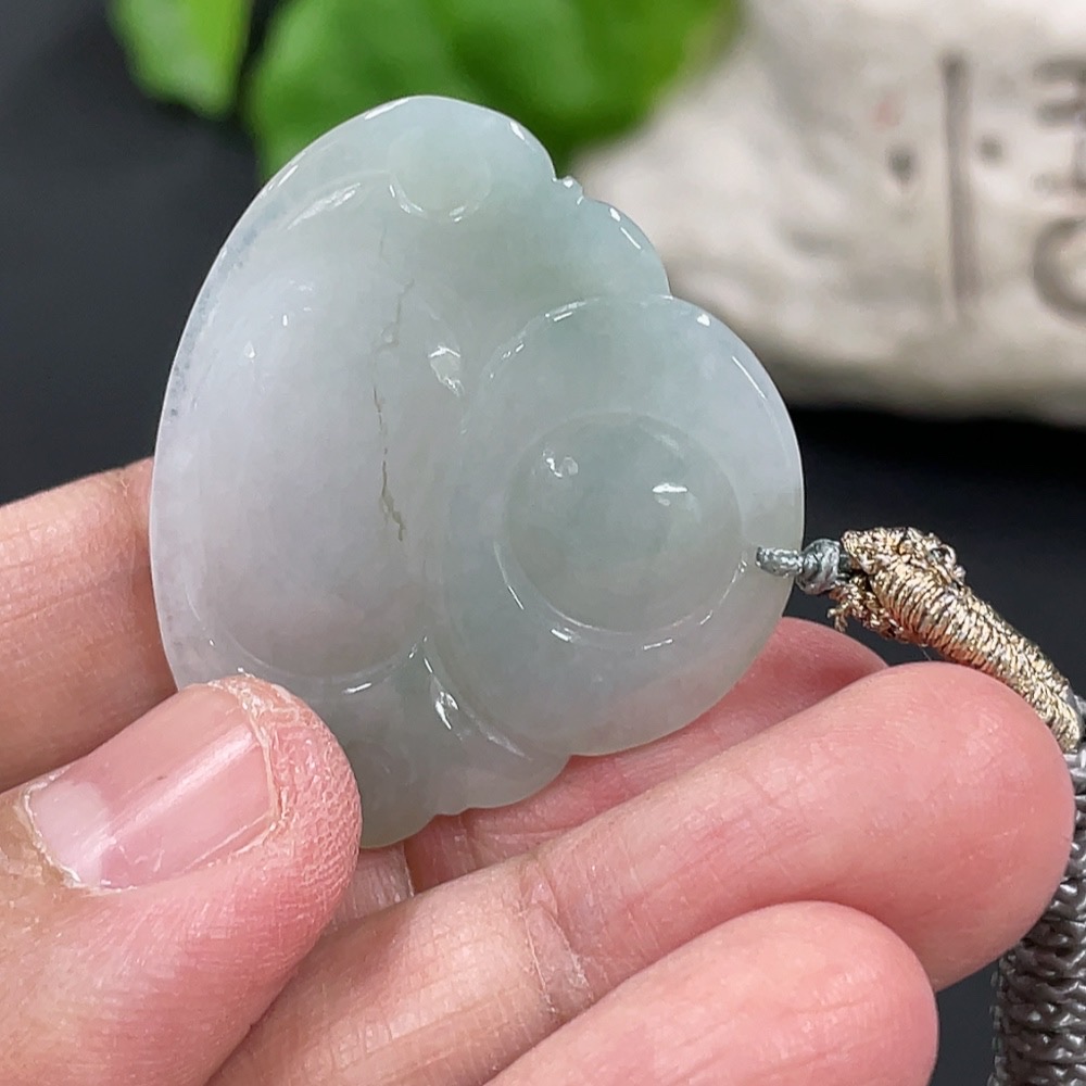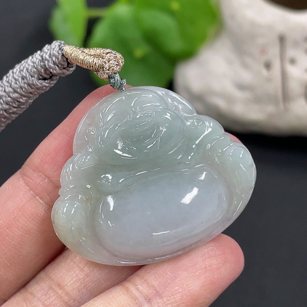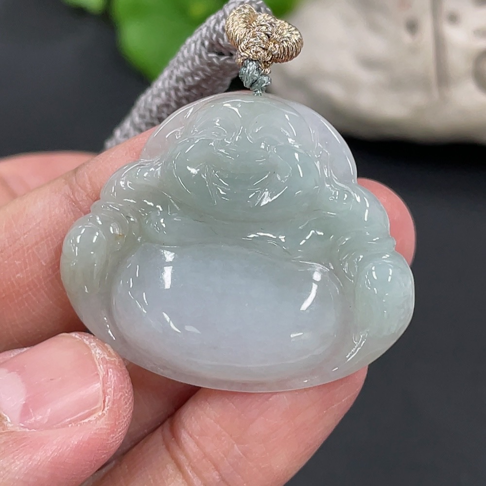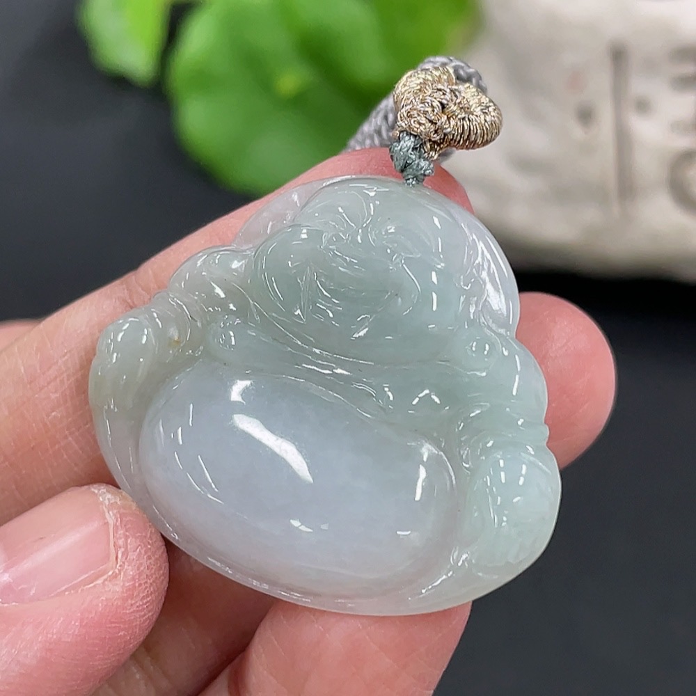 Jadeite Pendant Buddha, Total Weight Approx. 11g Including Rope