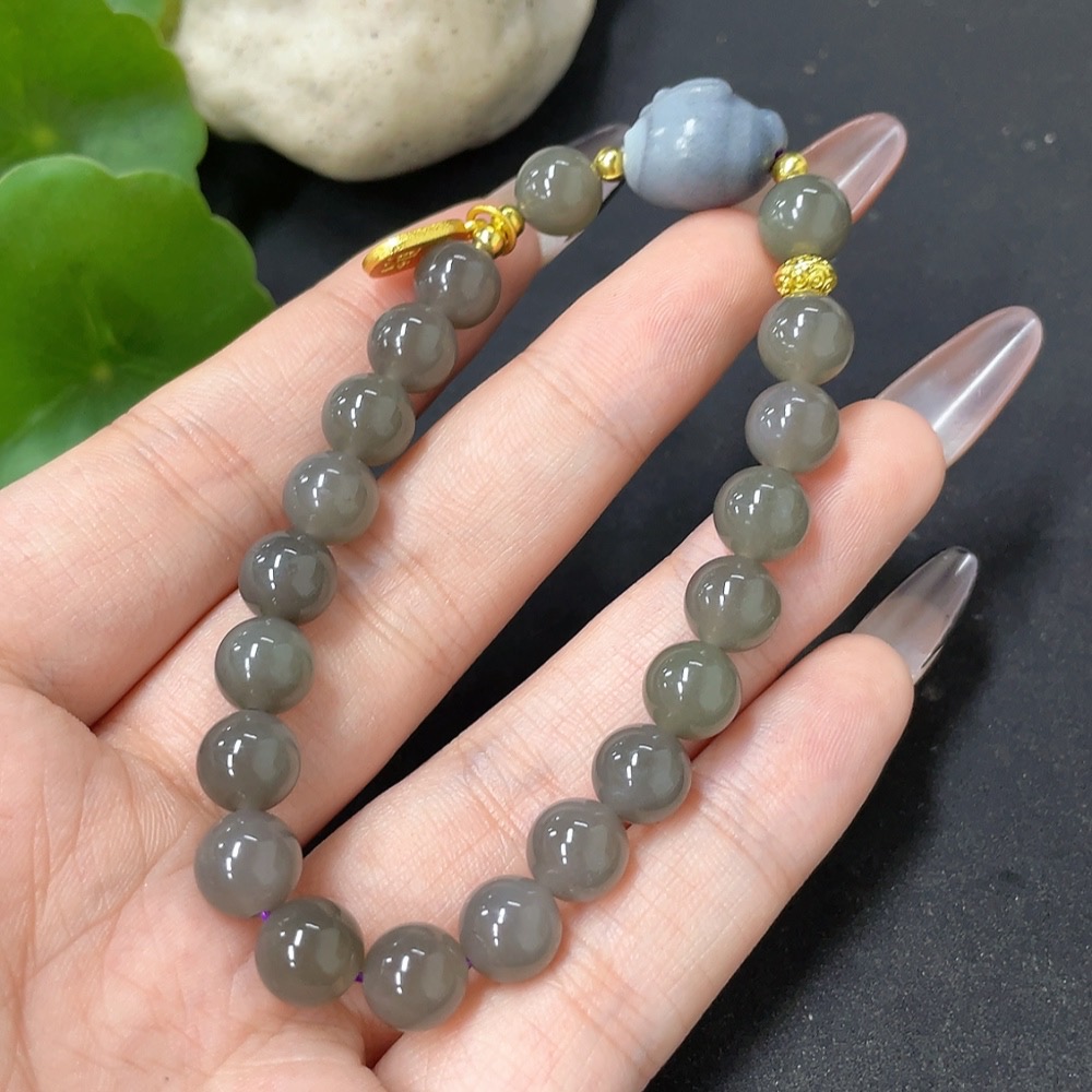 Hetian Jade Bracelet, approx. 7.7mm, total weight approx. 19.2g, non-Hetian Jade accessories, non-gold